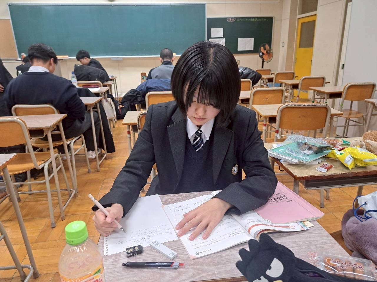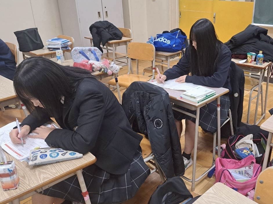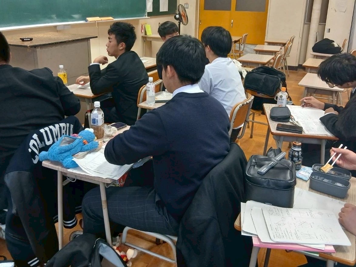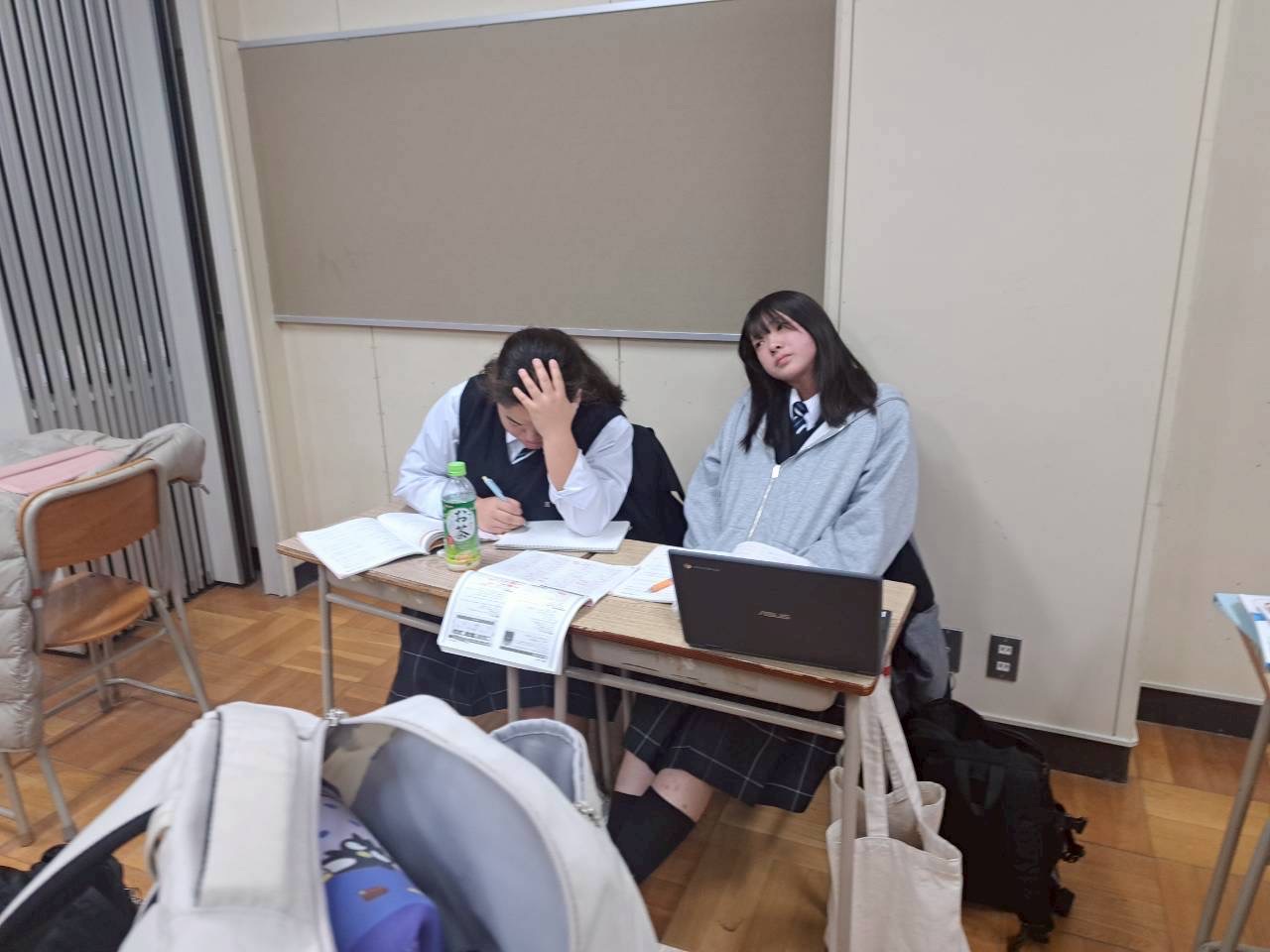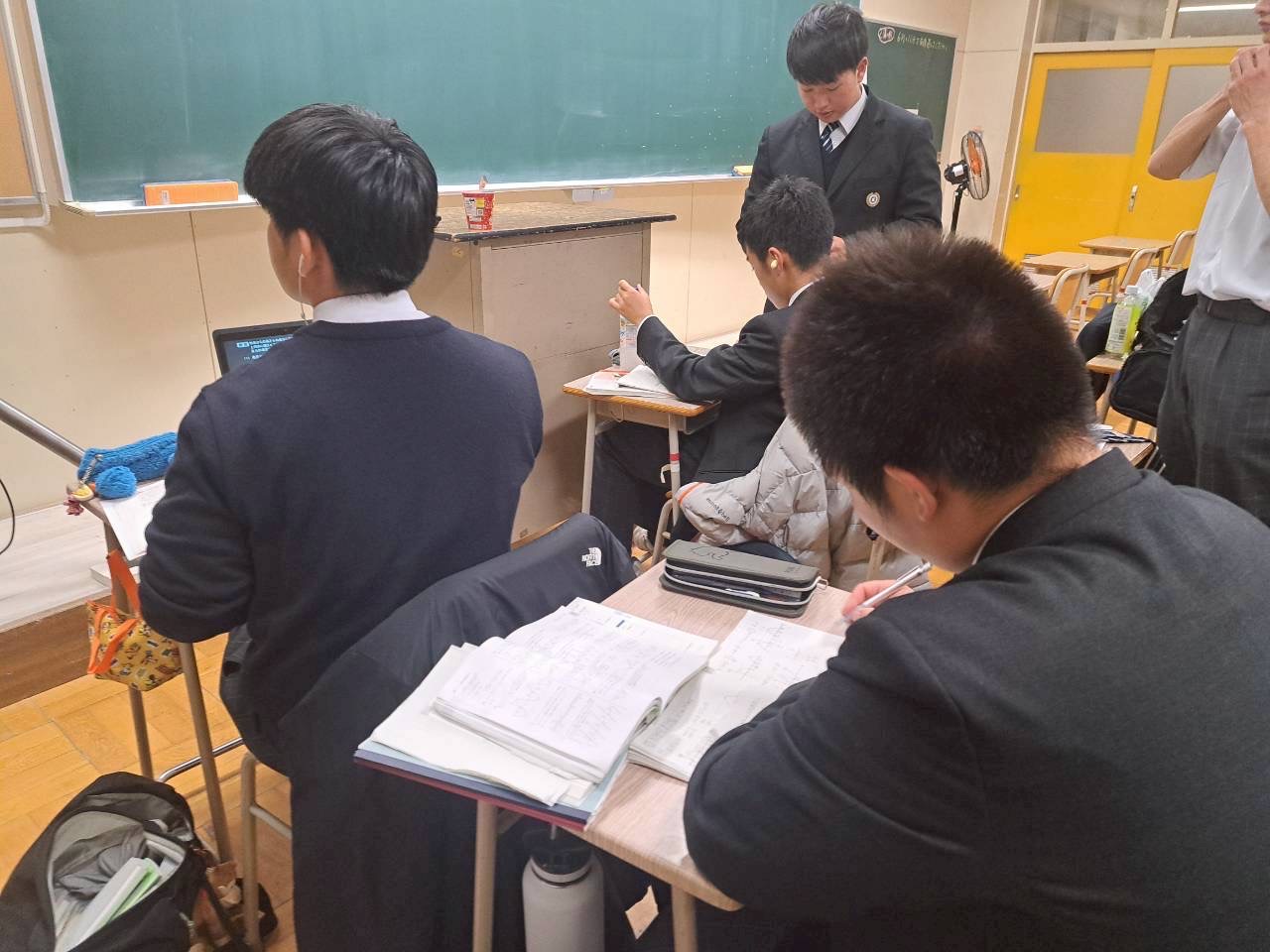 勉強会では、友達同士で教え合いながら切磋琢磨している様子が見られました。少し私語が多い中でしたが、集中しながらもみんなで勉強を楽しむことができているように見受けられました。試験までの日数が迫ってきているので、勉強会以外でも勉強をして、高得点を目指しましょう。
