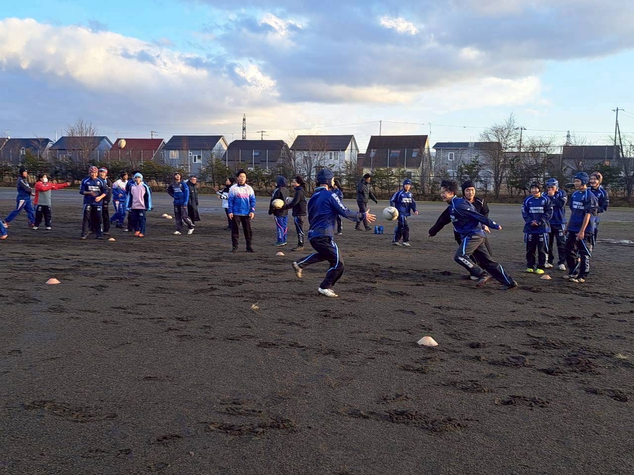 今日はテスト最終日で午後からの練習になりました。SCからグラウンド練習を行いました。テスト期間前にやってきたこと、そして明日の函館遠征に向けての確認を、新しいピステを着て行いました。
