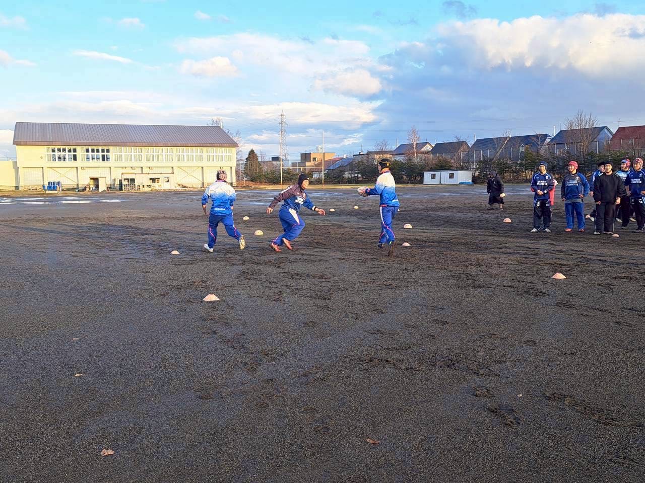 次に3列パスを行いました。パスミスが多く、落としてしまう選手が見られました。寒い中ですが、集中していきましょう。