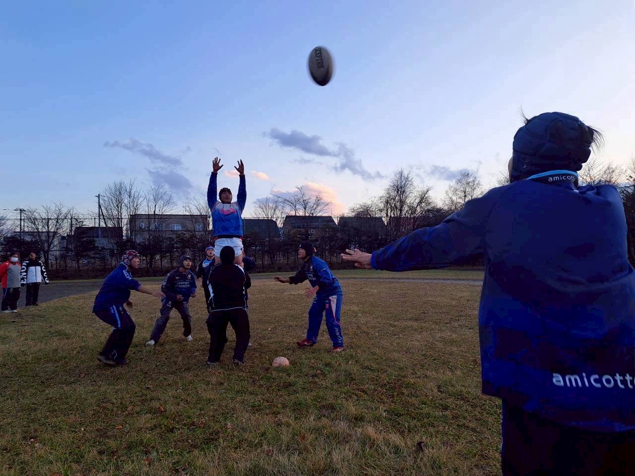 次にユニットを行いました。BKはアタック練習を行いました。FWはラインアウト、モール練習、お相撲の四股を行いました。