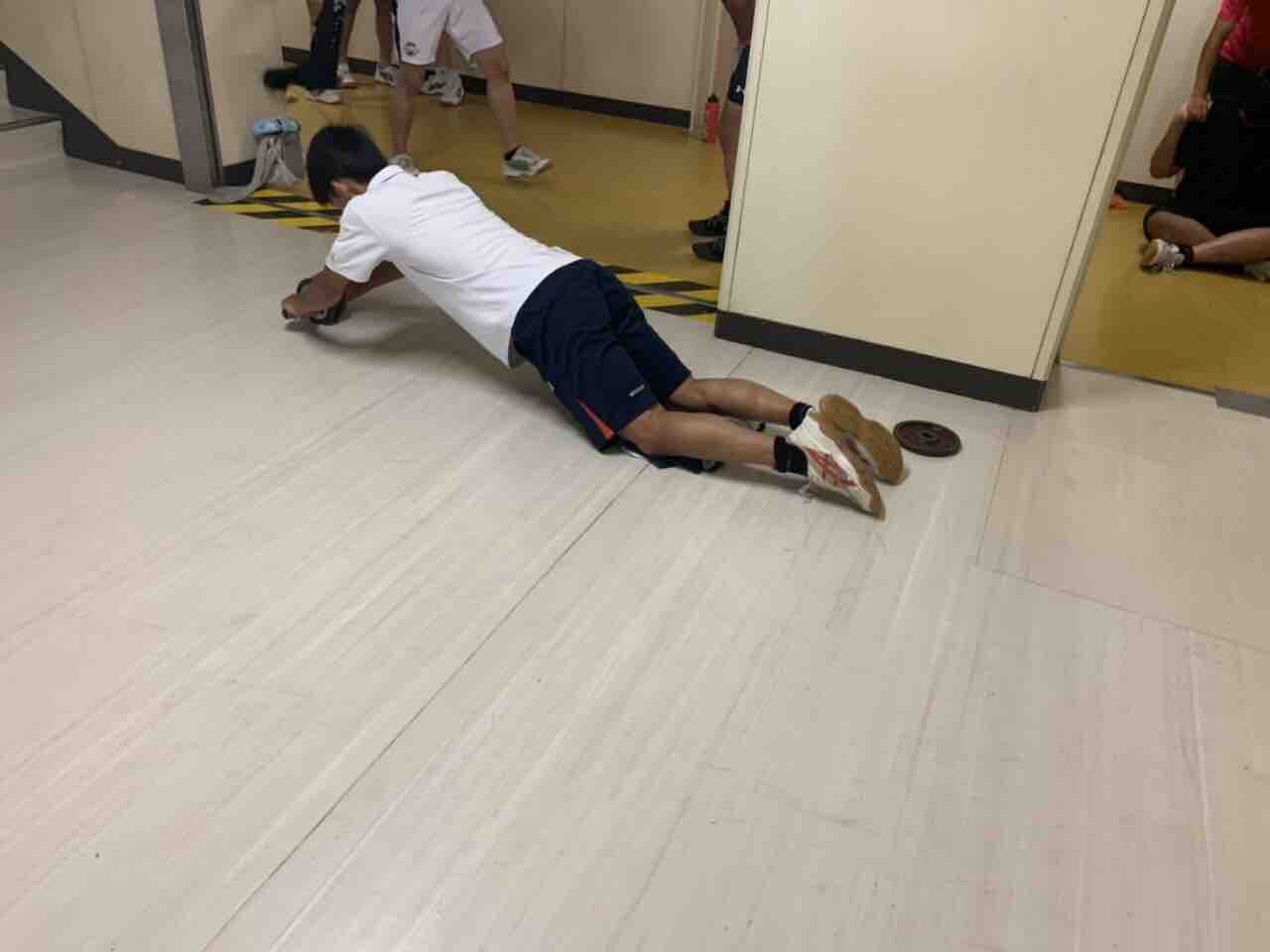 ビデオミーティングの後にウエイト(15分×3)を行いました。短い時間でのウエイトとなりましたが、時間配分を自分で考え短い間で自分を追い込んでいました。自分に足りない部分を重点的に行い、意味のあるウエイトになっていたと思います。