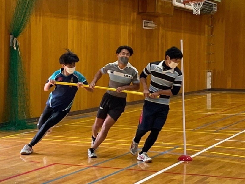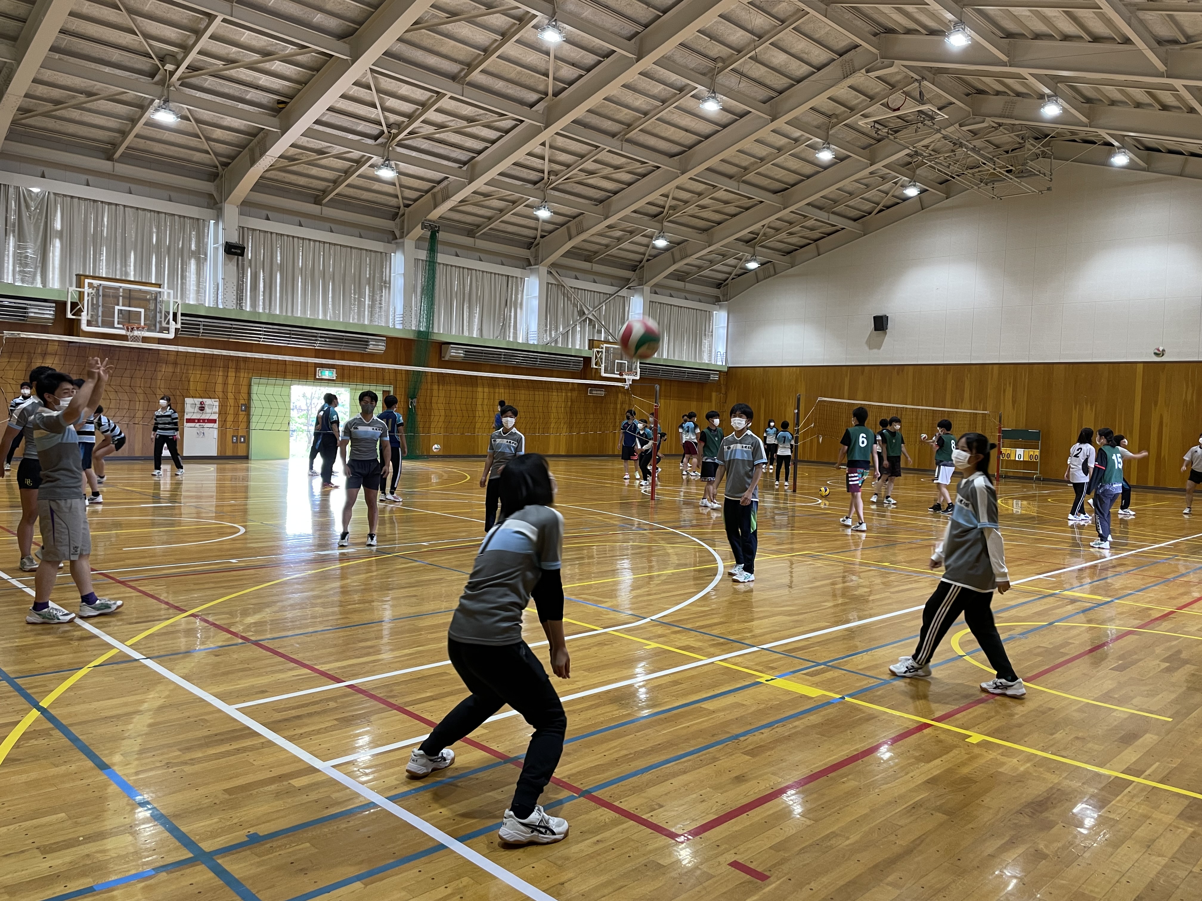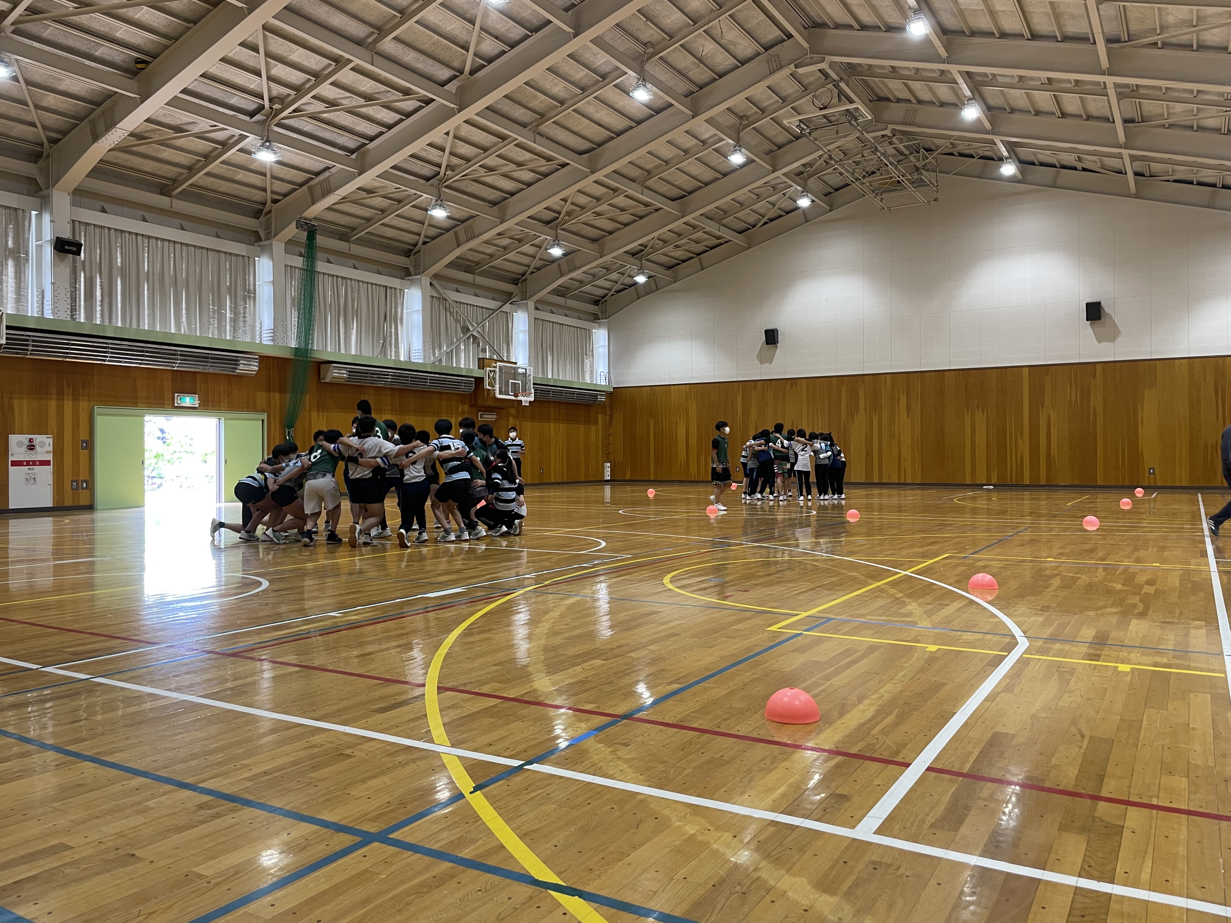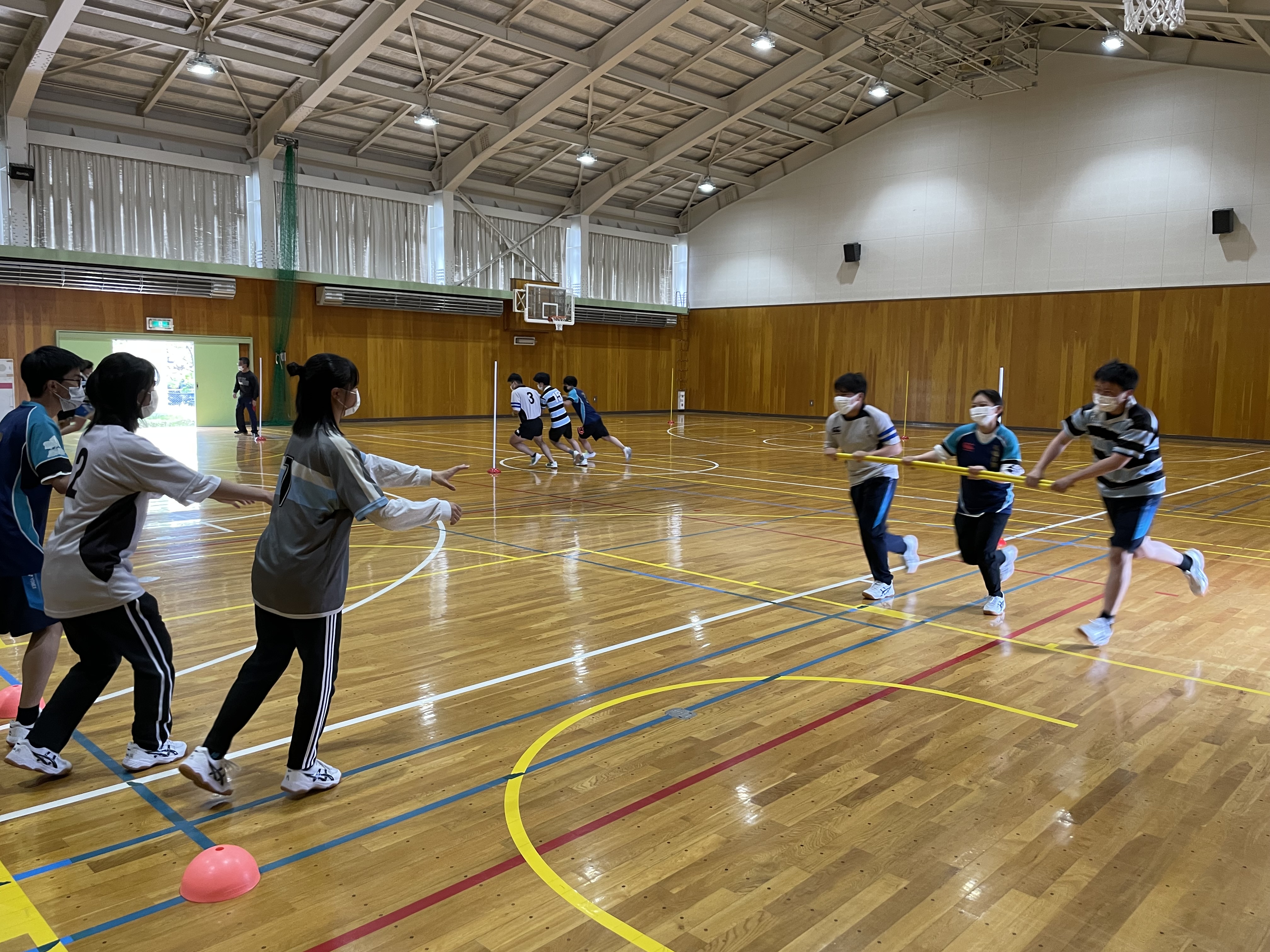 各チームや学年別などに分かれて対決を行いましたが、バレー、バスケでは堀先生から提案された学年対抗や、経験者にチャレンジする企画も行いまさた。各競技では経験者はもちろん、試合中にもラグビーの要素を取り入れた動きや、熱いプレーがどのチームにも見受けられ、とても盛り上がりました。