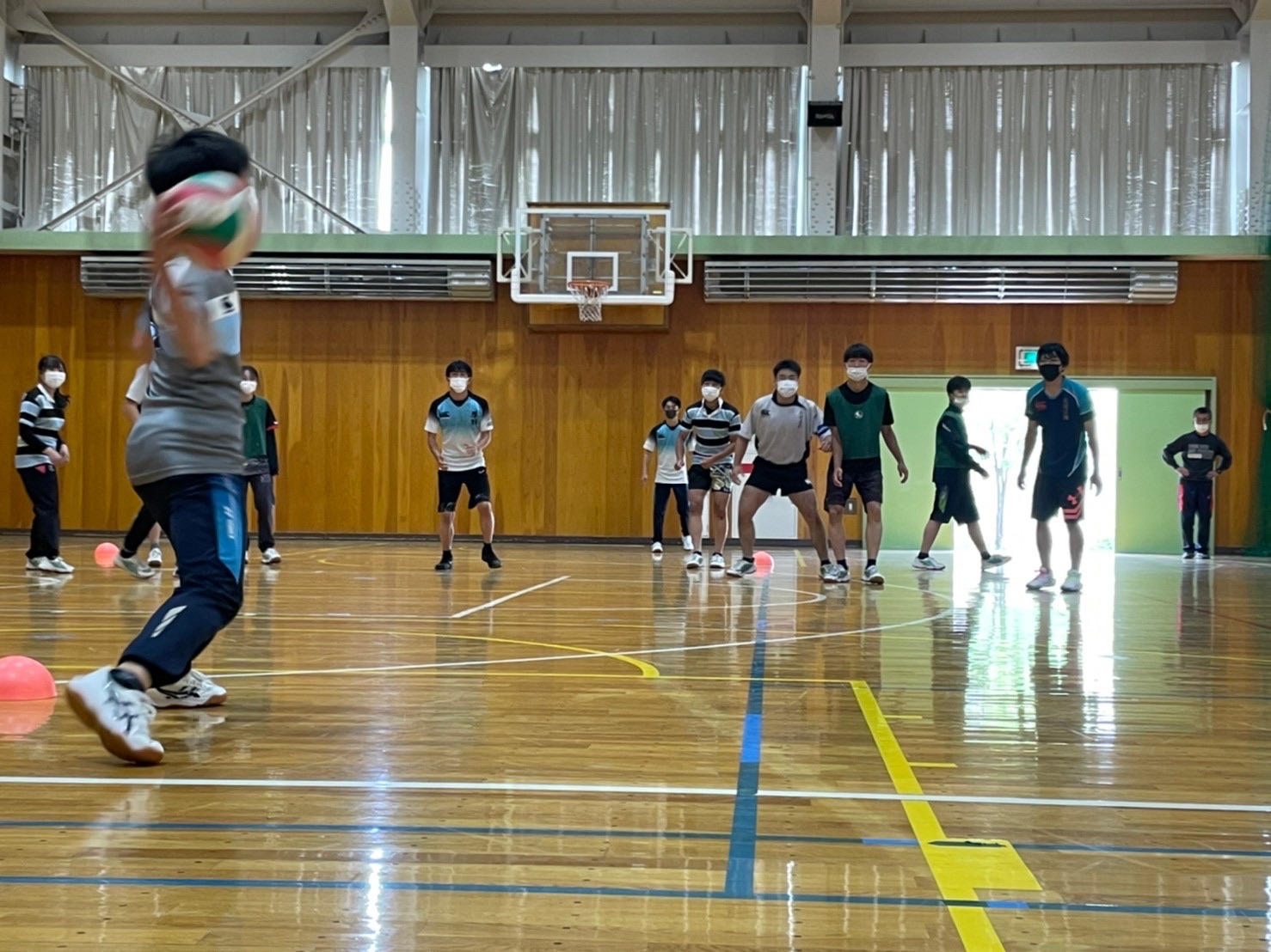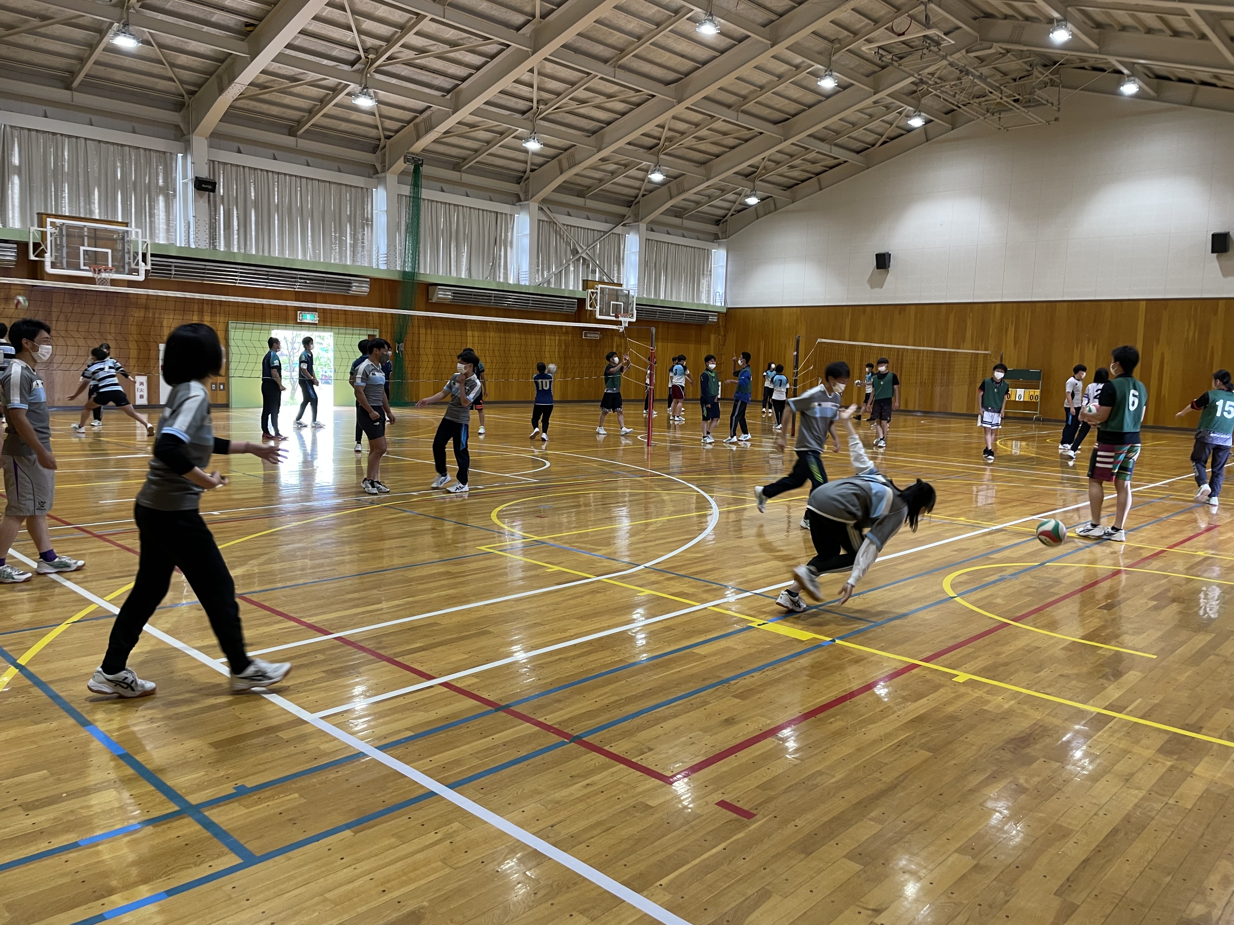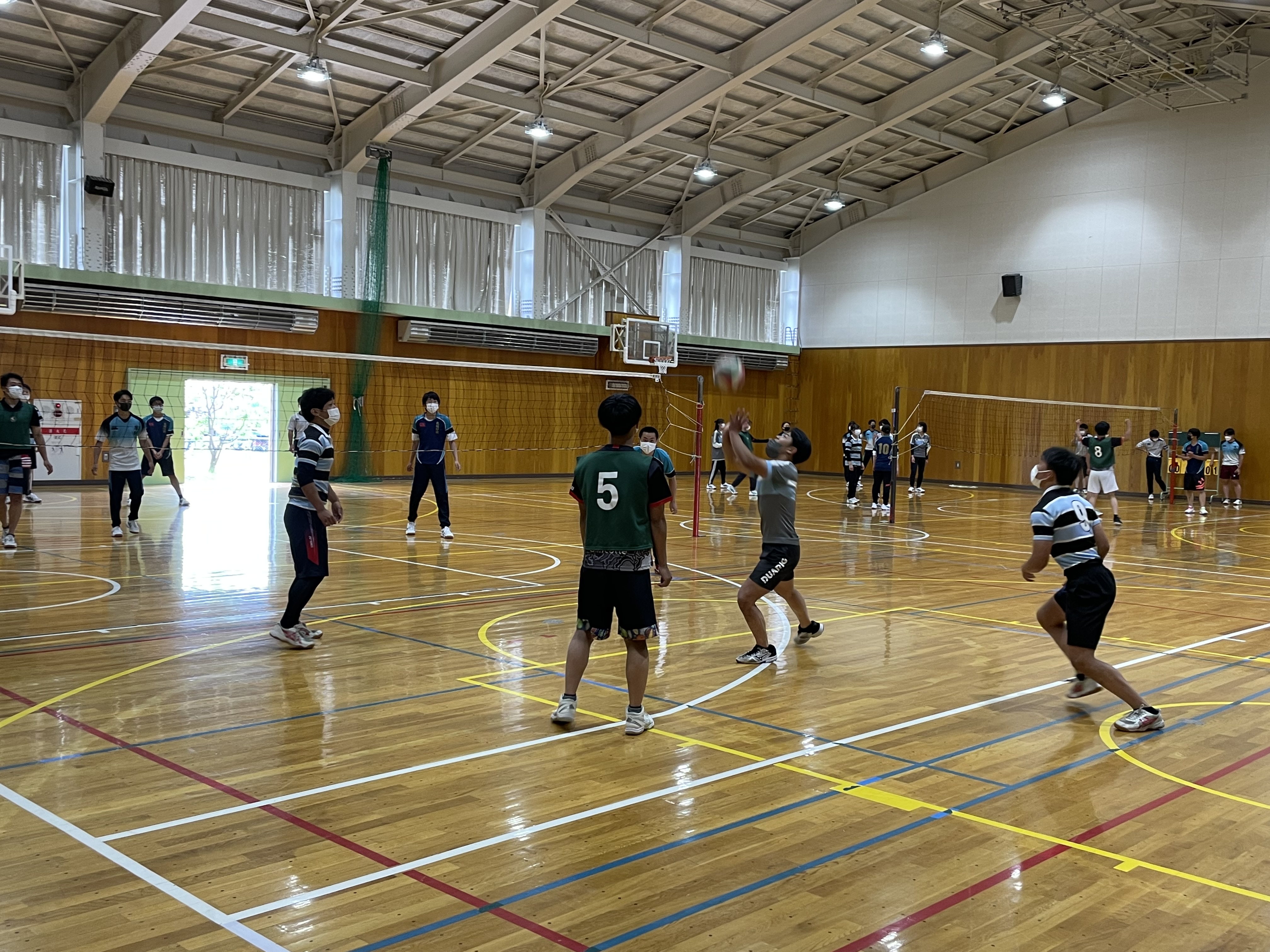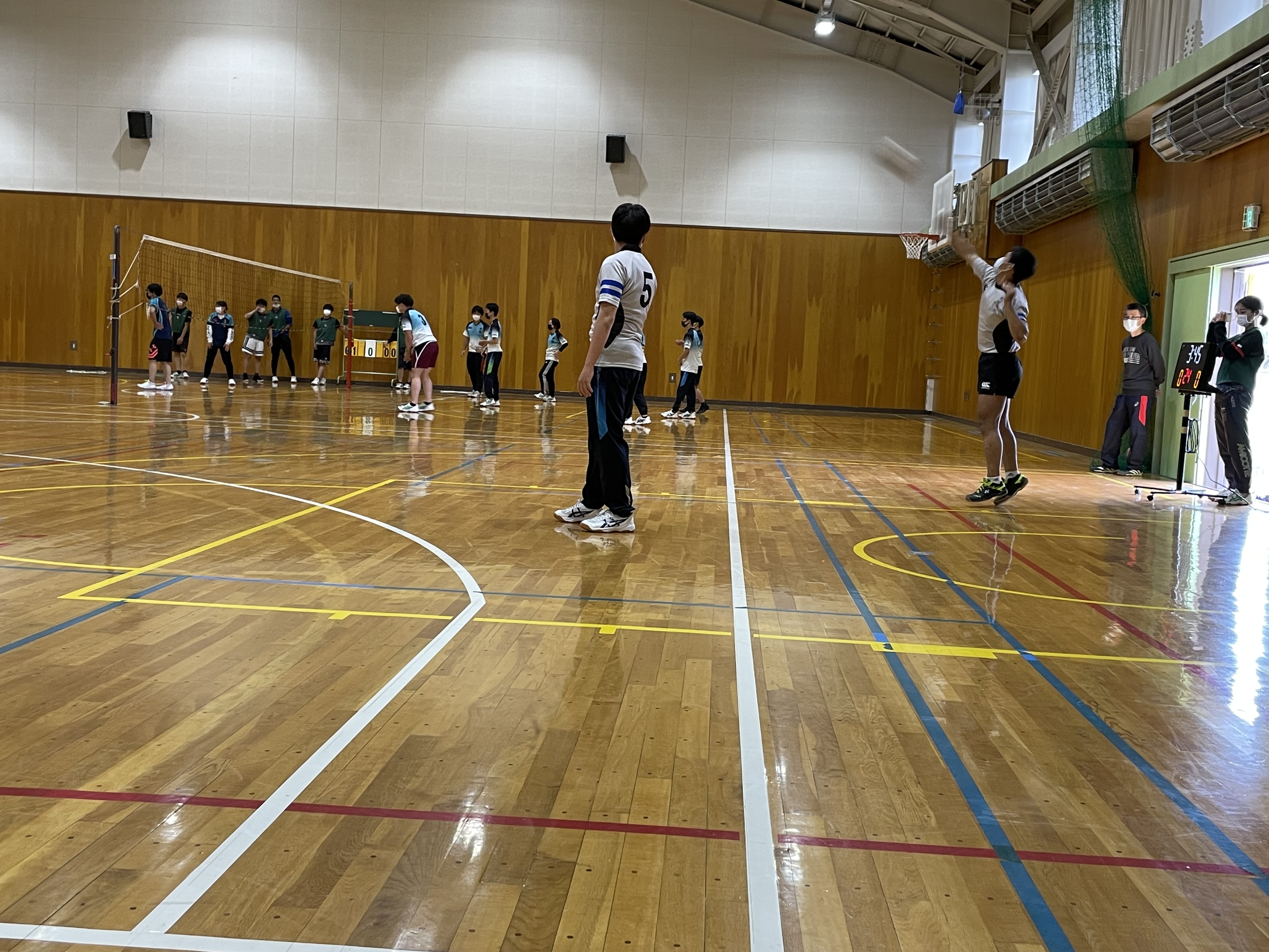 各チームや学年別などに分かれて対決を行いましたが、バレー、バスケでは堀先生から提案された学年対抗や、経験者にチャレンジする企画も行いまさた。各競技では経験者はもちろん、試合中にもラグビーの要素を取り入れた動きや、熱いプレーがどのチームにも見受けられ、とても盛り上がりました。