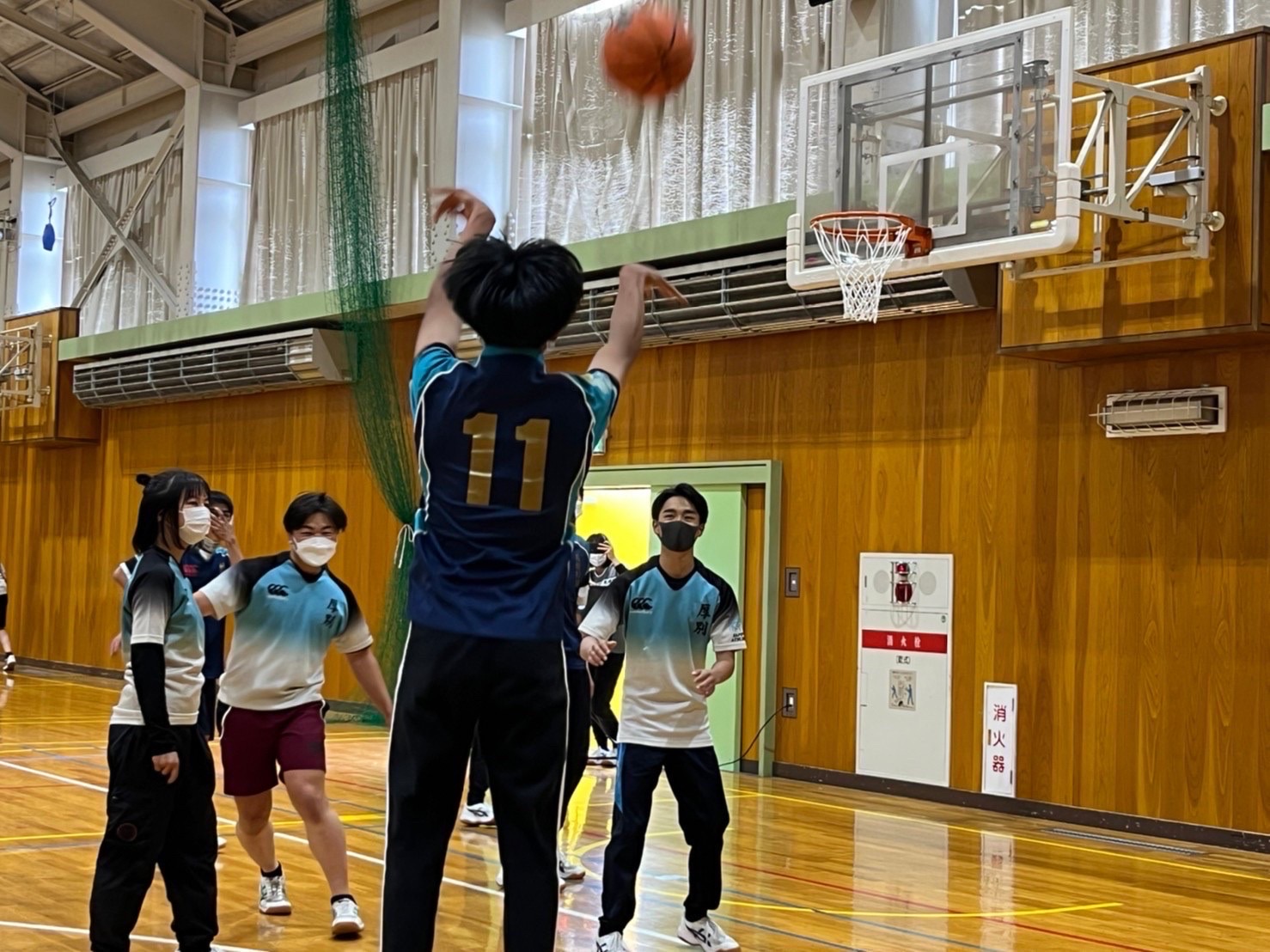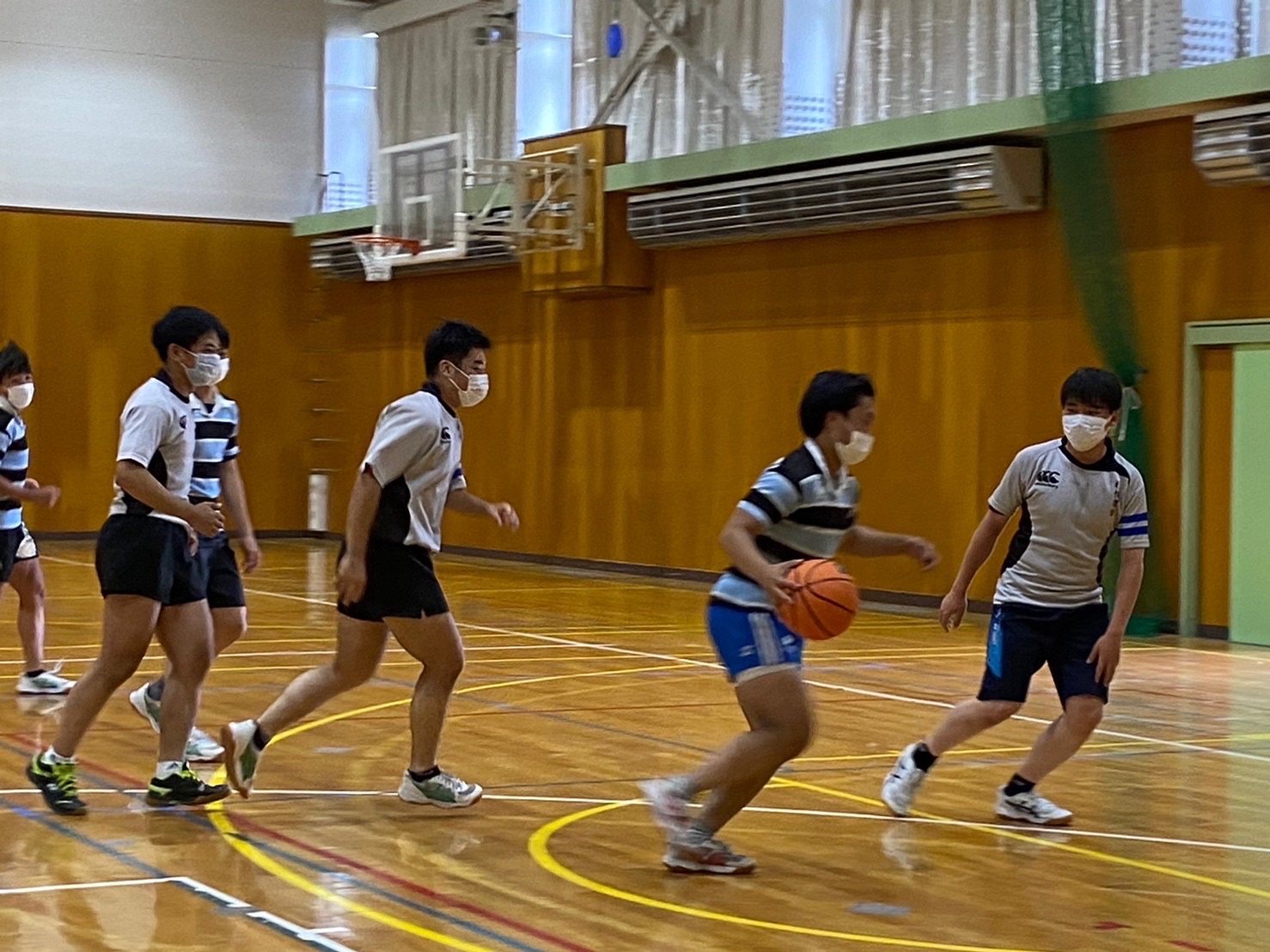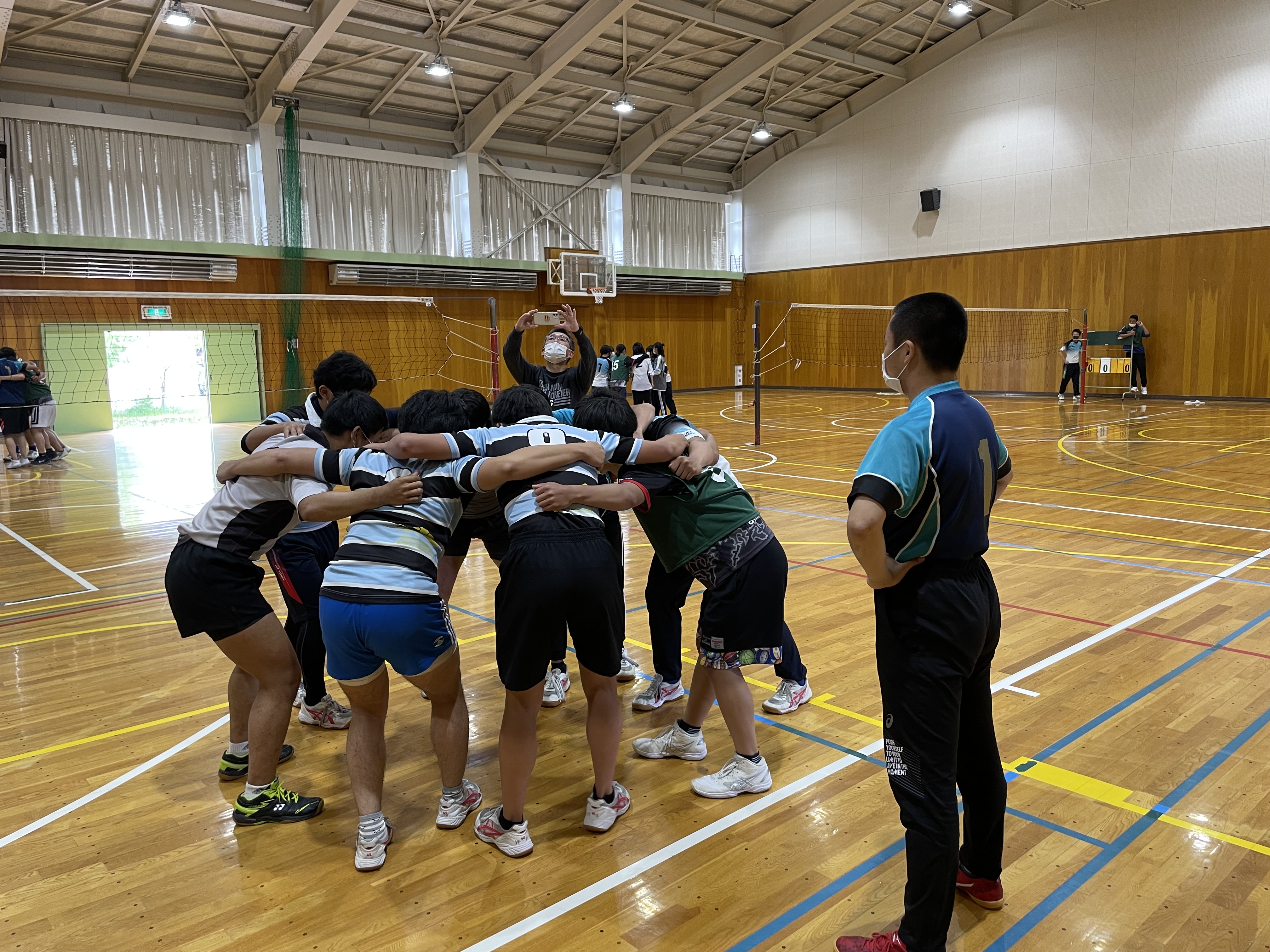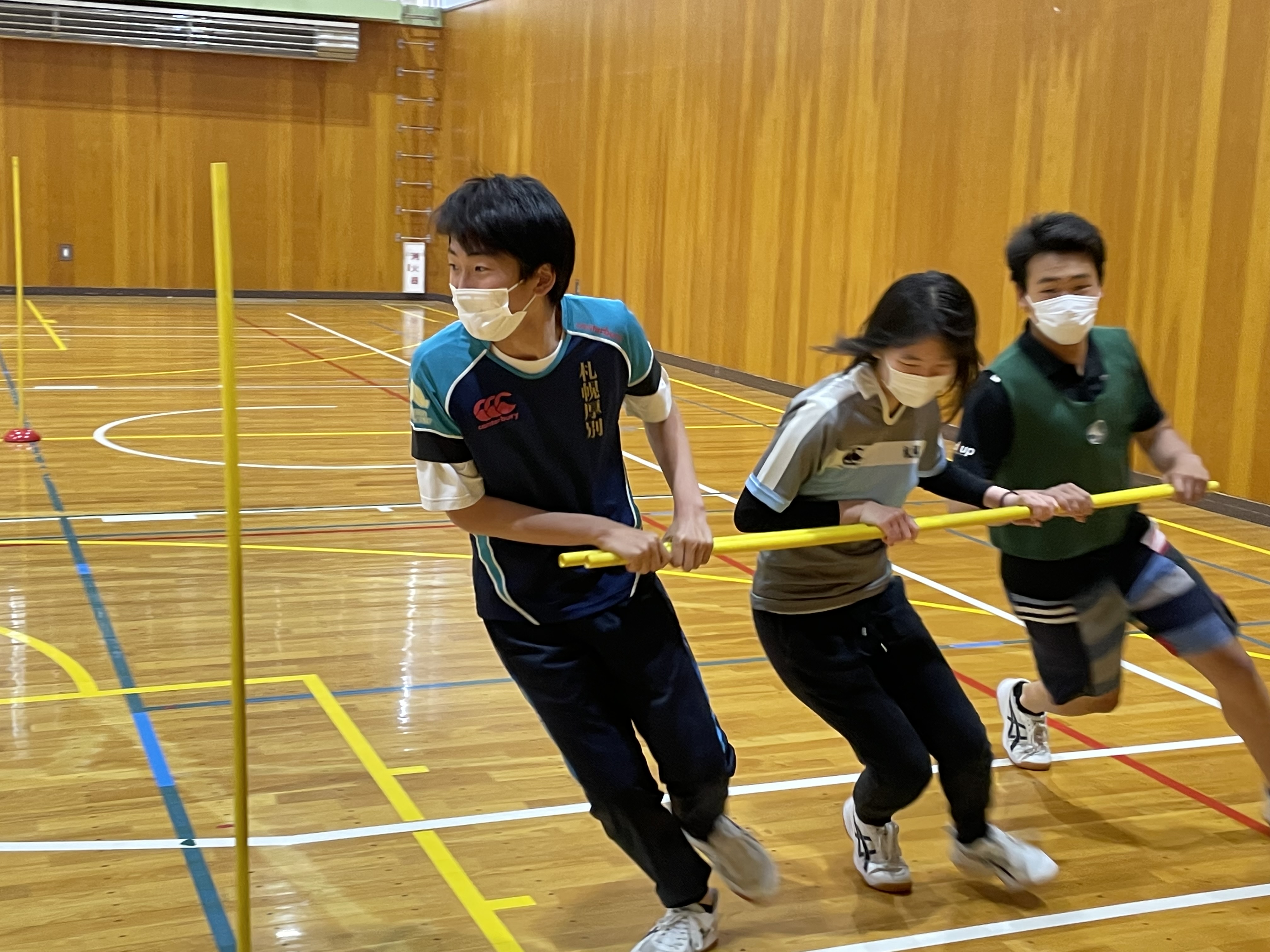 各チームや学年別などに分かれて対決を行いましたが、バレー、バスケでは堀先生から提案された学年対抗や、経験者にチャレンジする企画も行いまさた。各競技では経験者はもちろん、試合中にもラグビーの要素を取り入れた動きや、熱いプレーがどのチームにも見受けられ、とても盛り上がりました。