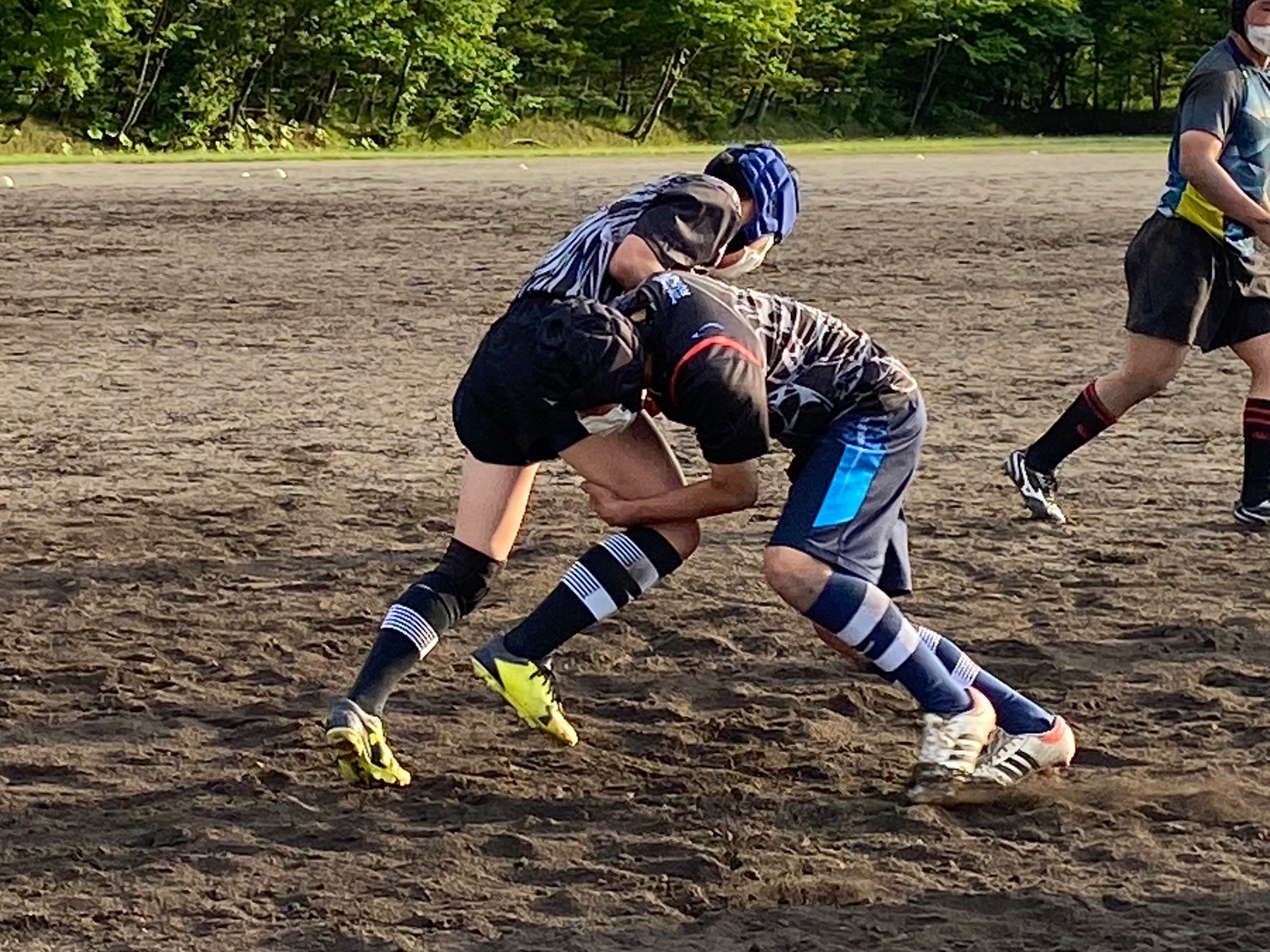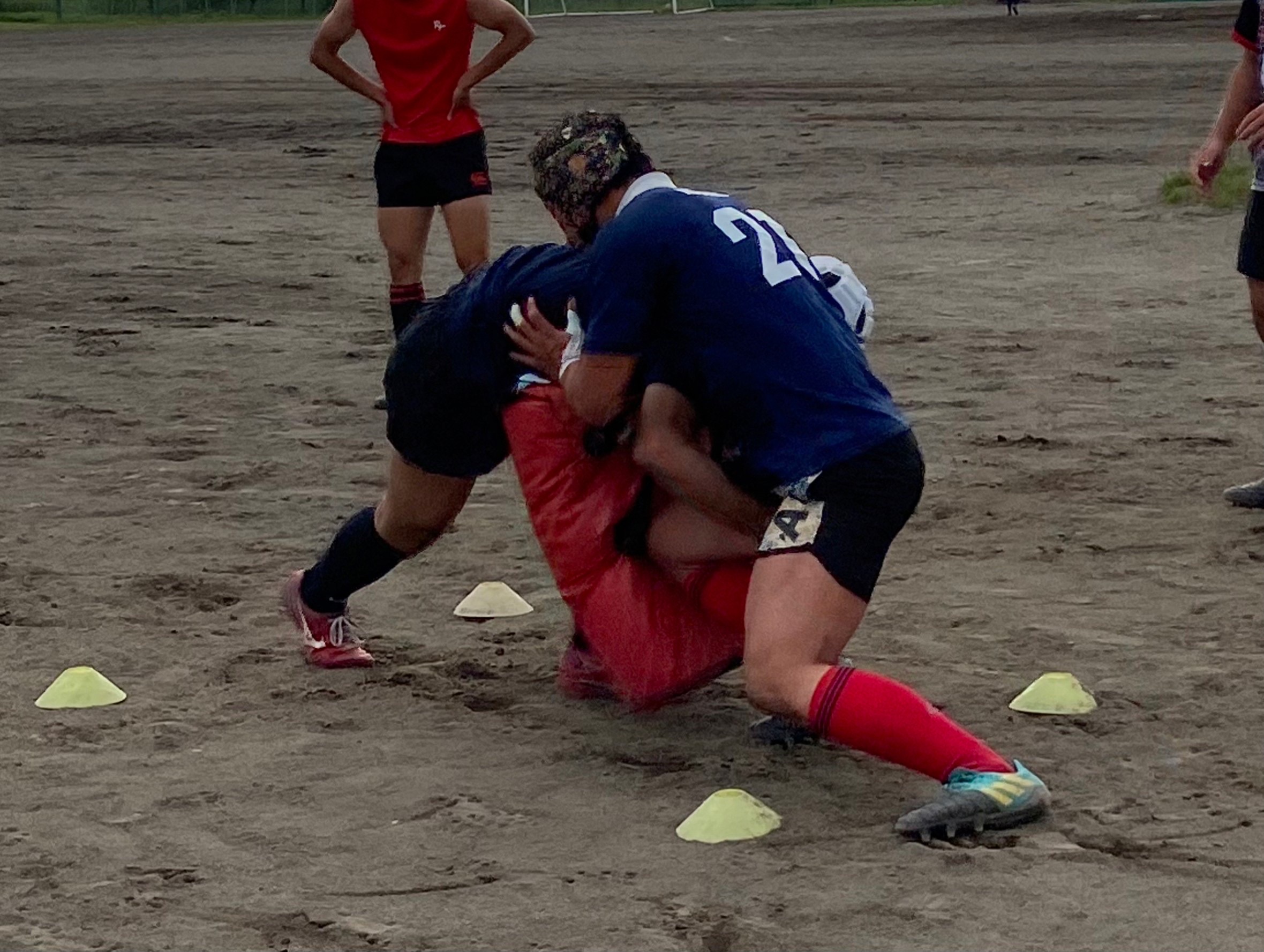 次に1vs1を行いました。入る時の姿勢が高くなってしまい、体が浮いてしまう場面が多々ありました。なので、全力で前に出て押すことを意識しましょう。