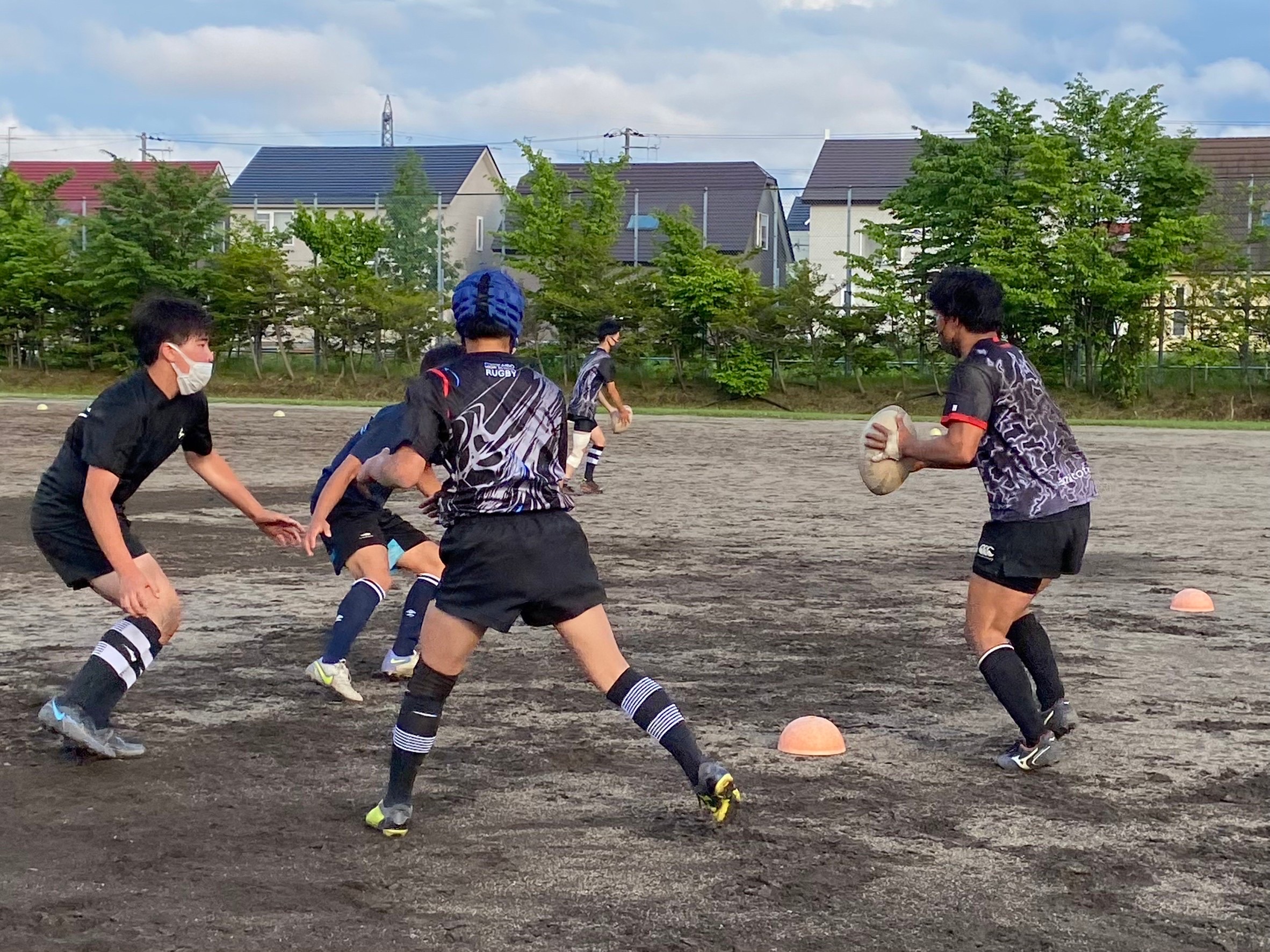 FWは、モールの練習をしました。スクラムやモールは、1人が不安定になると、全体のバランスが崩れてしまうと言う声が上がりました。なので全員で粘ることと、同じ方向に力を入れることを意識しましょう。