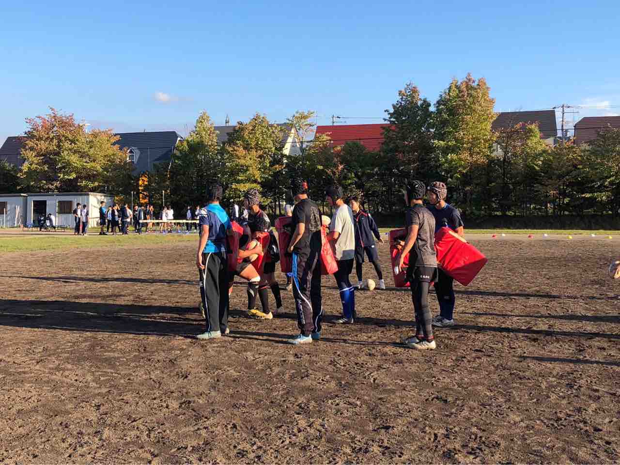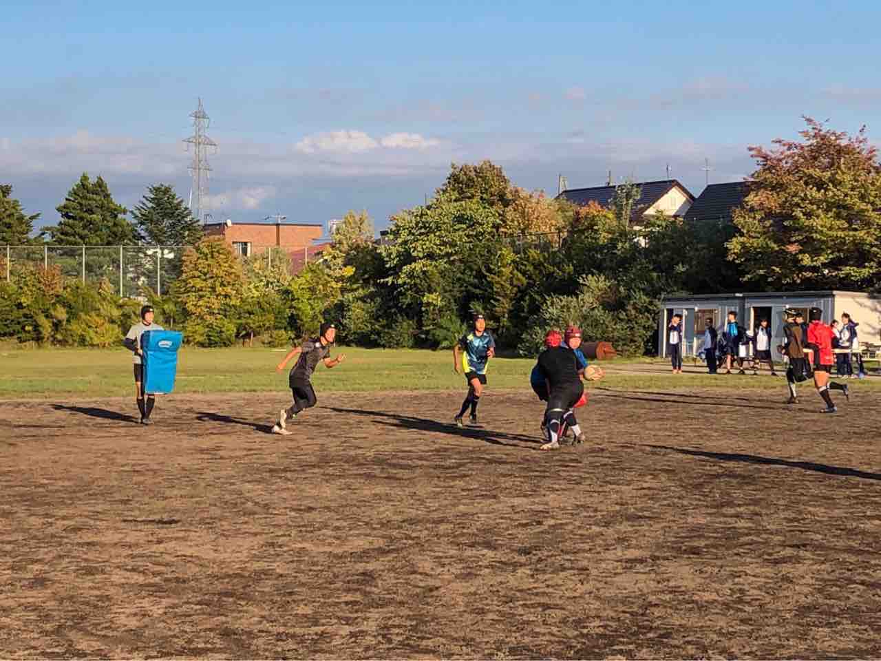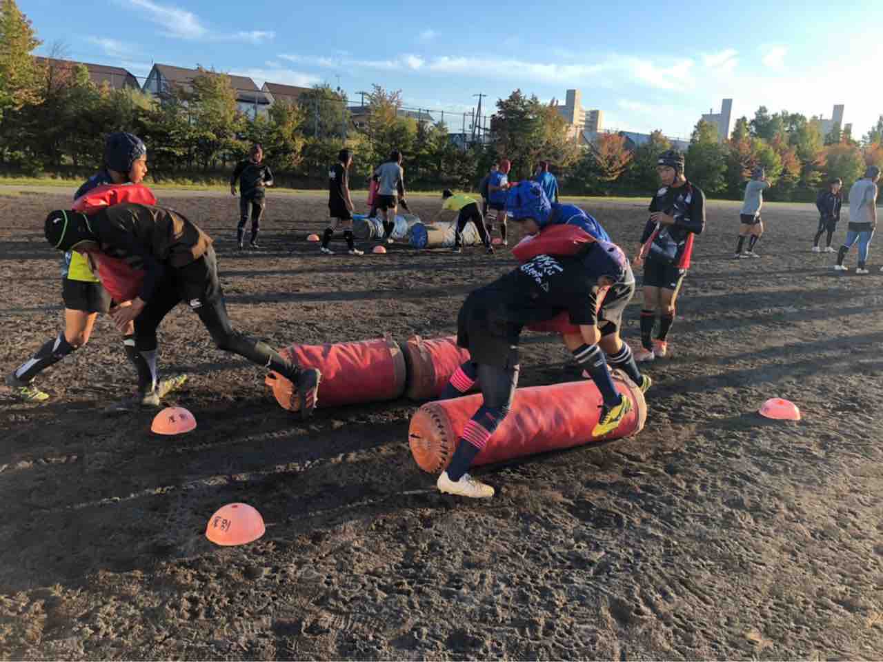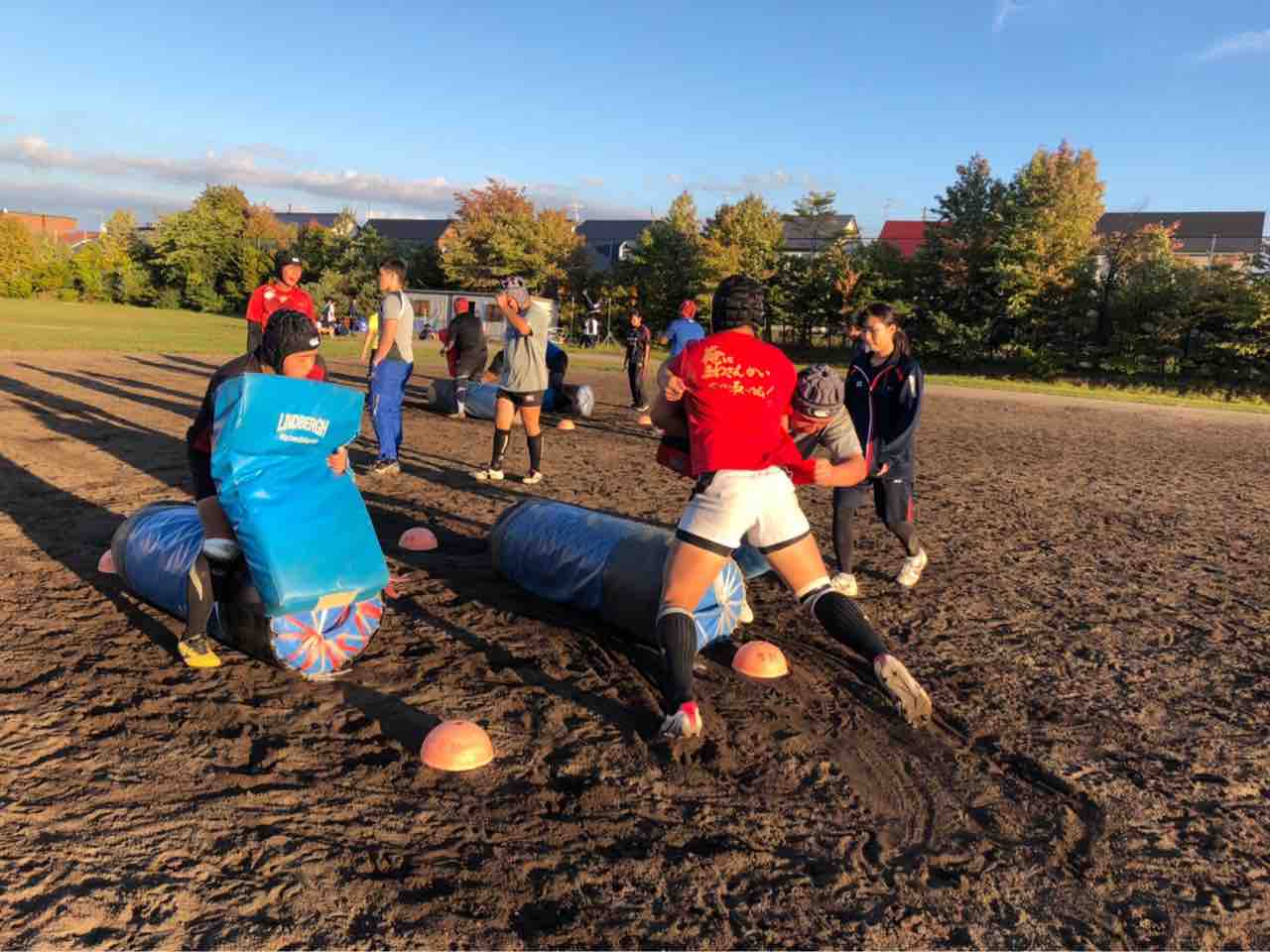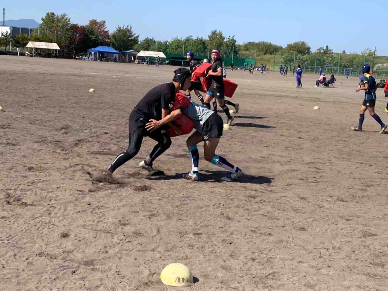 メニューは、ハンドリング・フィールディング・ショートレンジ・グリッドタックル・突破・縦コンタクト各種・テンポアップアタック・ビッグインパクト・クリーンアウト・コの字オーバー・ユニット・チームランを行いました。