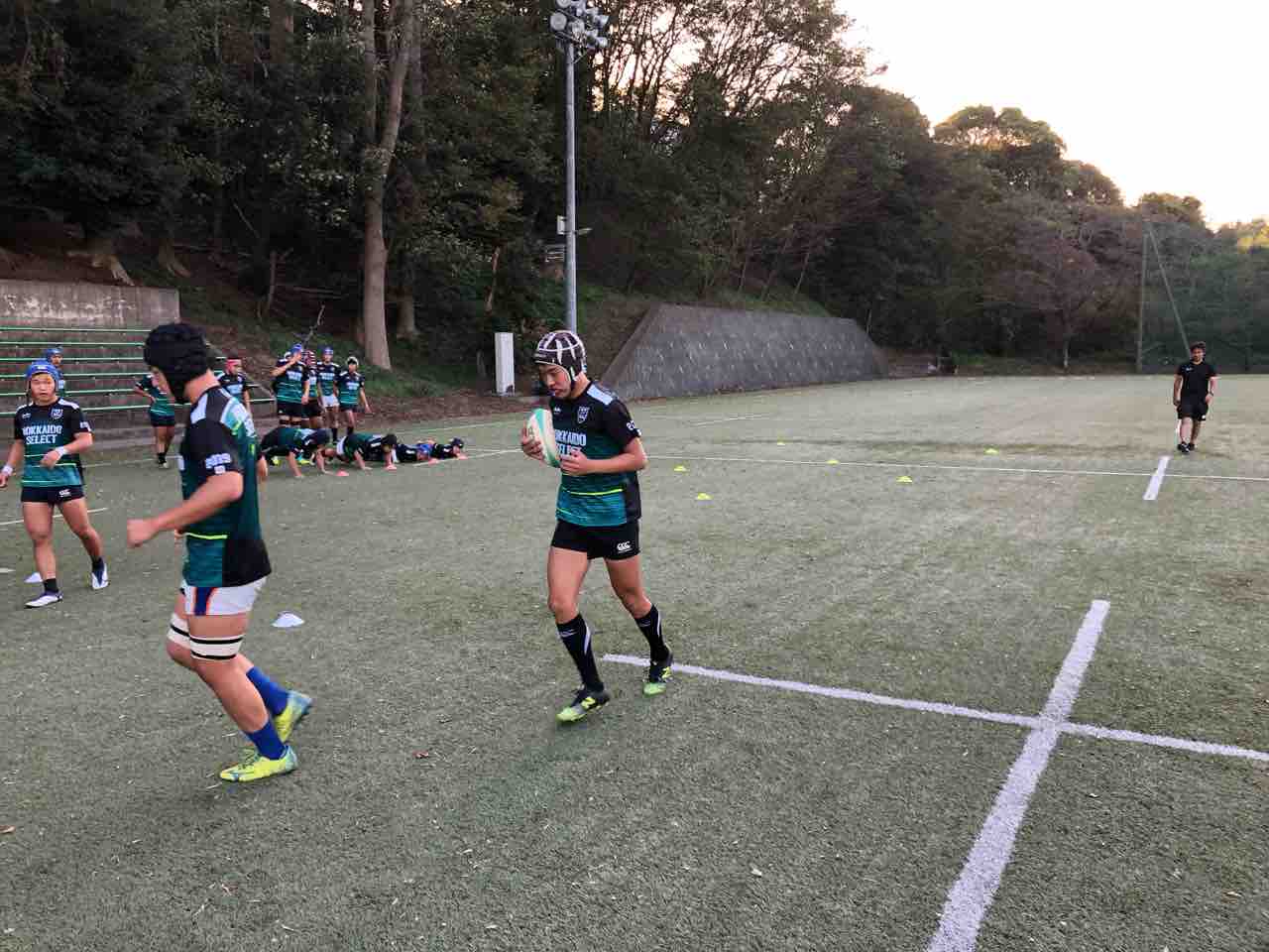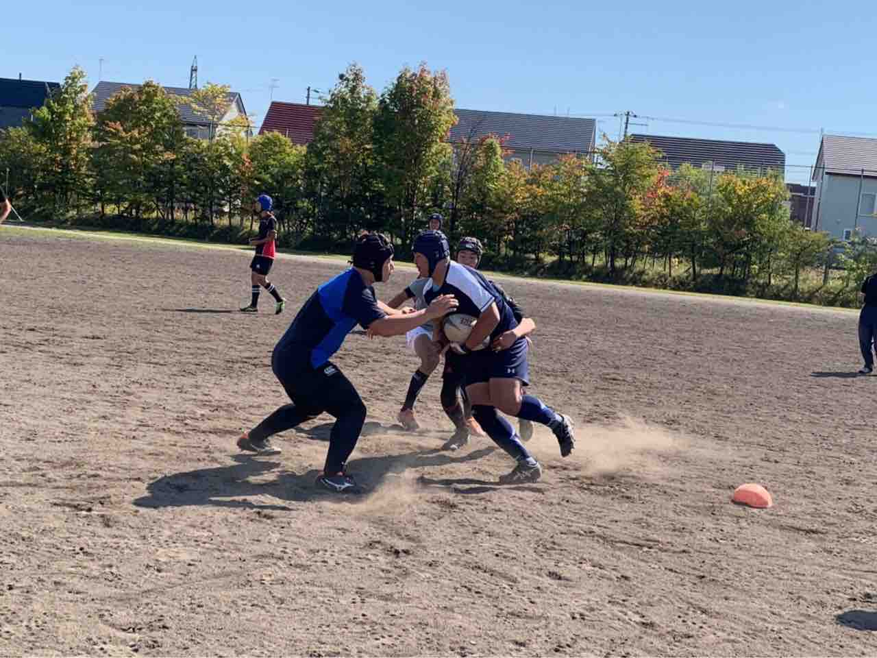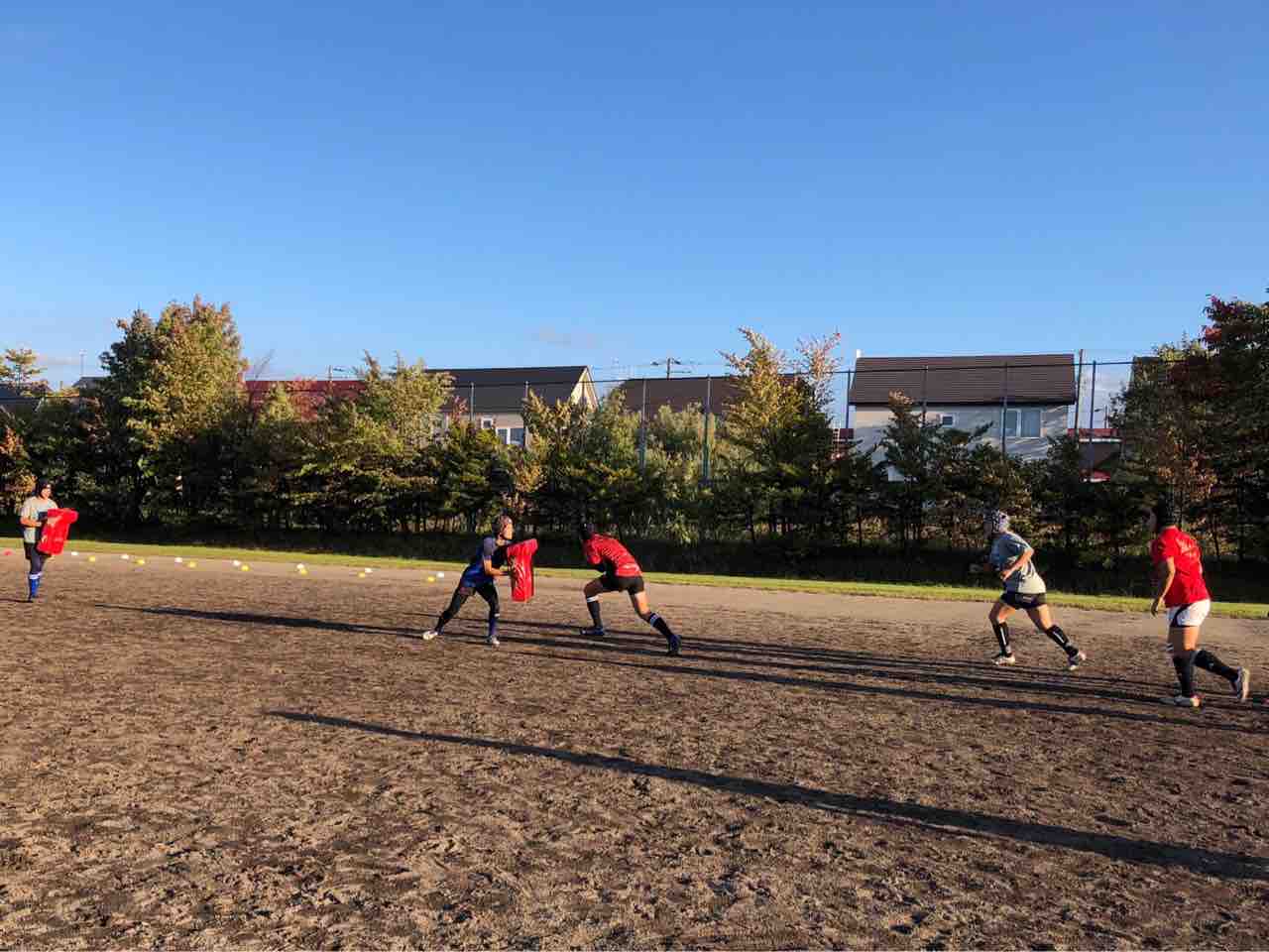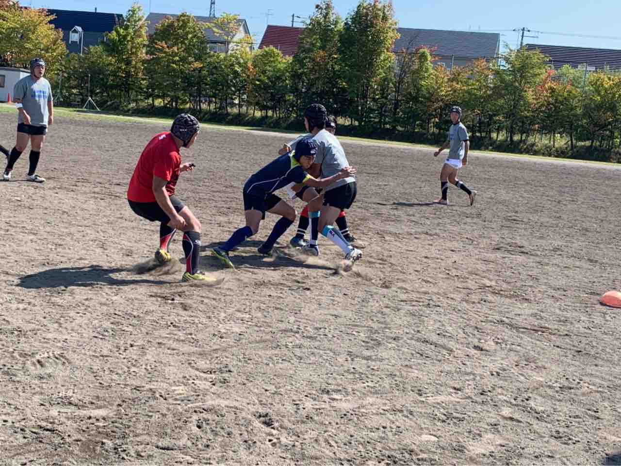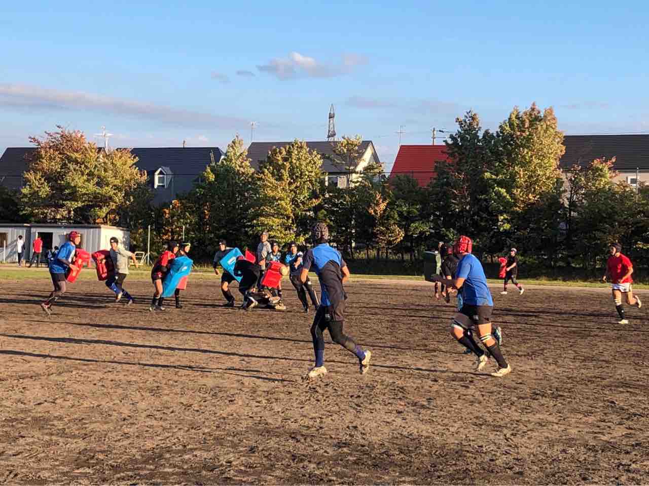 メニューは、ハンドリング・フィールディング・ショートレンジ・グリッドタックル・突破・縦コンタクト各種・テンポアップアタック・ビッグインパクト・クリーンアウト・コの字オーバー・ユニット・チームランを行いました。