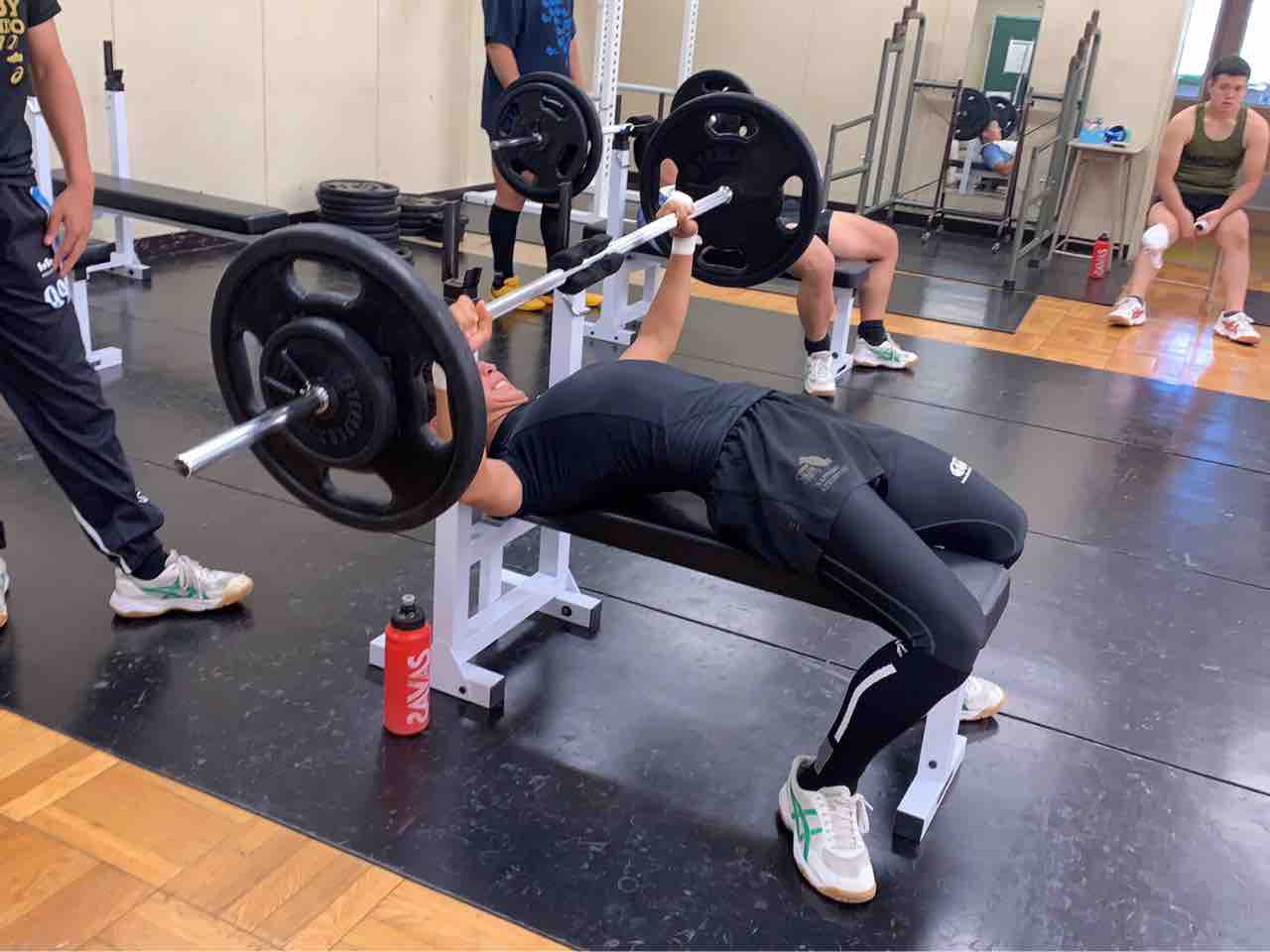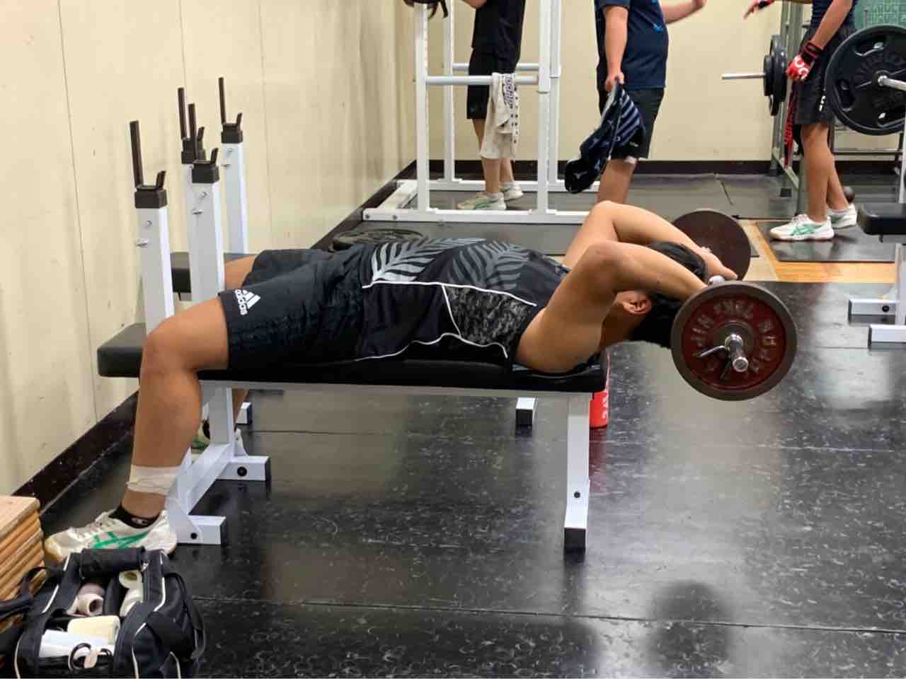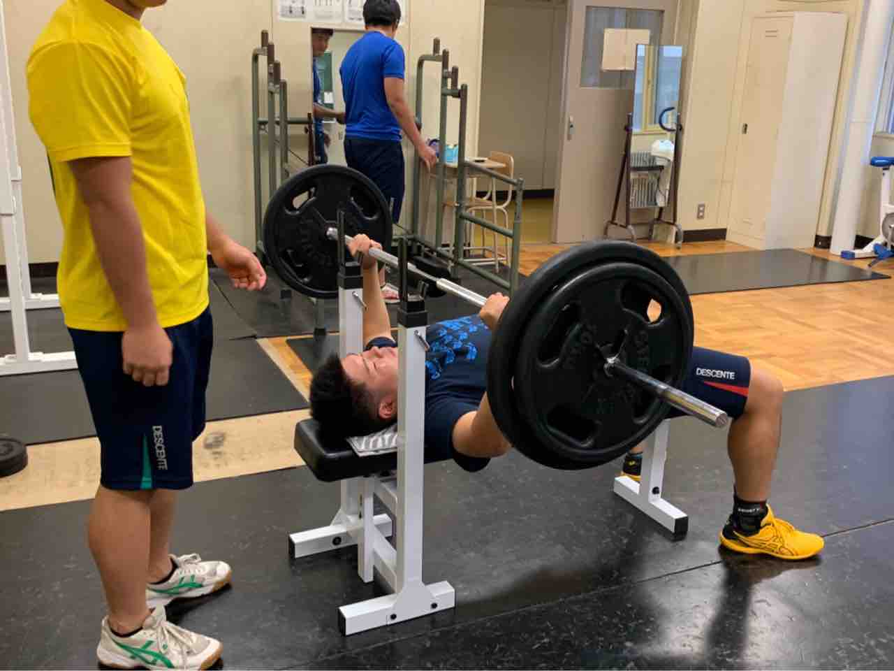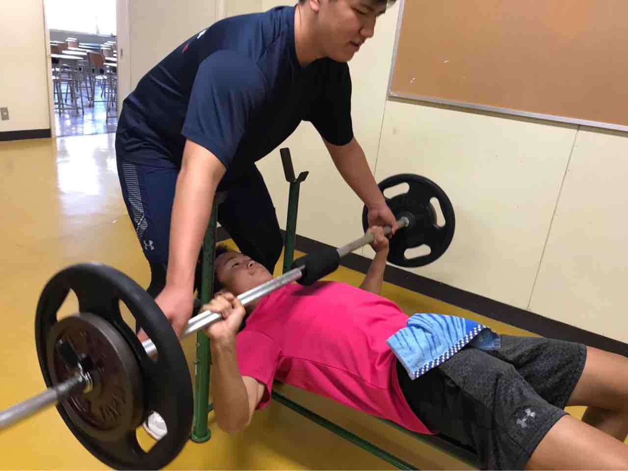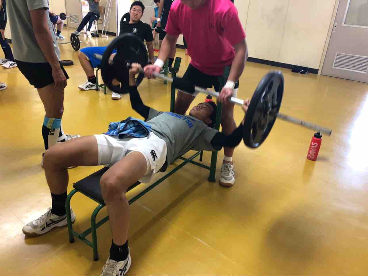 一年生は自重トレーニングに加え、最近ベンチプレスにチャレンジしています。選手の中には先輩方の真似をして工夫してやっている人がいました。このようにただやるだけでなく意識を高く持ち与えられたものにプラスαできる力は大切だと思います。