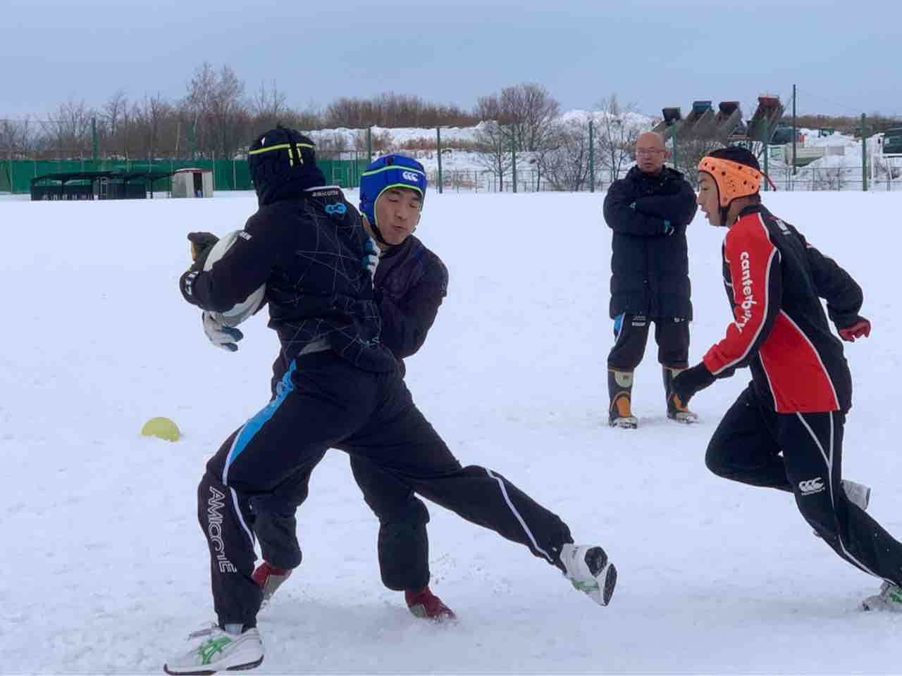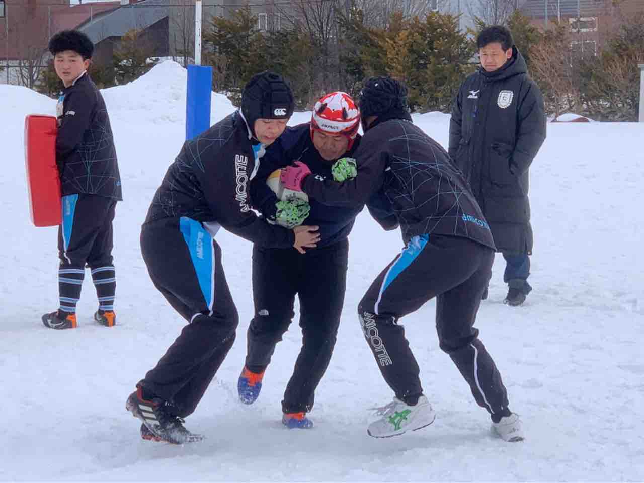 3年生のジョン先輩、翼先輩、OBで国士舘大学でラグビーをしている横木さんが来てくれました。