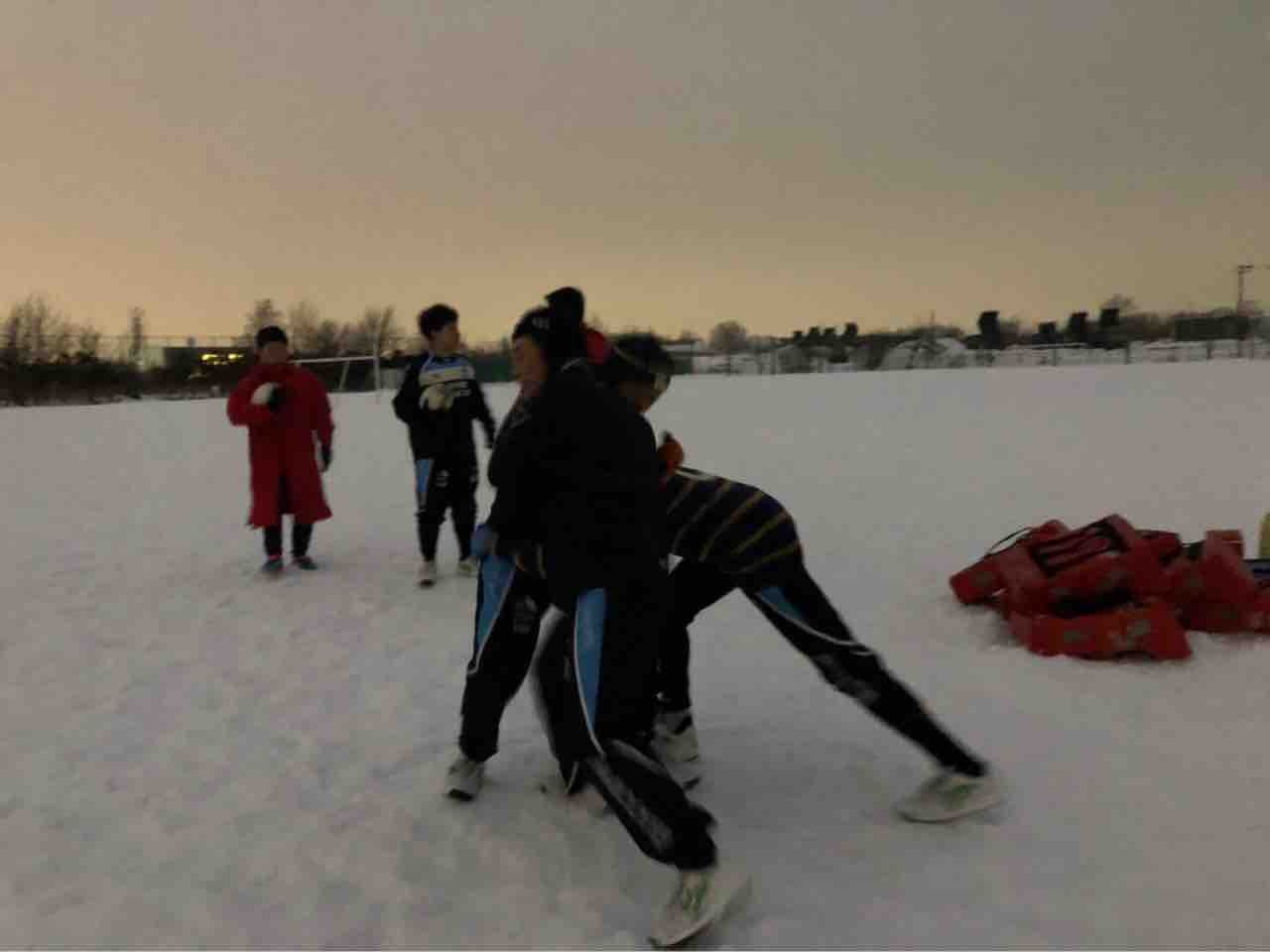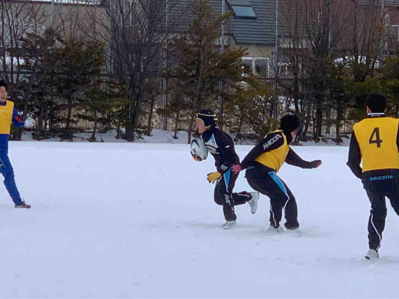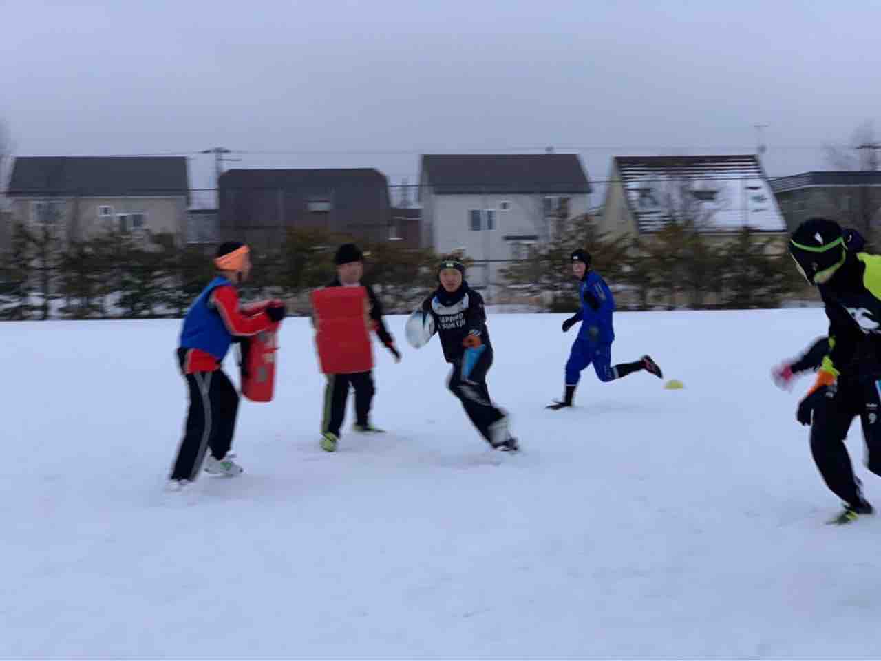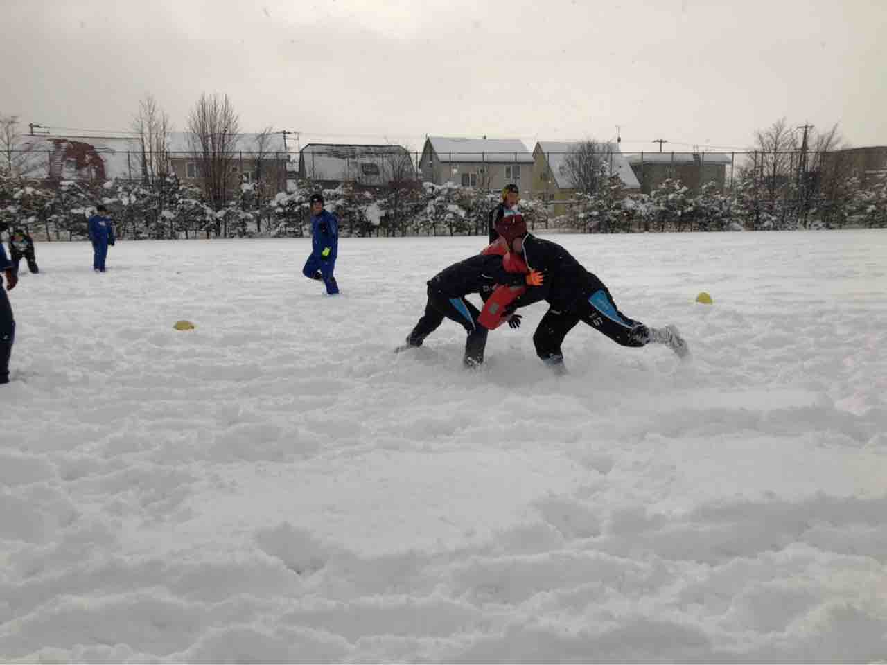 ミニゲームでは、足場が悪く体力が奪われる状況でしたが、前に出て体を当てる事が出来ていた様に思います。最後はタイヤ引きで雪をならして、厚別桜台会館に移動しました。