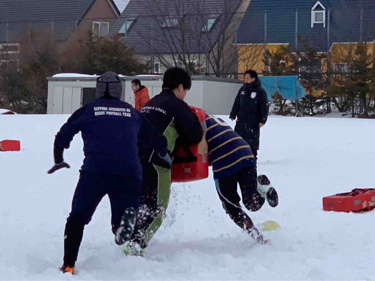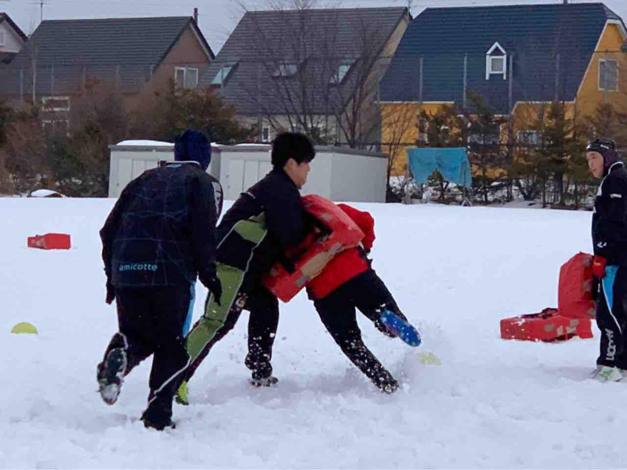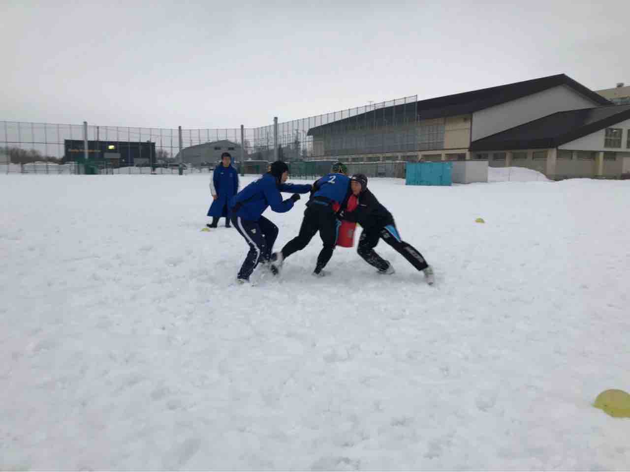 ミニゲームでは、足場が悪く体力が奪われる状況でしたが、前に出て体を当てる事が出来ていた様に思います。最後はタイヤ引きで雪をならして、厚別桜台会館に移動しました。