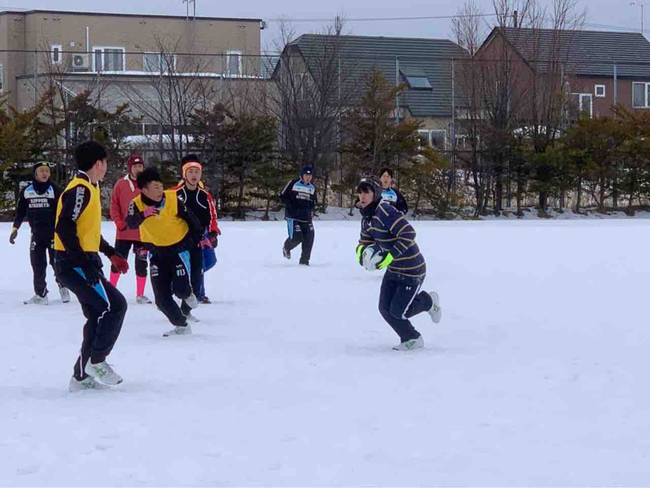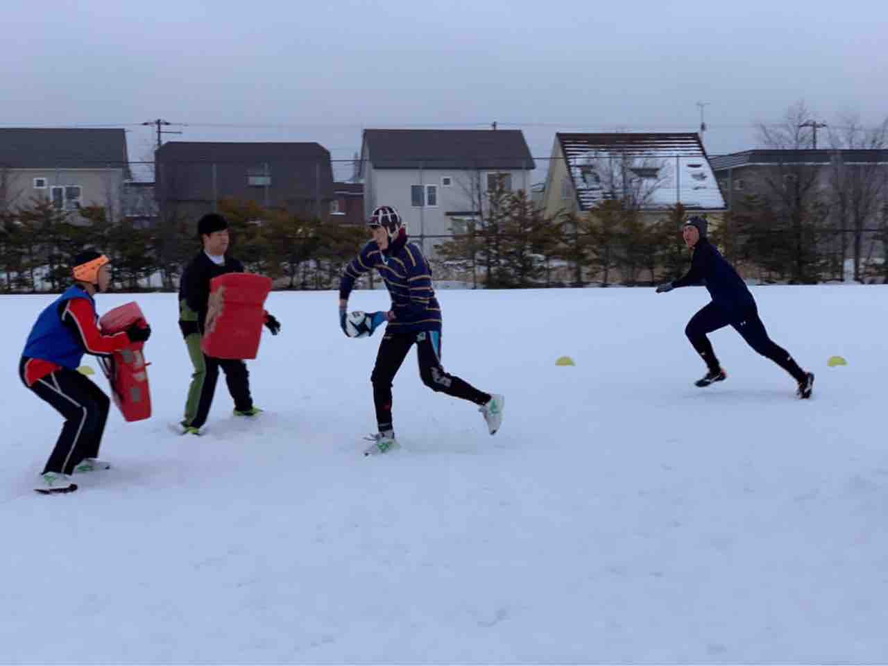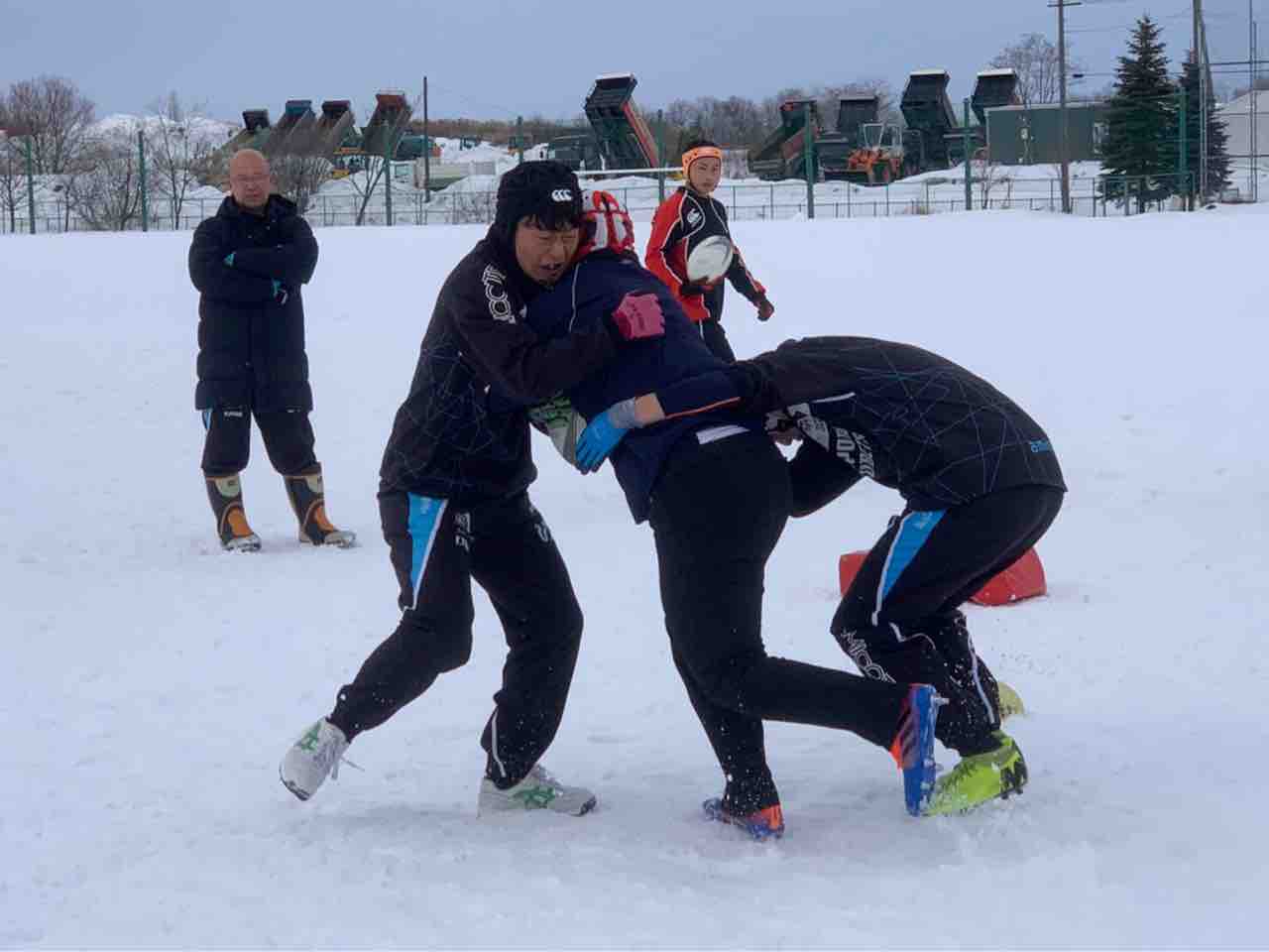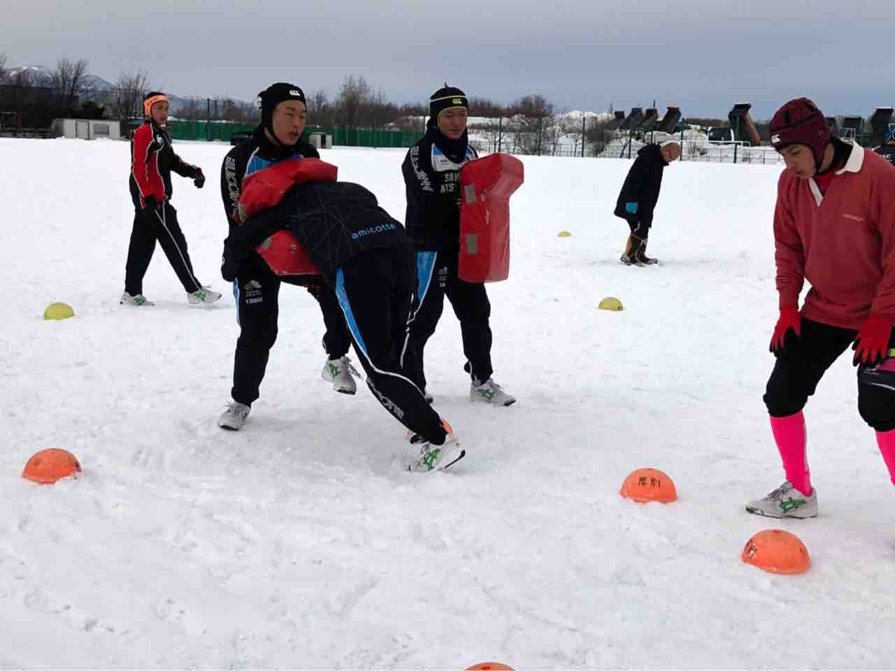 ミニゲームでは、足場が悪く体力が奪われる状況でしたが、前に出て体を当てる事が出来ていた様に思います。最後はタイヤ引きで雪をならして、厚別桜台会館に移動しました。