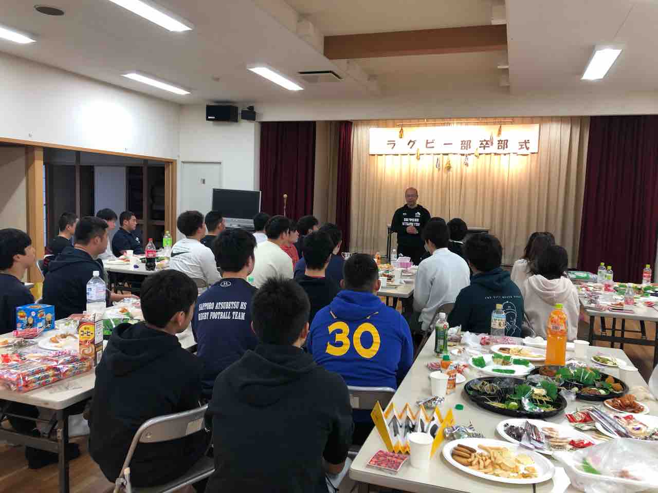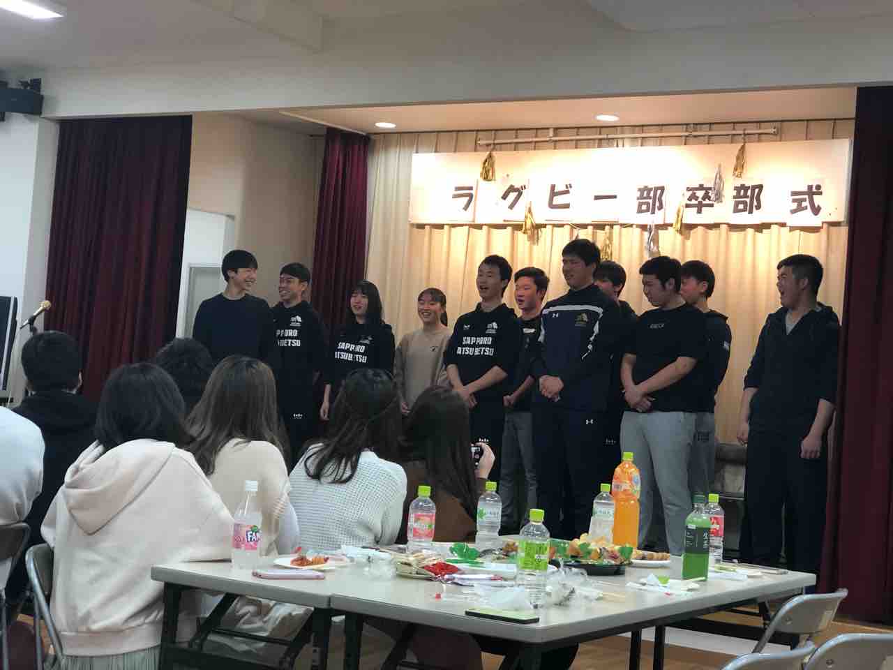 私は残念ながら、決勝トーナメント直前に会場を後にしました。高体連ラグビー専門部長の若林先生と副部長の川口先生の定年退職に際して長年のご奉職に感謝してお祝いする会の準備や受付など業務に当たらせてもらいました。若林先生からは、札幌厚別高校の活動についてお声かけいただき激励していただき感無量の思いでした。若林先生、川口先生、ありがとうございました。
