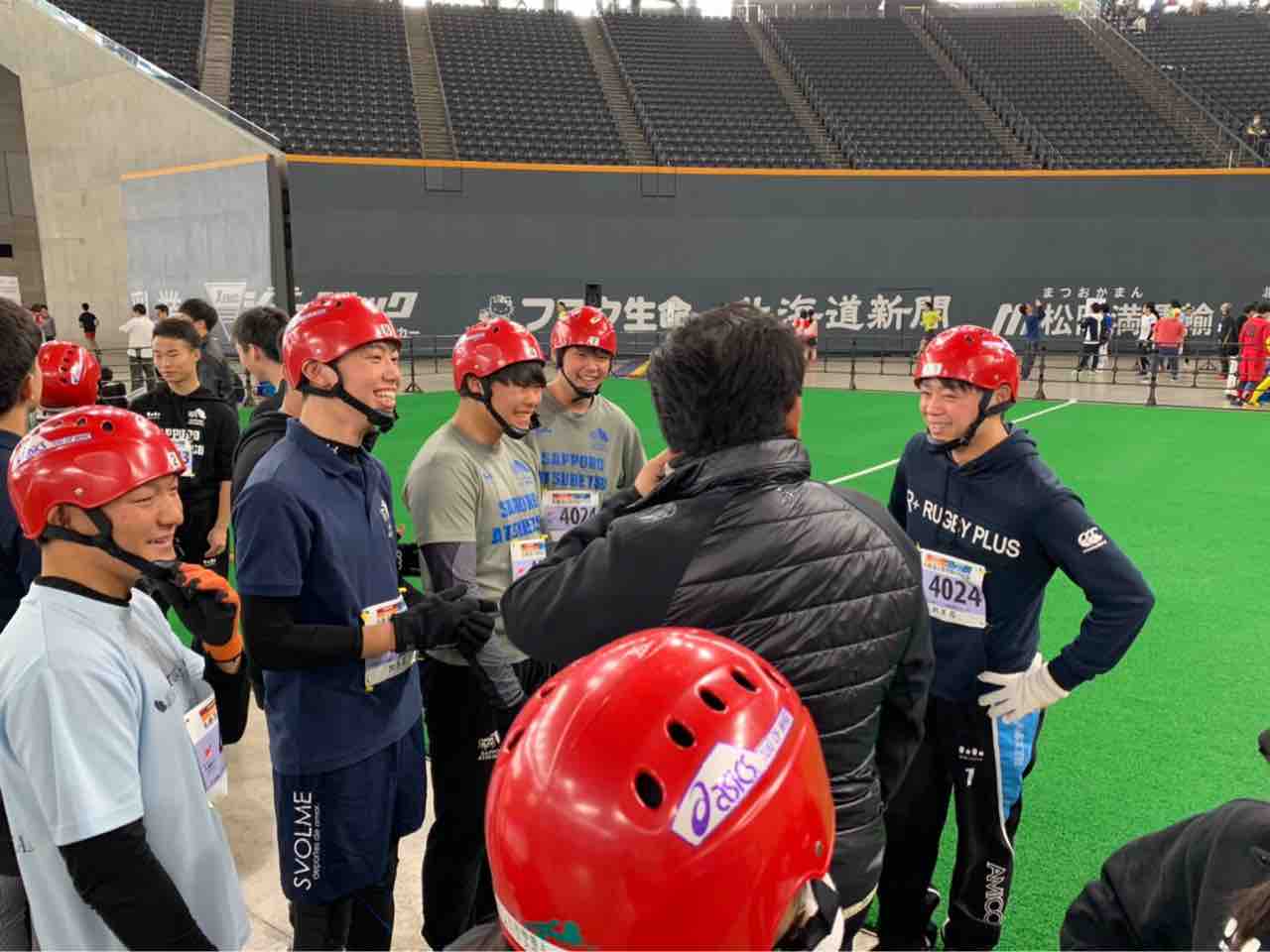 今回もその活動の一環。ほっかいどう大運動会への参加。今回は剣道部との参加。剣道部は校内において野球部と共に部活動の良心として模範的な活動を展開しています。立派な挨拶・返事はもちろんのこと、取り組みへの真剣さは目を見張るものがあります。それでいて高校生らしい明るさや素直さを失わず好感が持てる生徒たちに一瞬にして魅了されました。3年前に着任した時には野球部と剣道部になんとか追いつきたいという思いを強く持ちました。普段はなかなかコラボする機会のない剣道部と交流する機会を得られたのは私としては本当に嬉しく、ラグビー部が校内で少しずつ認められ応援されるクラブになって来たのかなと思えました。