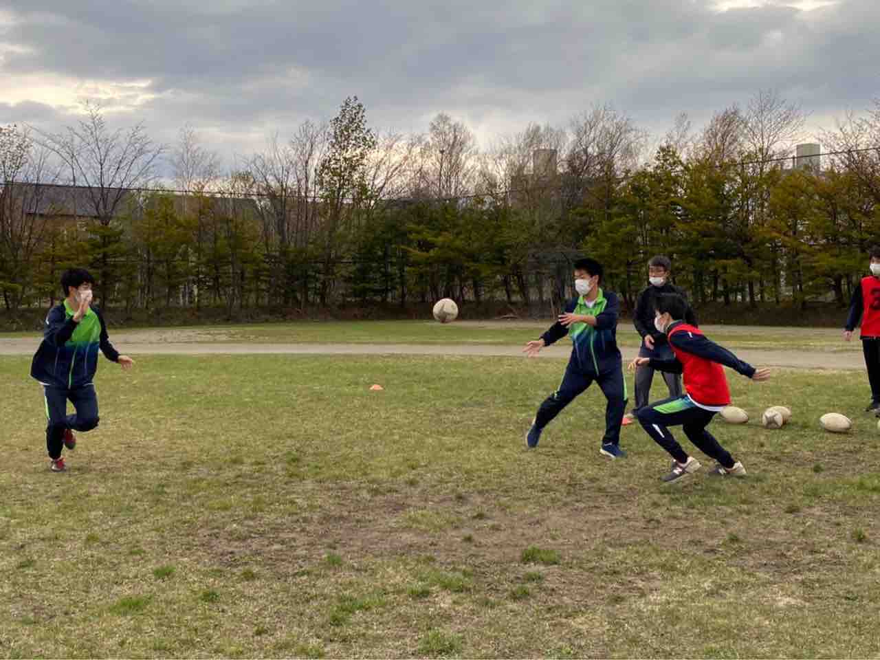 1年生は、ハンドリグ、2対1、キックキャッチなどの基本的なメニューを行いました。