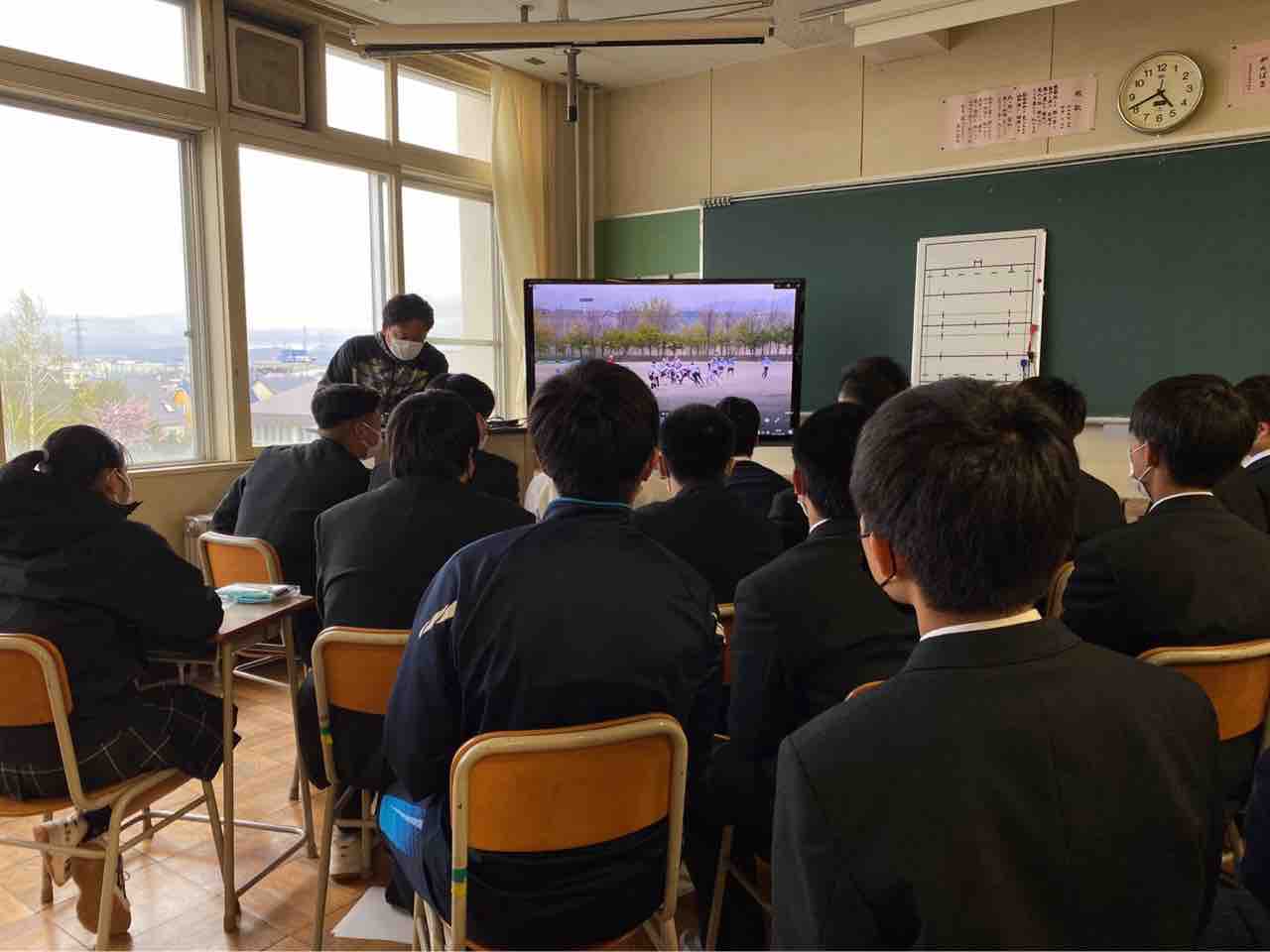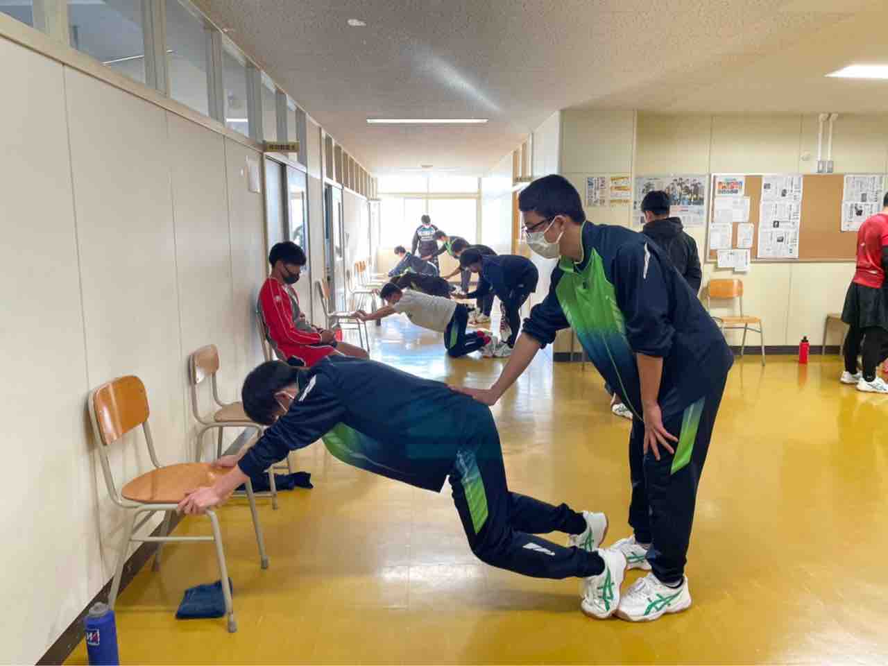 本校においては春季大会、高体連、高野連、高文連それに準じる大会は生徒の重要な活動機会と判断され、大会参加及び大会に向けた練習を認めてもらっています。我々だけでなく校内でもさまざまな部が活動のほとんどをマスク着用のまま取り組み、感染予防に徹しながら活動しています。冬の間もずっとマスク着用で頑張ってきました。他の学校ではマスク着用で練習するところはほとんどないと聞いています。マスクをつけたままの活動を笑われたこともあります。他校から異動して来られた先生方も驚いておられました。しかし、活動を守る為にも感染しない・させない事を大切に我慢して取り組んできました。今後も協力して感染対策に取り組んでいきたいと思います。