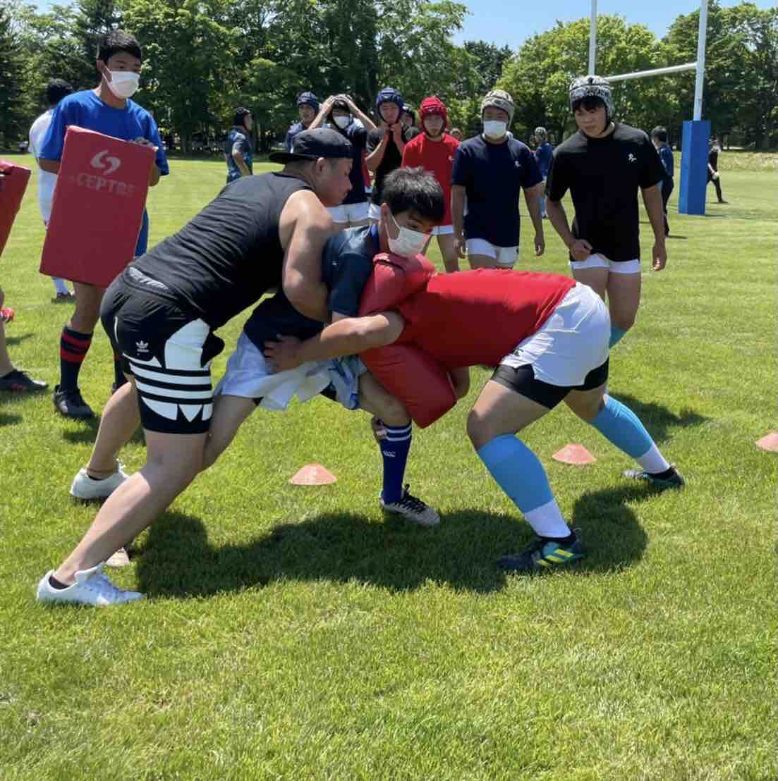 4列パス・十字グリッド・フィールディング・ショートレンジ、グリッドタックルこの流れをアップを意識して行うことで試合当日のイメージを膨らませられたと思います。