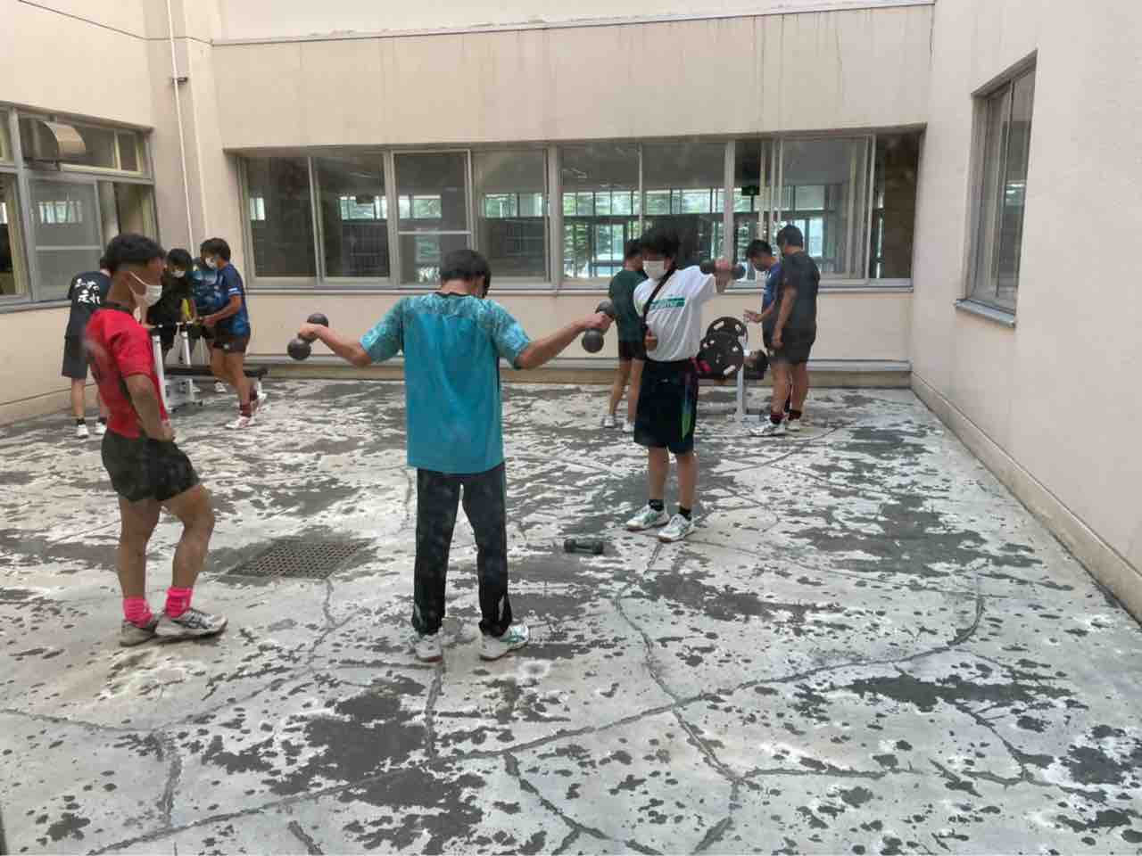 ウエイトトレーニング後はグラウンドでアルティメットを行い、リフレッシュを行いました。気温が高く体力が奪われる中でしたが、明るく盛り上がりが見られました。