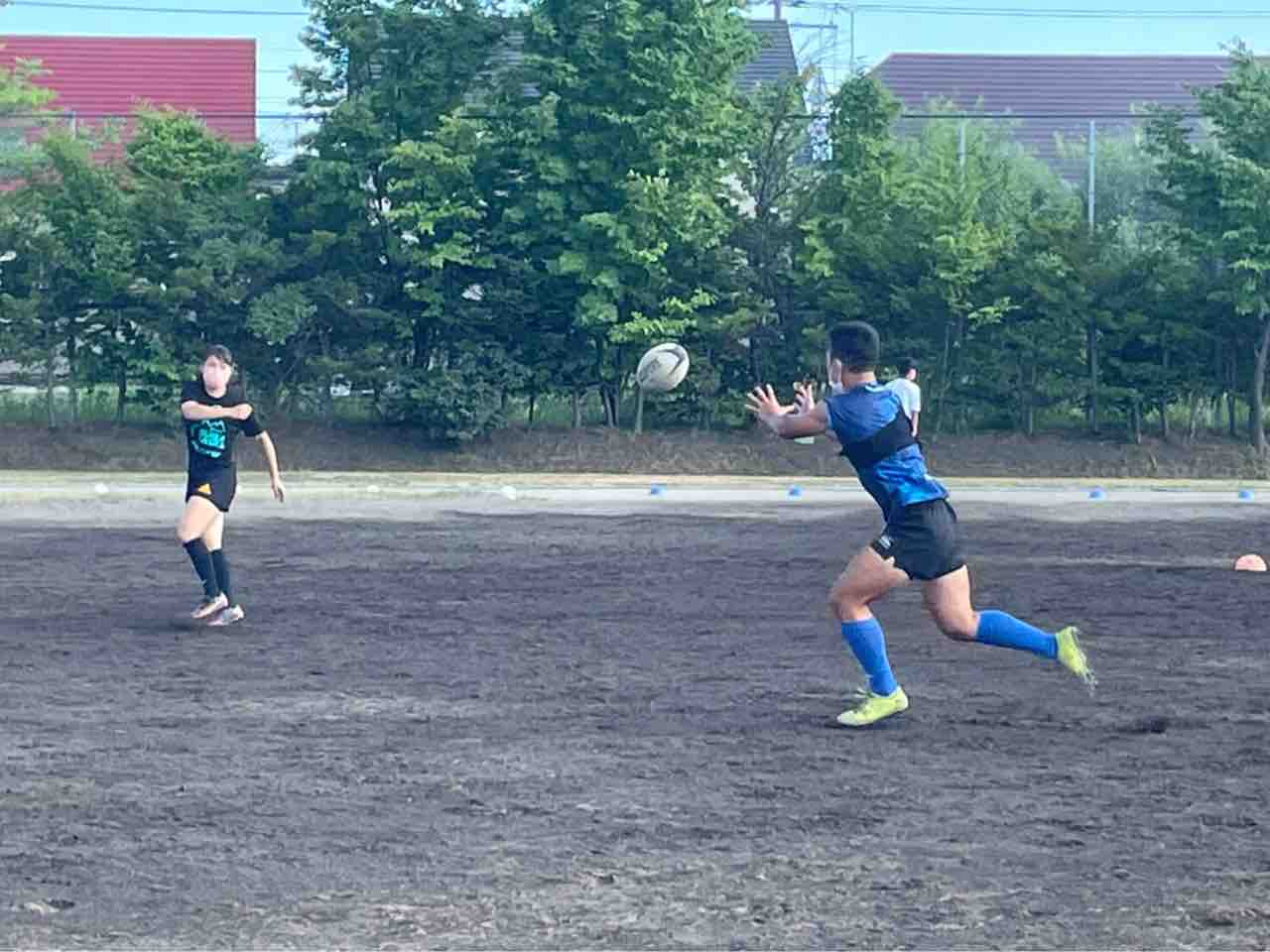 旭川龍谷高校が到着してからは4列パス、ショートレンジ、グリッドタックル、コンビを行いました。