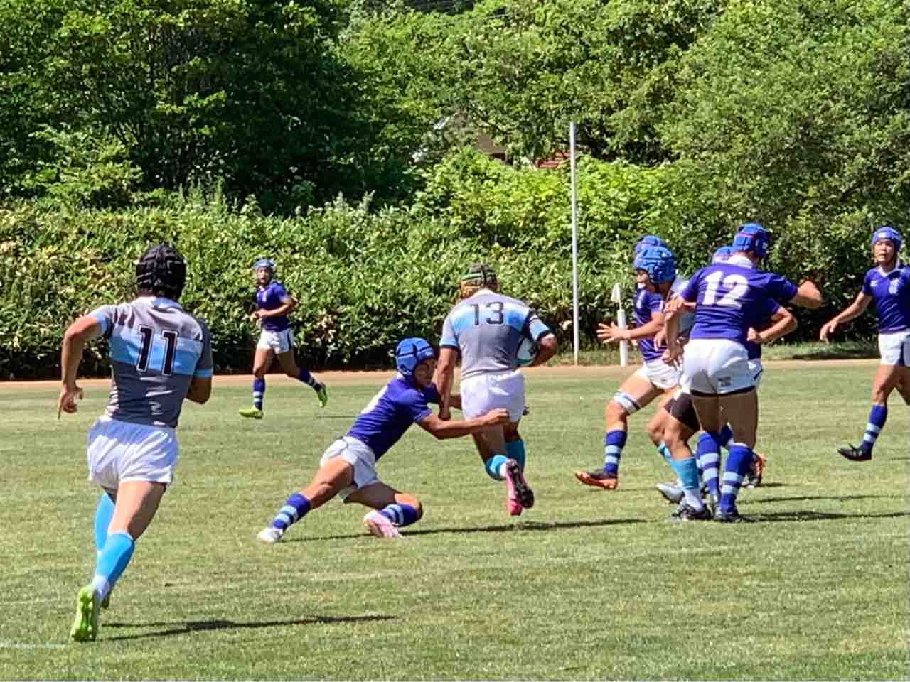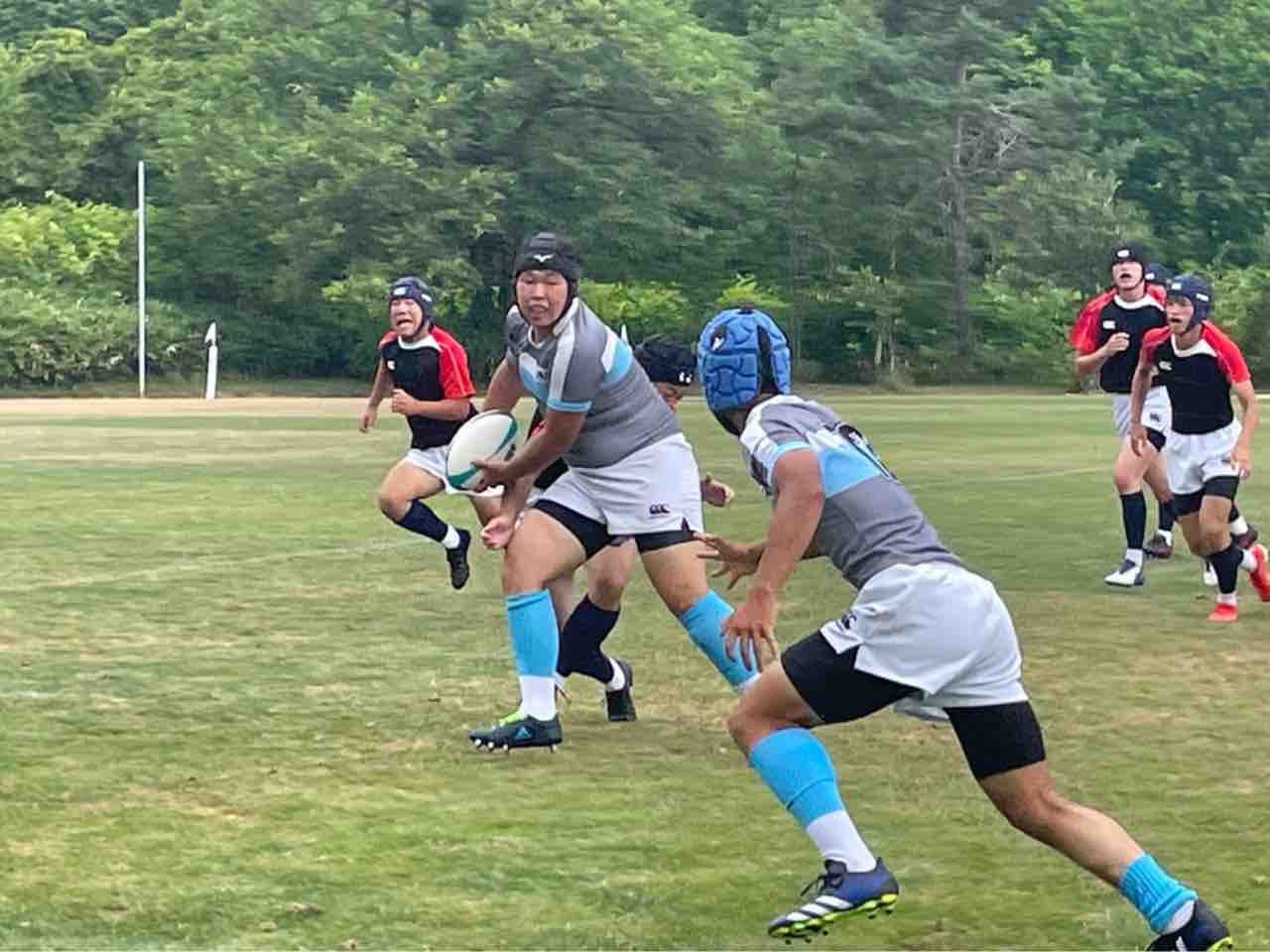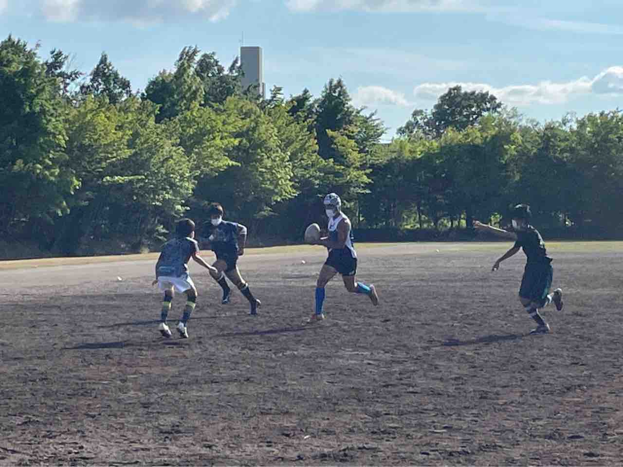 後半3分に大場がトライ。監督の指示通りチームでたたみかけて開始5分以内でトライを取り、自分たちのペースを作ることに成功しました。