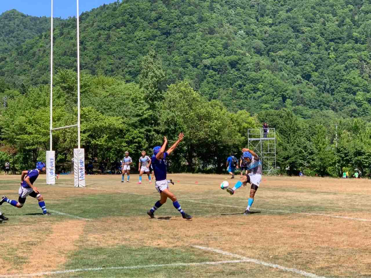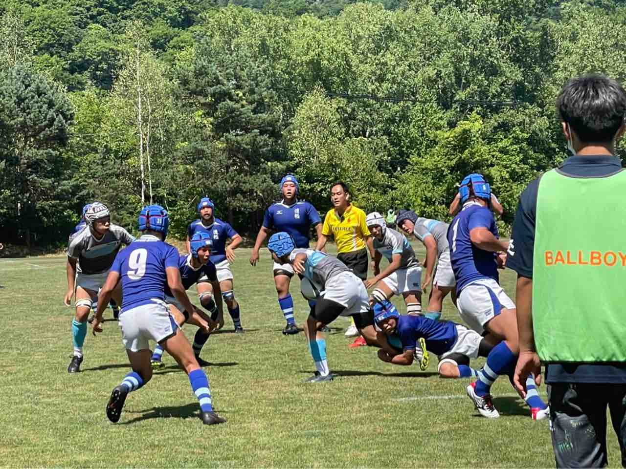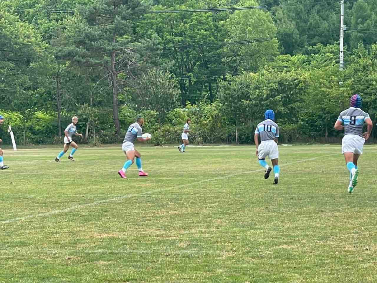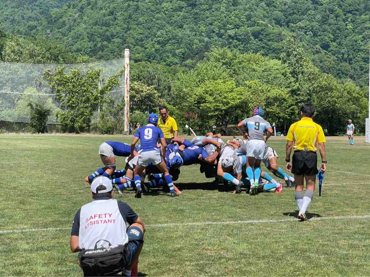 後半3分に大場がトライ。監督の指示通りチームでたたみかけて開始5分以内でトライを取り、自分たちのペースを作ることに成功しました。