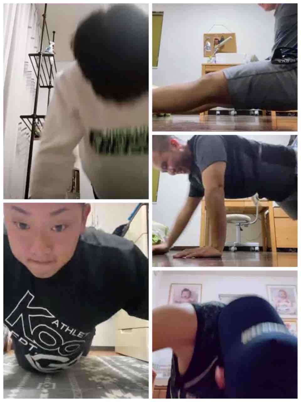 先日と比べお互いを励ます声が多く、フォームも安定しているように思えました。リモートトレーニングだけで満足するのではなく、各自でもトレーニング方法や動画をみて鍛えるようにしましょう。