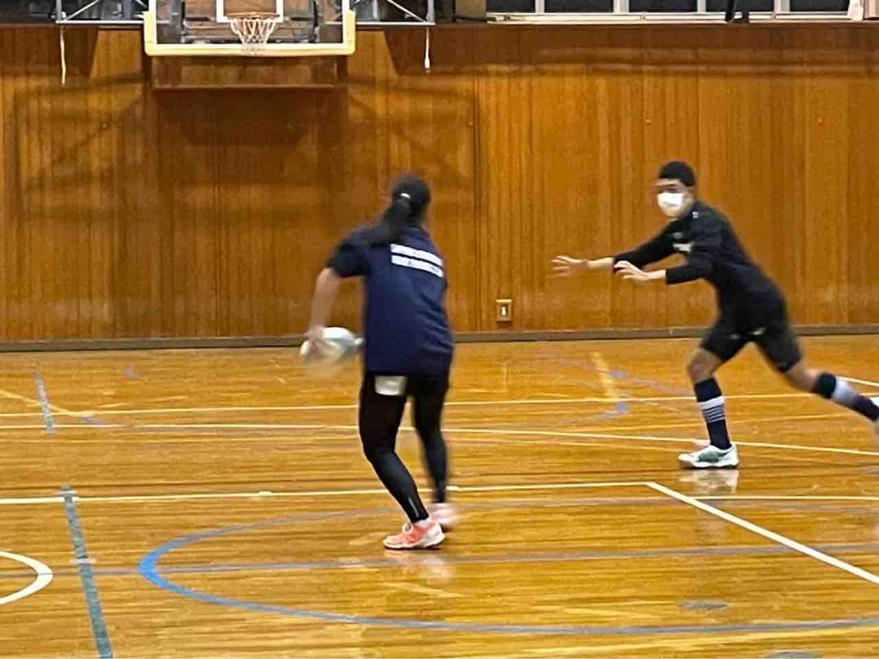 次に、ジョンさんのご指導の元、アタックシェイプの練習を行いました。ボールを貰う時にフラットで貰える位置にスピードを付けて走り込むことを意識しました。また、走り込む時にスペースの使い方も意識出来るようにしましょう。