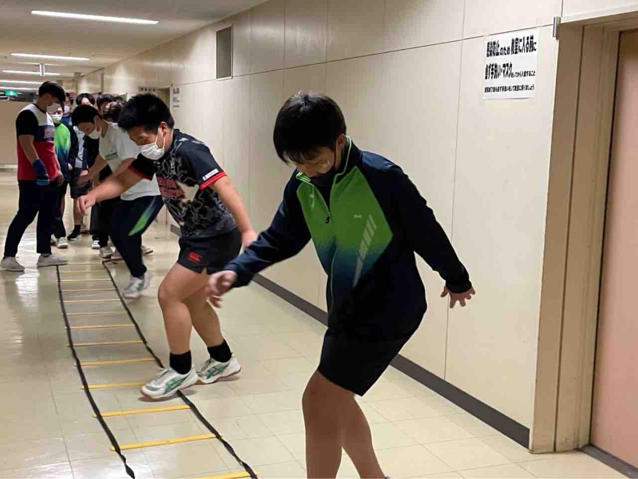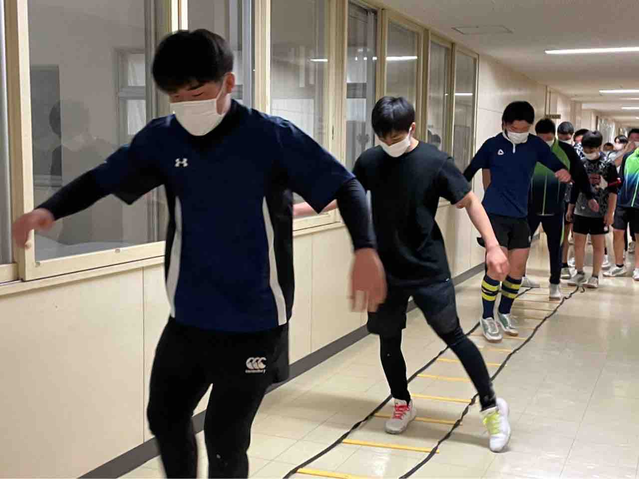 ラダーでは、鼓舞しあって辛いトレーニングもお互い乗り越えていました。その後コンディショニングで筋肉のケアをして今日の練習を終えました。