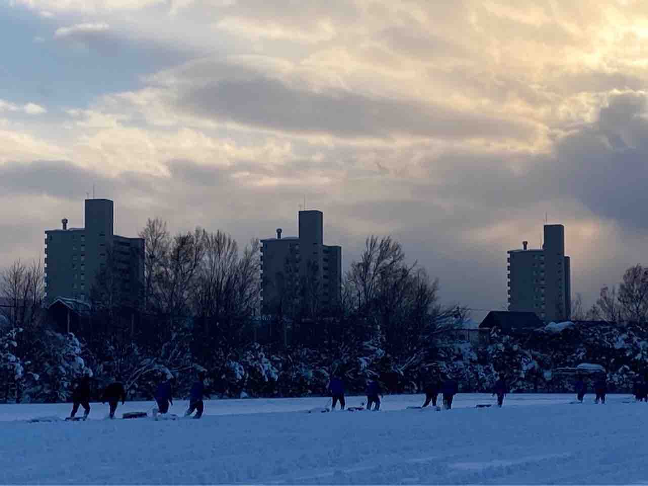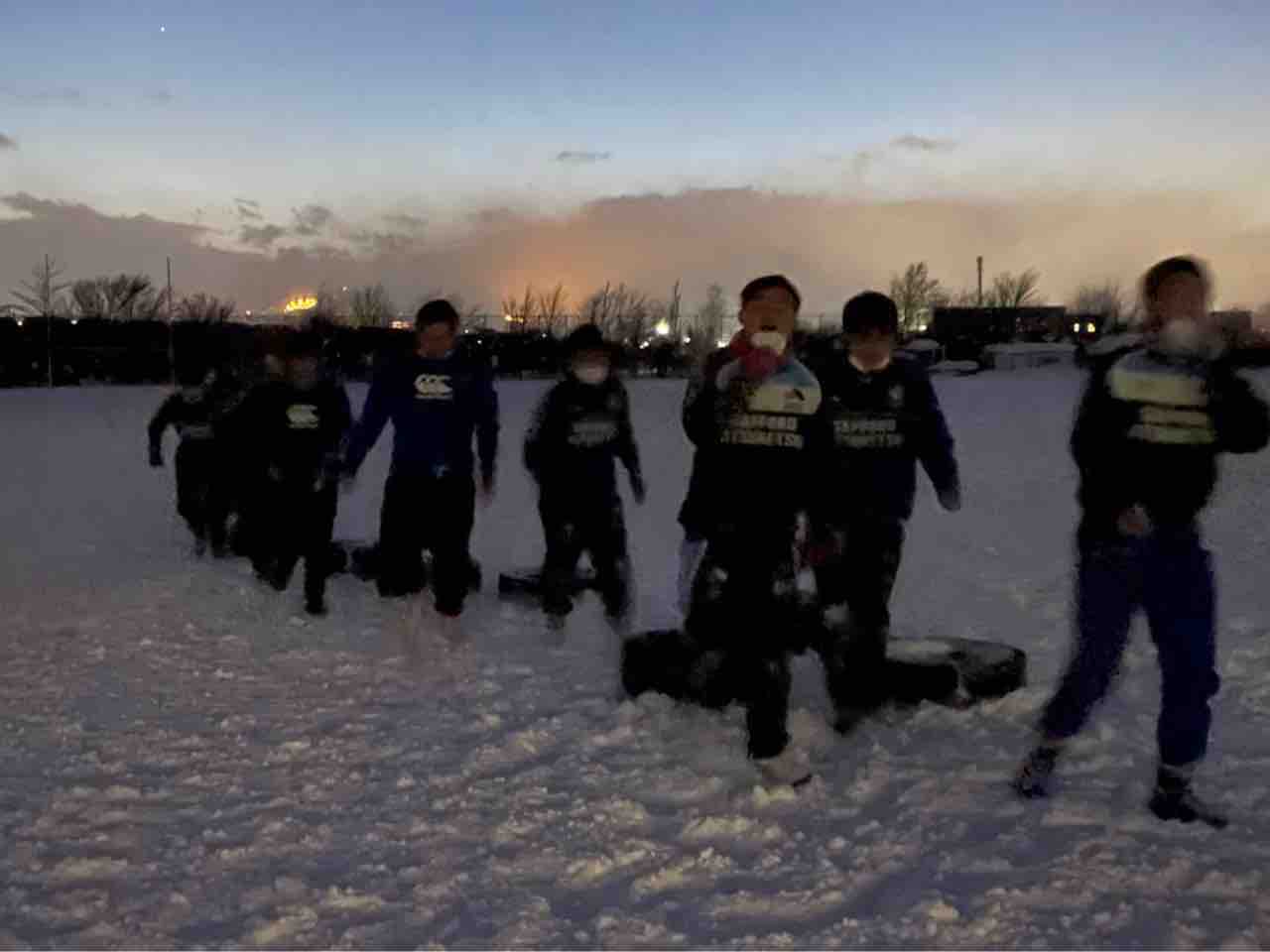 昨日積もった雪をならすためにタイヤ引きをして練習を開始しました。