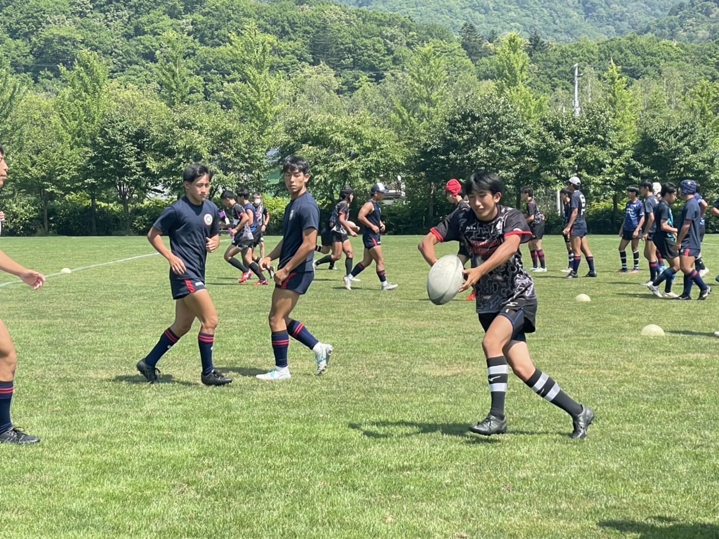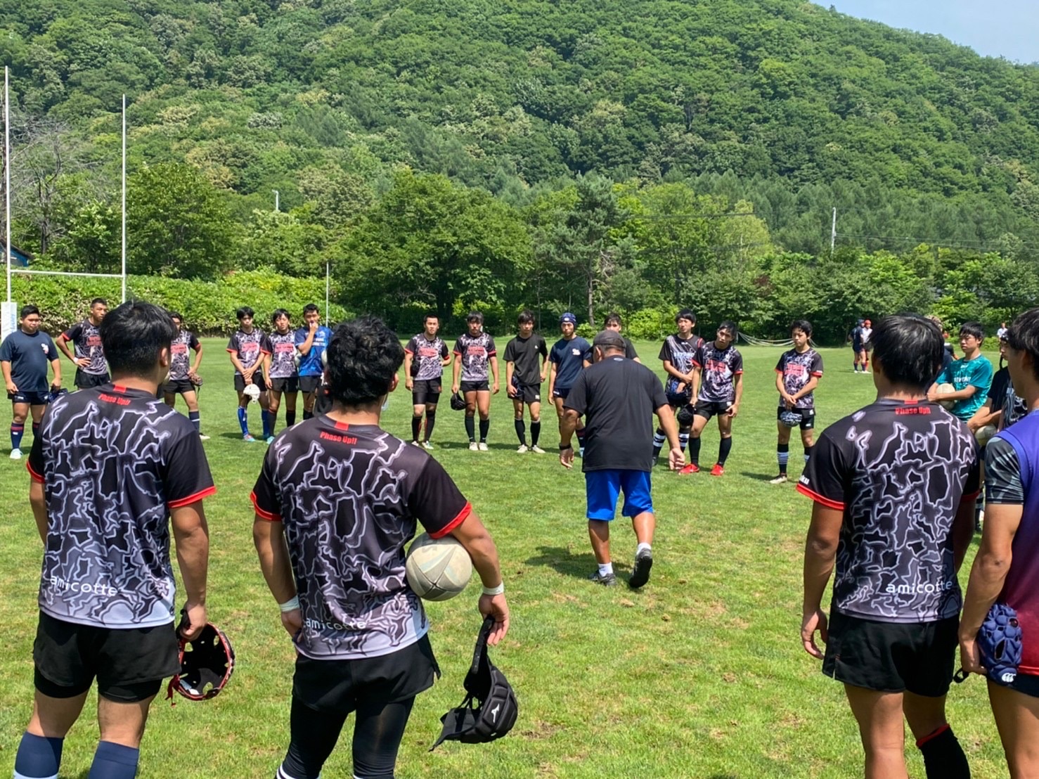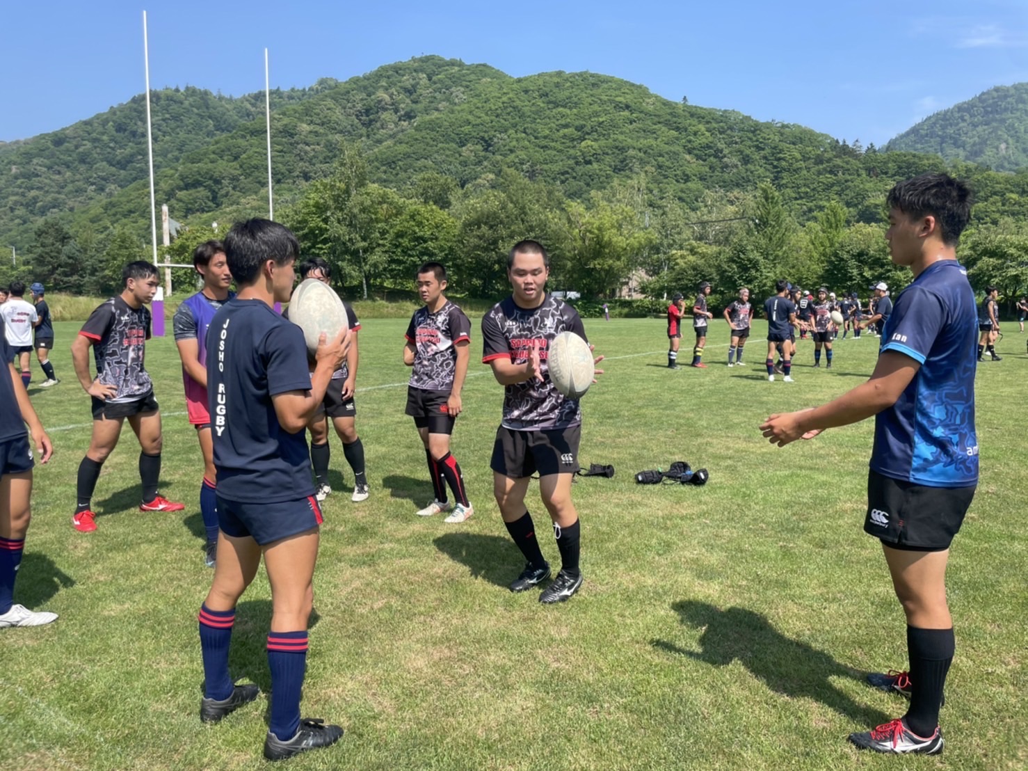定山渓に到着するとすぐに、FW、BKで分かれて確認練習を行った後全体でアップに移りました。
