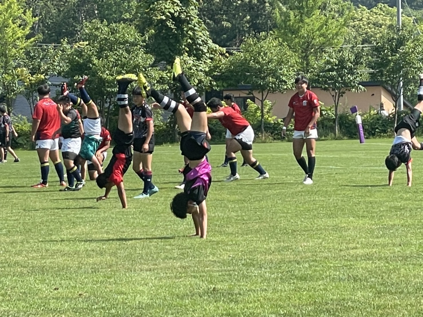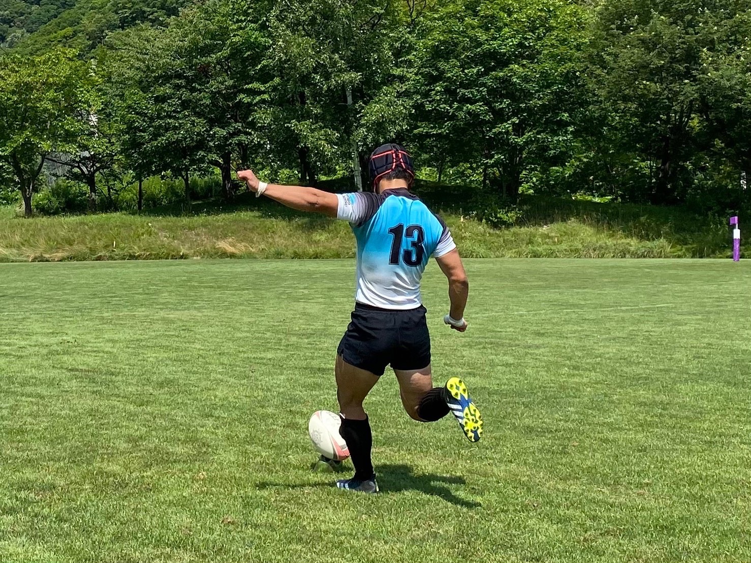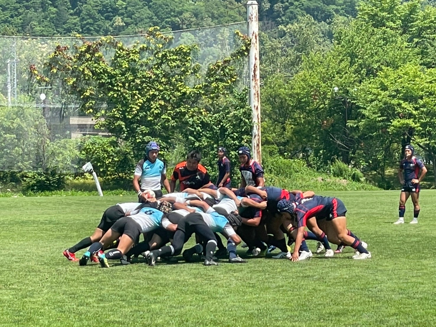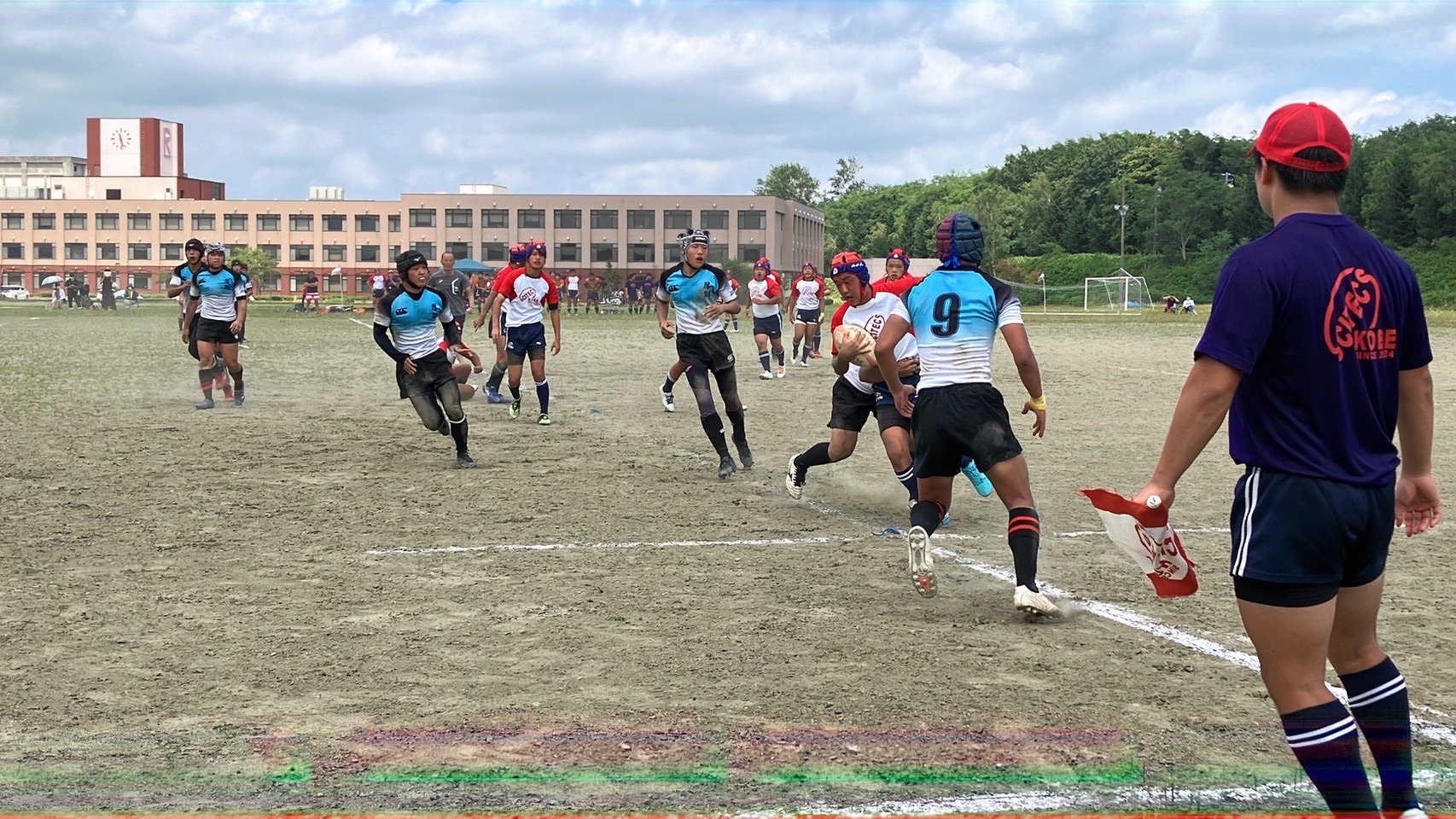 厚別ボールで試合がスタート。低い姿勢でタックルする事を意識していましたが、試合の状況を見ているとどうしても背中を上げてしまい、良いタックルができている選手が少ないように感じました。練習で学んだ事を試合で使えるよう、練習中から意識するようにしましょう。トライラインまで攻め込むも、ミスが発生し、トライを取りきれないなど大事な場面でのミスが目立ちました。勝利しましたが落ち着いて判断し、試合中に自分達で立ち直せるようにしていきましょう。