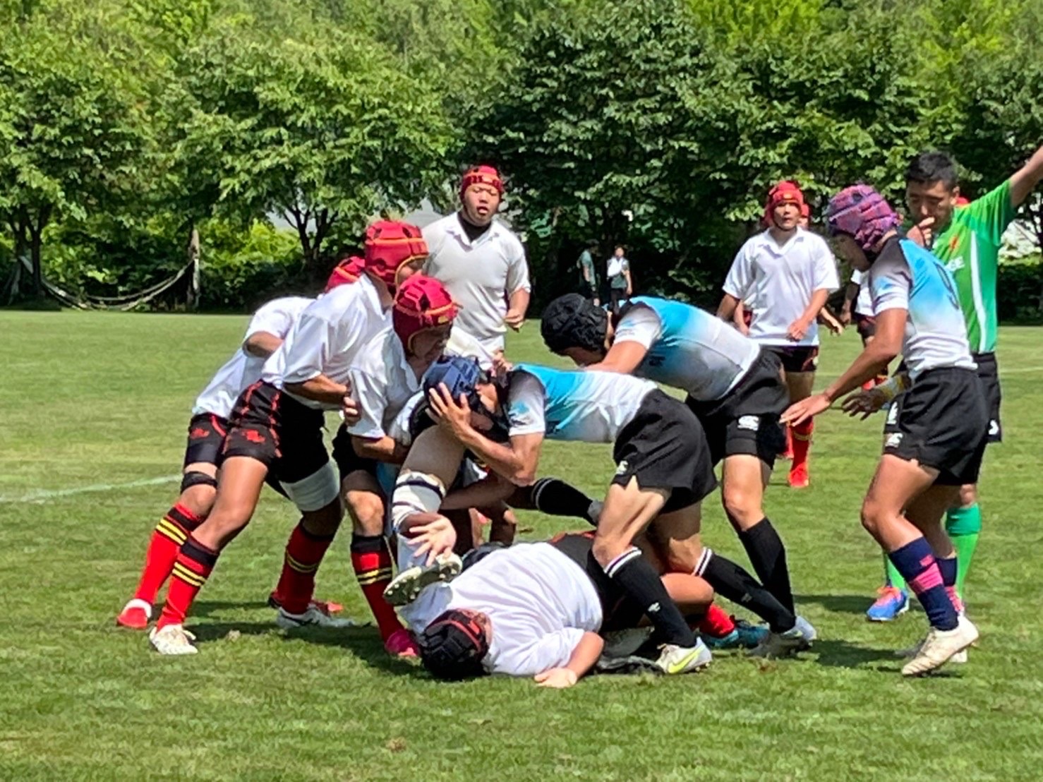 1年生が元気よくラグビーしているのが実に微笑ましく心強い。実は今日は先日のデビュー戦よりも長い時間プレーしました。見るのも勉強、頭にイメージがないと体で表現はできないものです。見る機会も大切にしてください。そして今足りないスキルは今のうちに身につけてください。