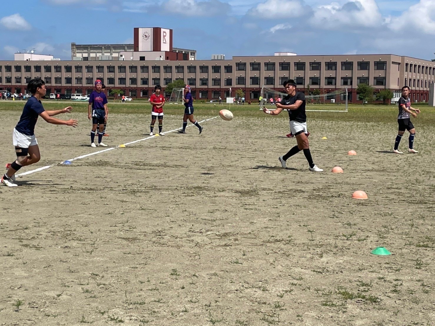 クイックパスでは、タイミングと位置コールが大事というのを常翔の選手方から教えていただきました。溜めを意識し、ハンズアップを忘れずに行うことができました。堀先生からはドリルで行わないようお話がありました。