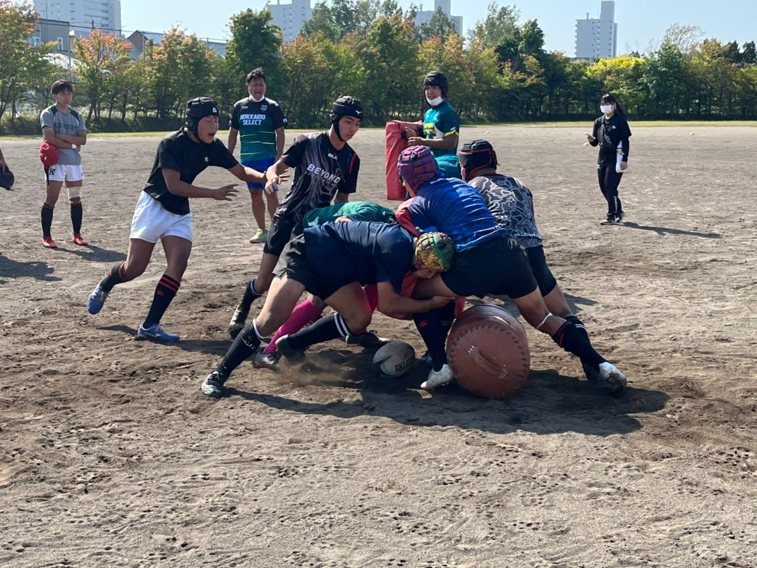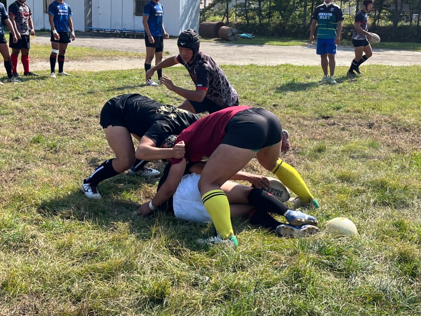 次にブレイクダウンのスキルと判断練習を行いました。 頭を下げたり自立できていないなどの危険な姿勢でのプレーや勢いに任せていい加減なプレーをしている選手には先生から厳しく指導がありました。ブレイクダウンでのレフリーからのコールの意味、気をつけなければならないことを踏まえて、目指すべきプレーに向けて頑張りました。