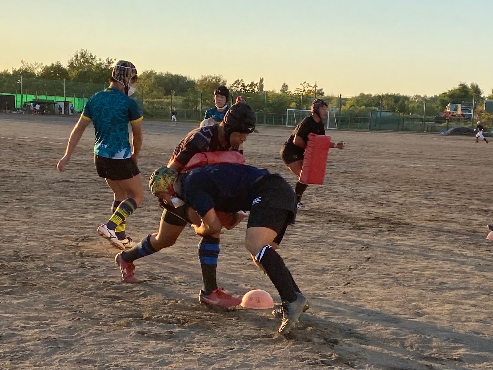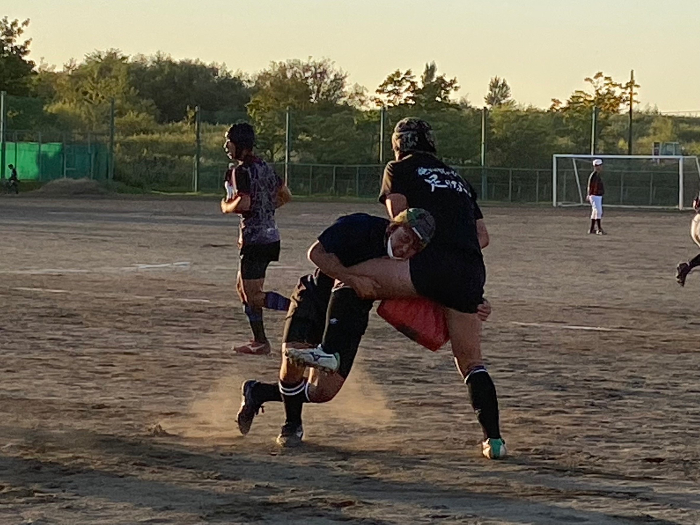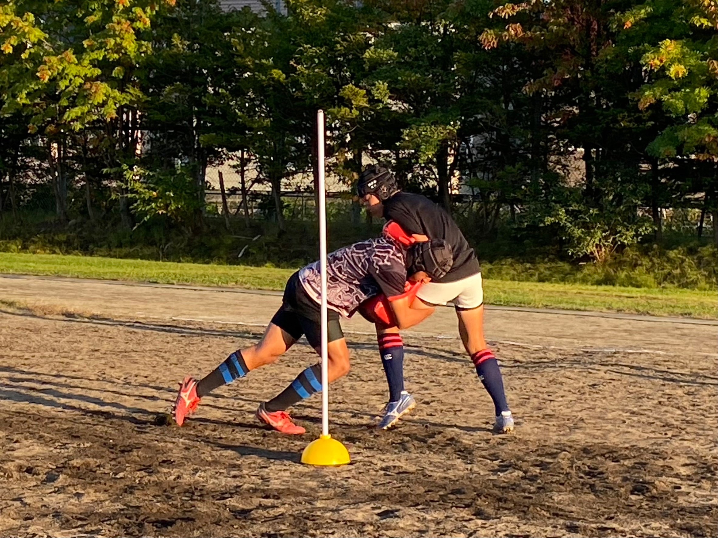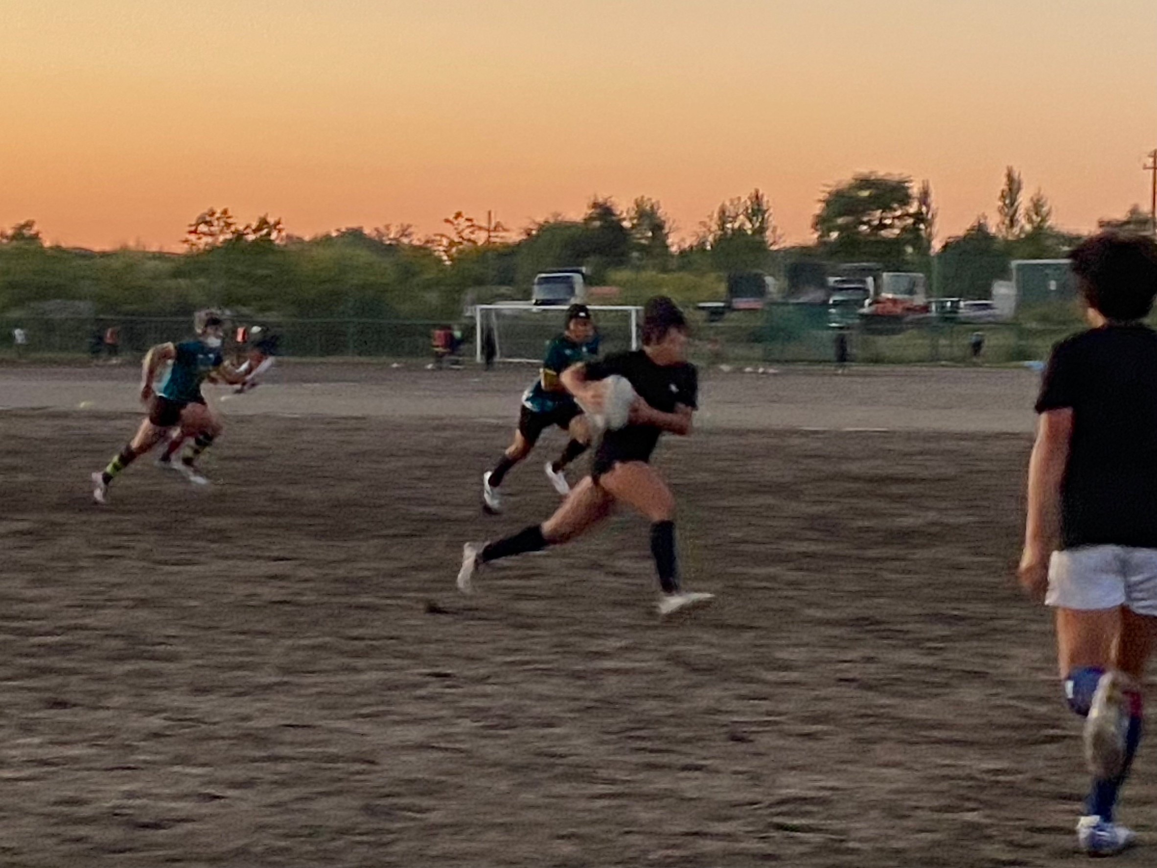 次に1対1、レスリングタックル、グリッドタックル、アタック練習を行いました。時々気が抜けて目線が高くなっているので常にロータックルを意識しましょう。また、日没が早くなっていることに合わせて全体的にスピードを重視して取り組めていました。