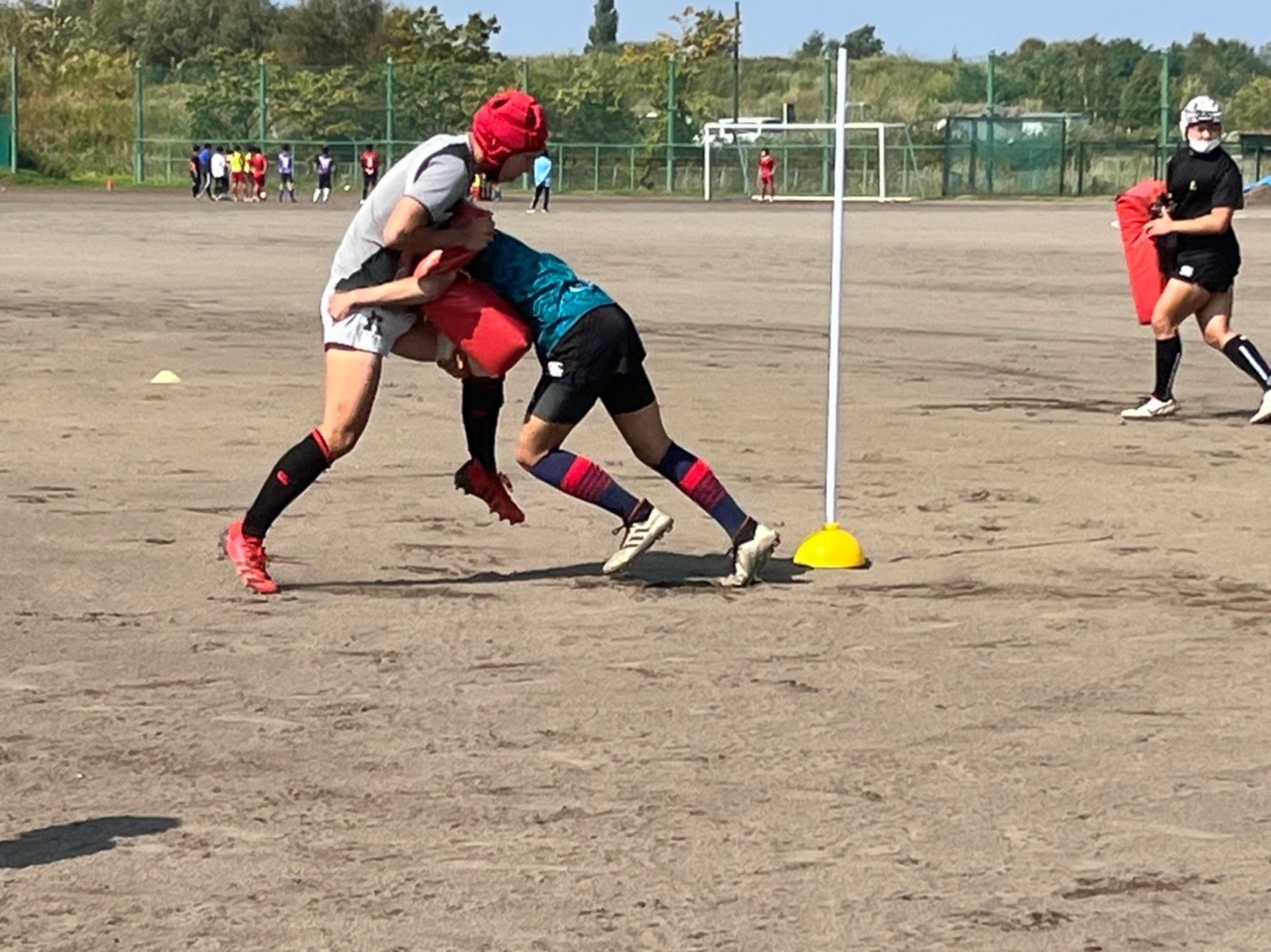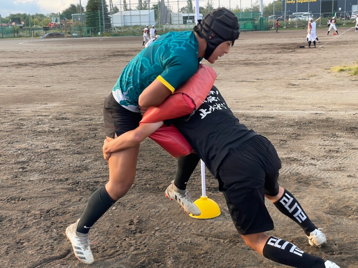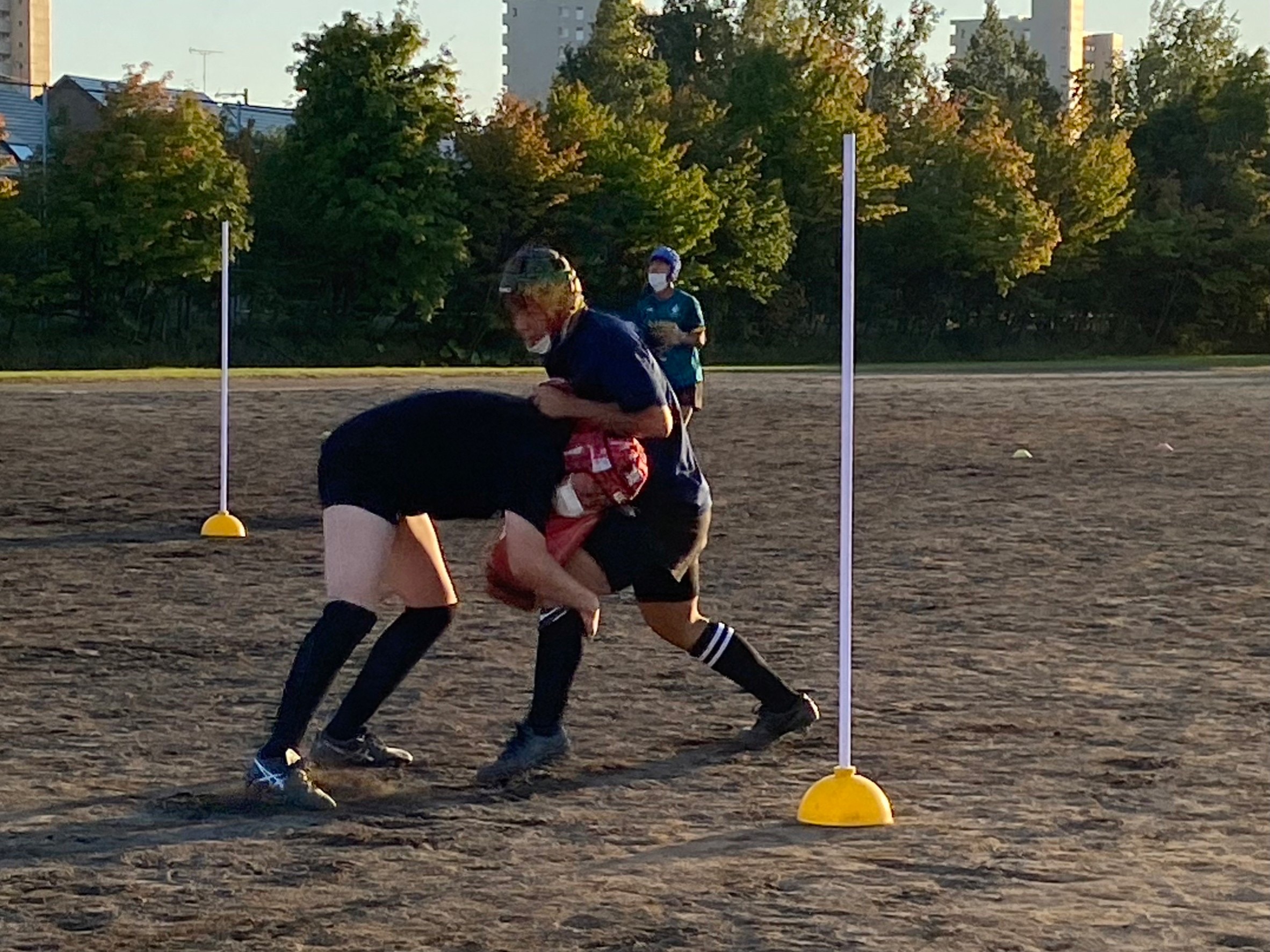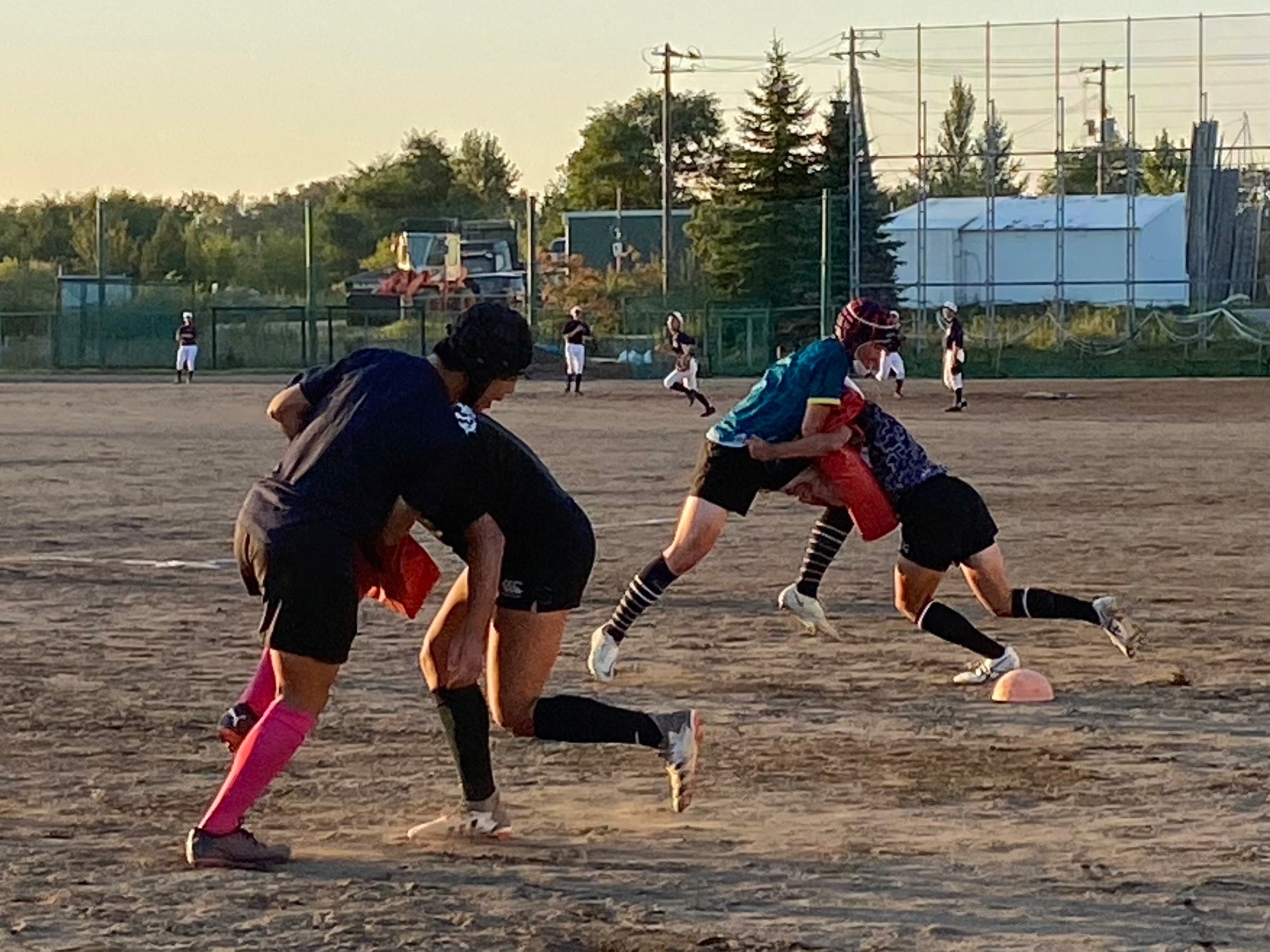 次に1対1、レスリングタックル、グリッドタックル、アタック練習を行いました。時々気が抜けて目線が高くなっているので常にロータックルを意識しましょう。また、日没が早くなっていることに合わせて全体的にスピードを重視して取り組めていました。