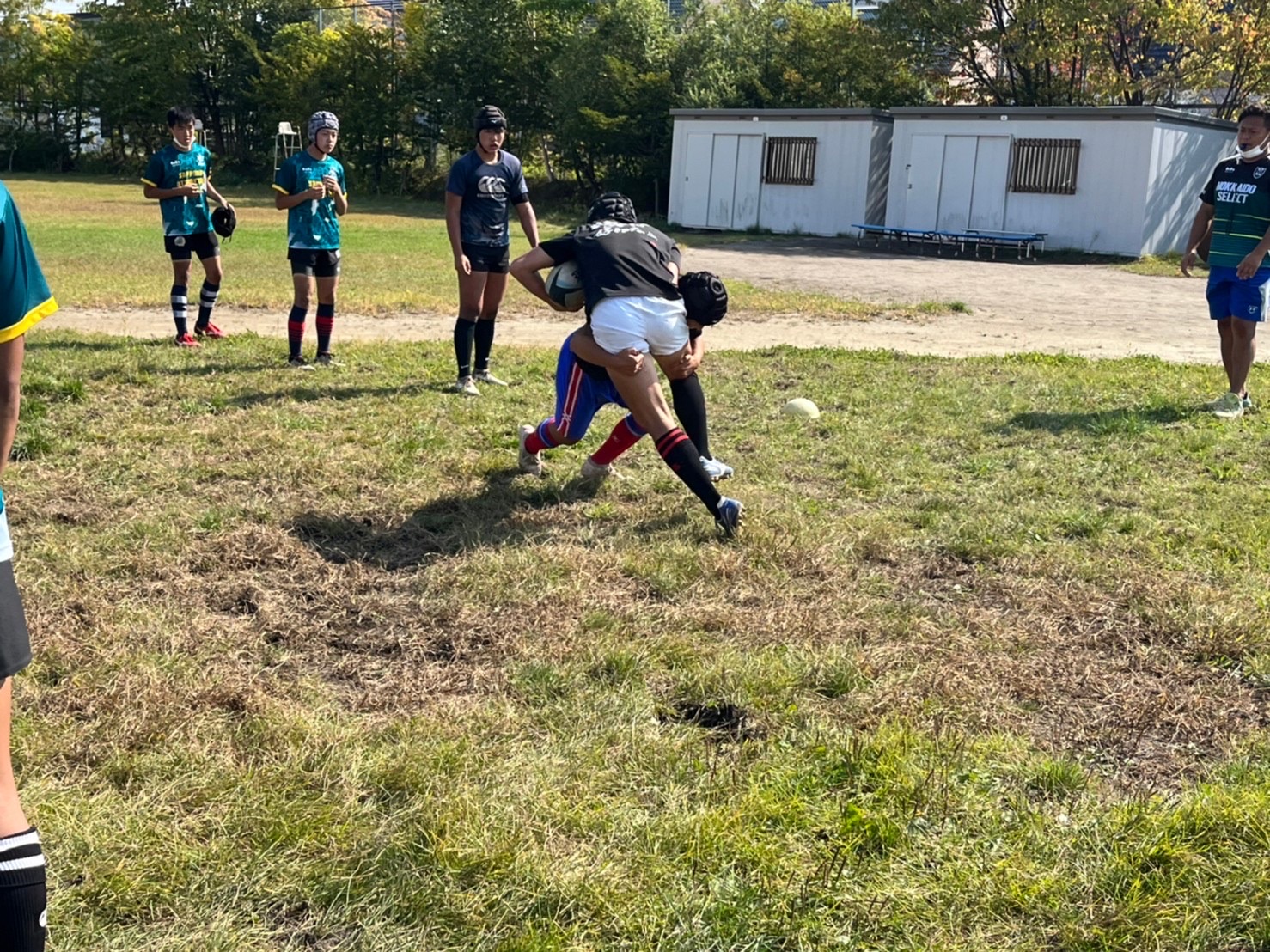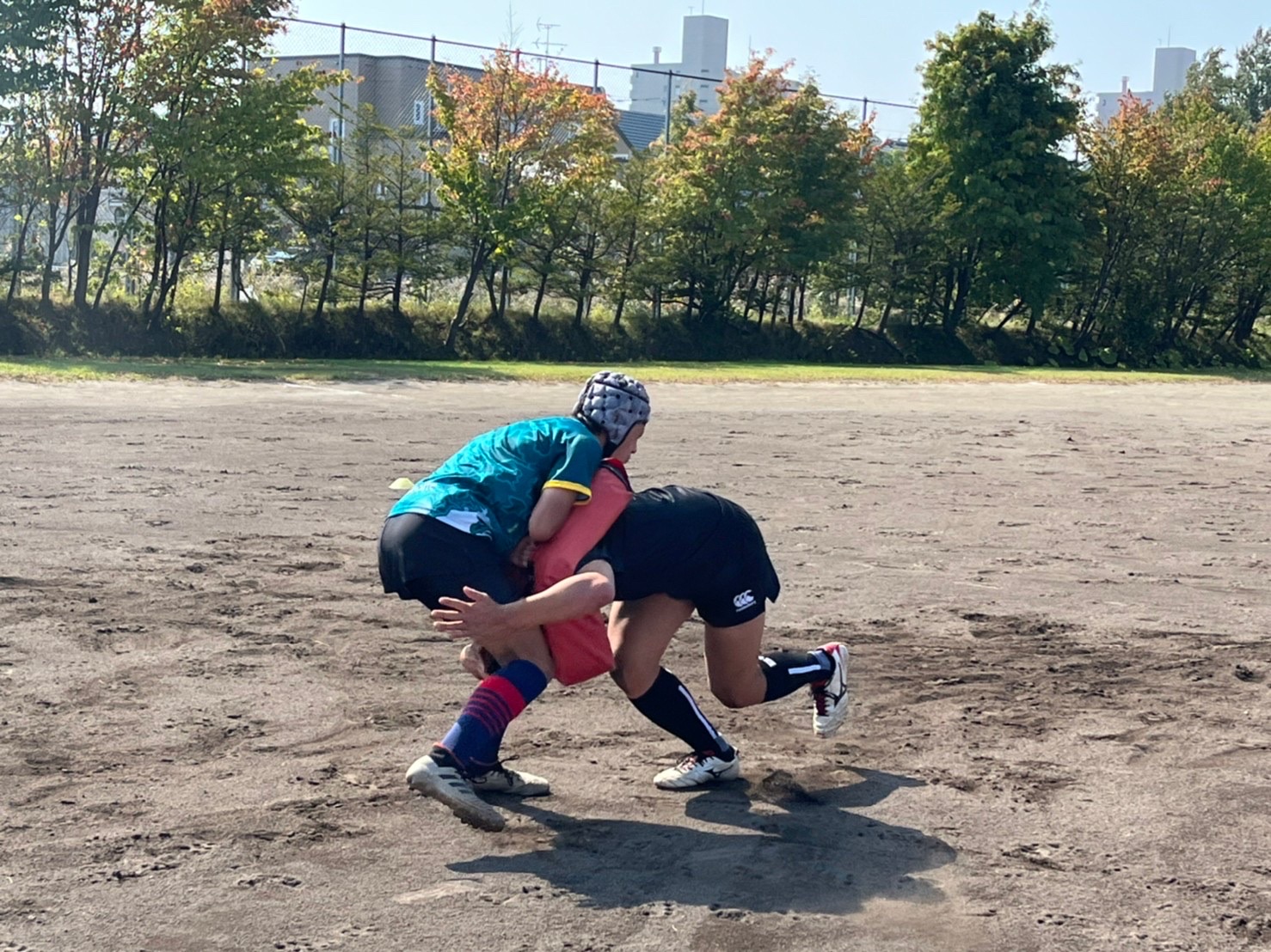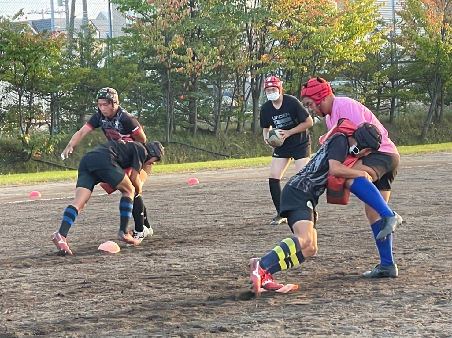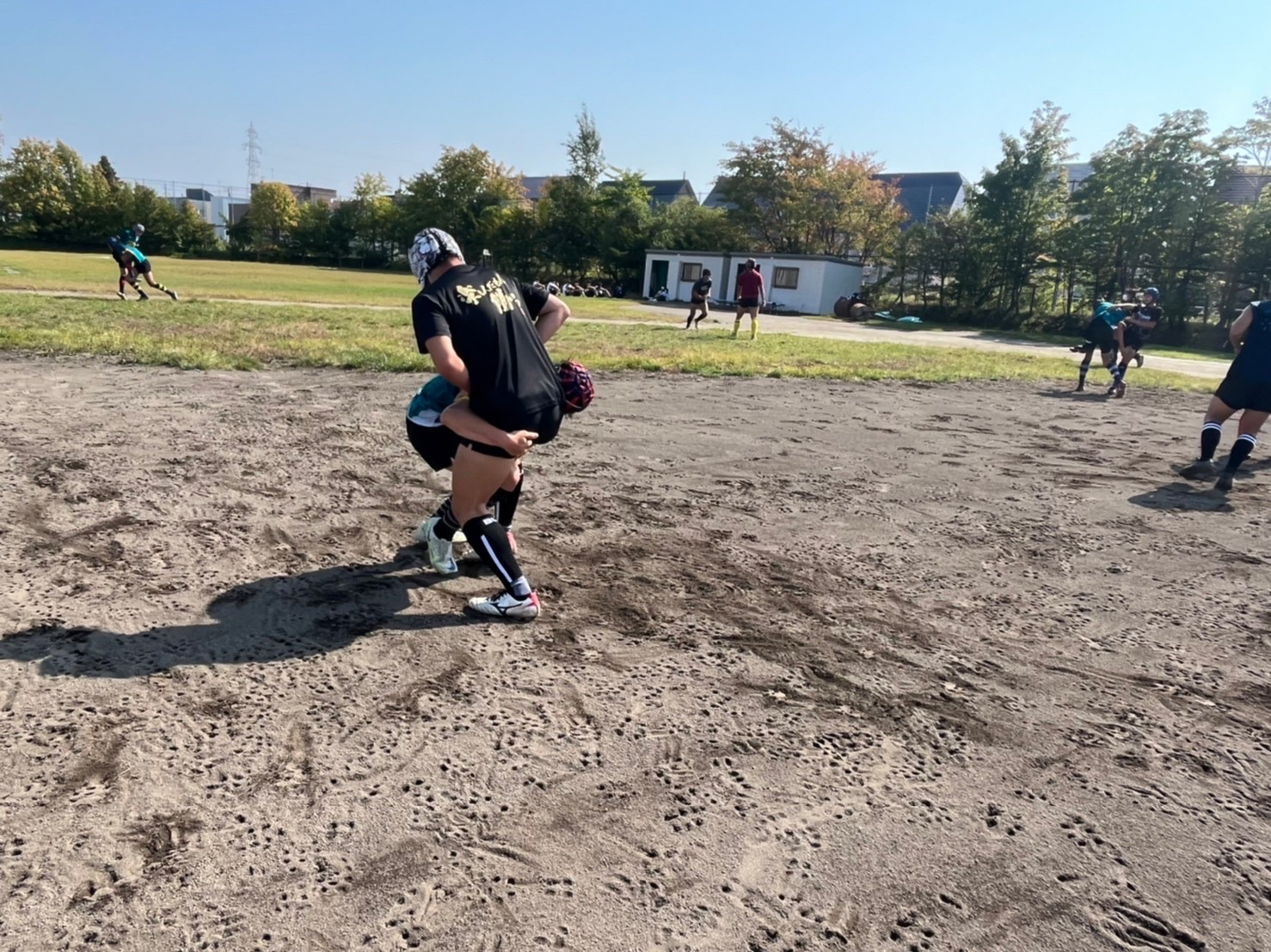 次に1対1、レスリングタックル、グリッドタックル、アタック練習を行いました。時々気が抜けて目線が高くなっているので常にロータックルを意識しましょう。また、日没が早くなっていることに合わせて全体的にスピードを重視して取り組めていました。