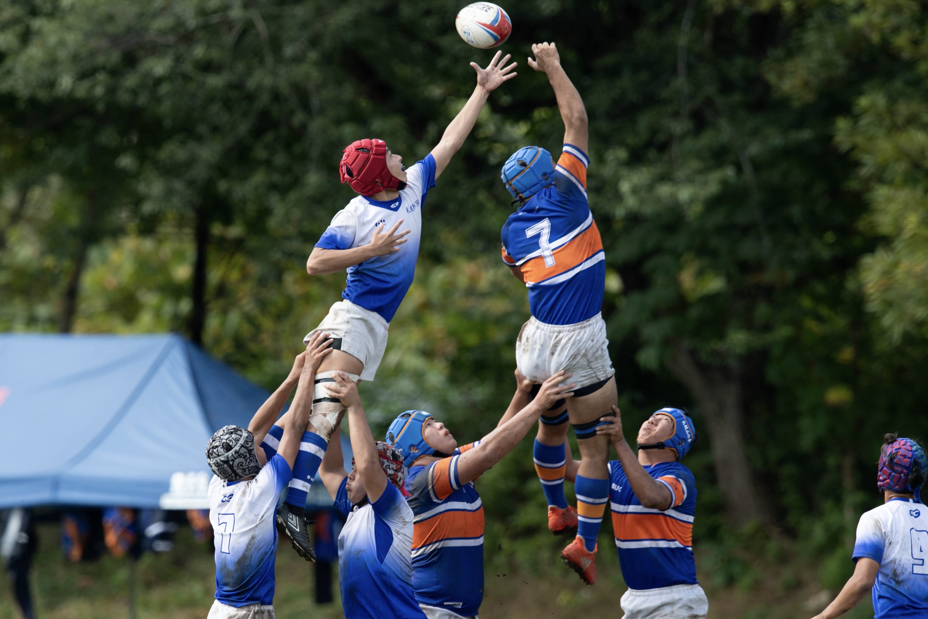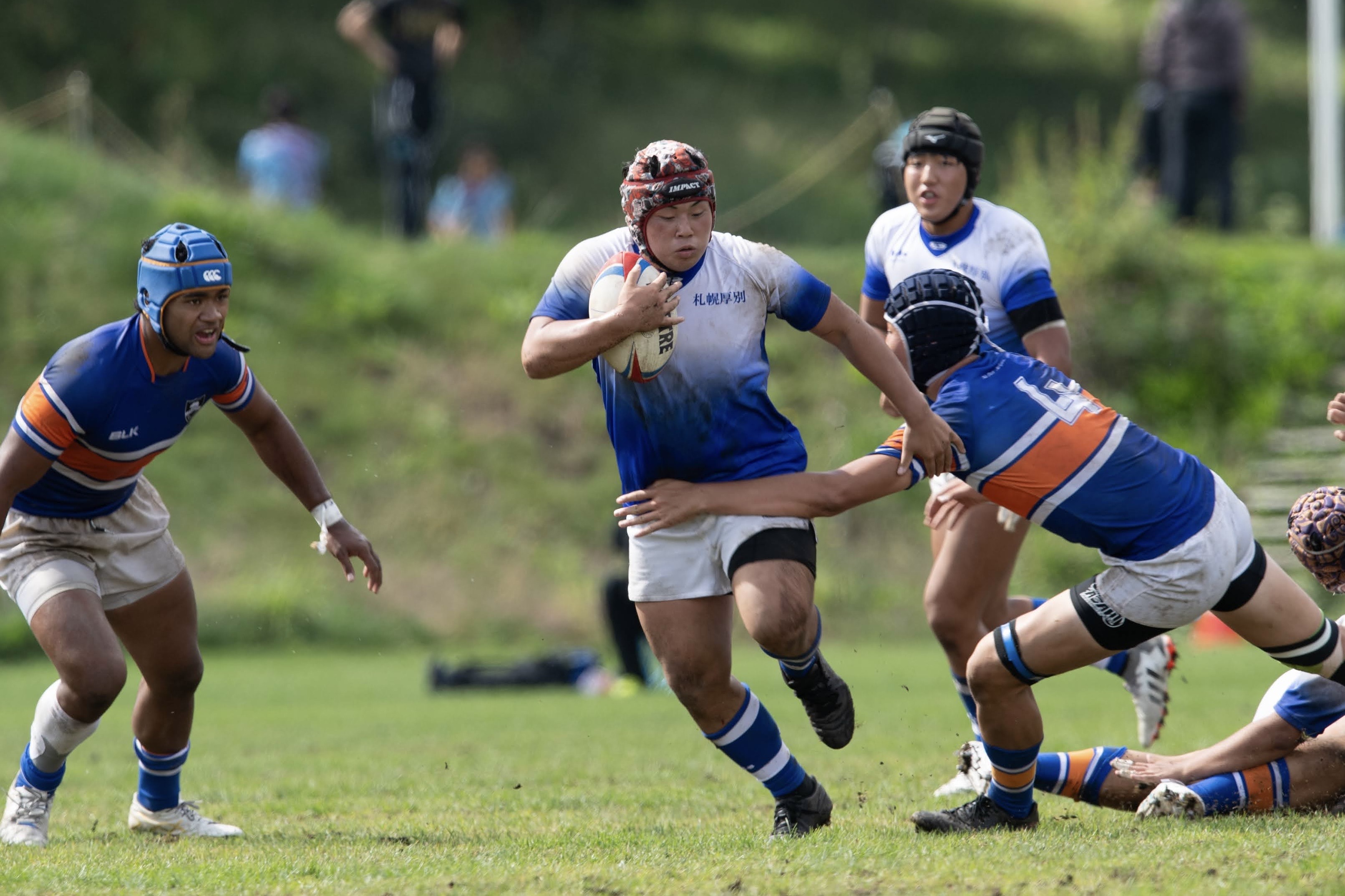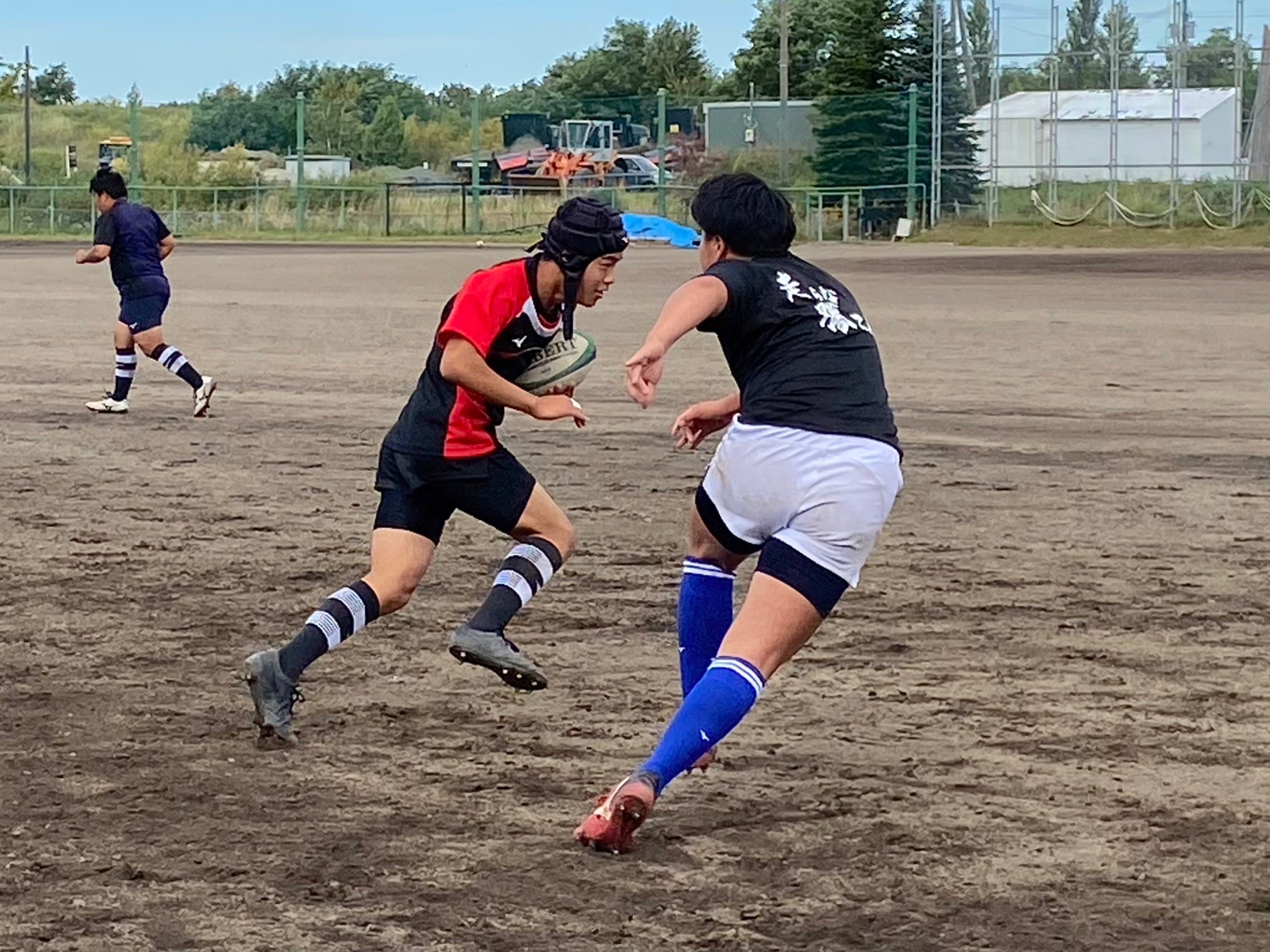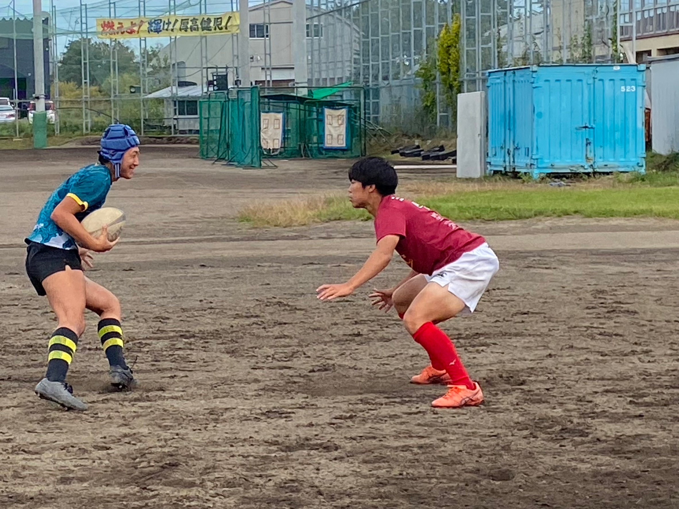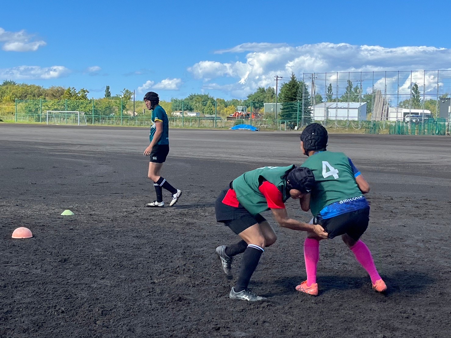次にパドリングタックル、3列アップを行いました。日頃からロータックルを意識するよう指摘されていたので、素早く低姿勢に入ることが出来ていました。相手が構えてない時間にどれだけ前進し仕留められるかが鍵となりました。