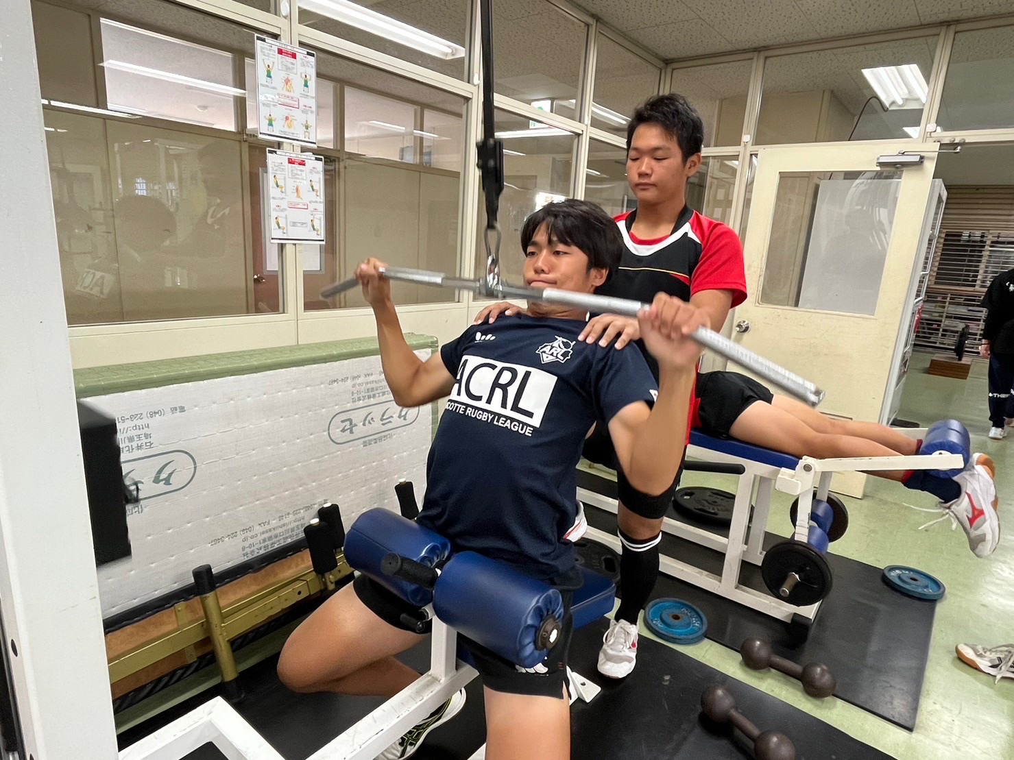 SCでは、ウエイトの数値以外にも体脂肪率などを測り、体重管理においての課題が見つかった人も多く見られました。体重を増やさなければいけないのか、キープするべきなのかを各々がしっかりと自覚し、食事の摂り方に気をつけていきましょう。測定が終わった人から、トレーニングに移りました。