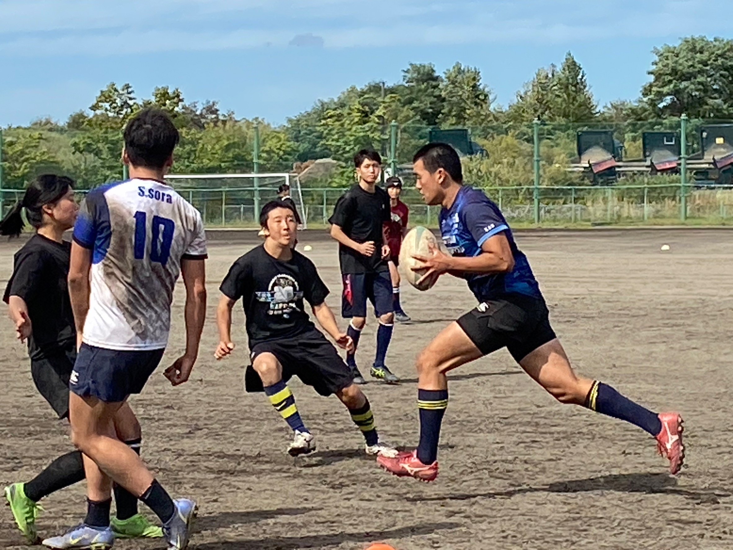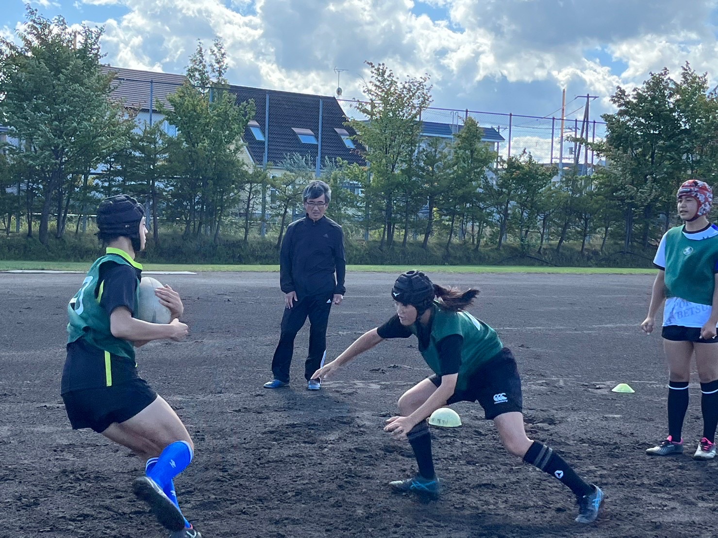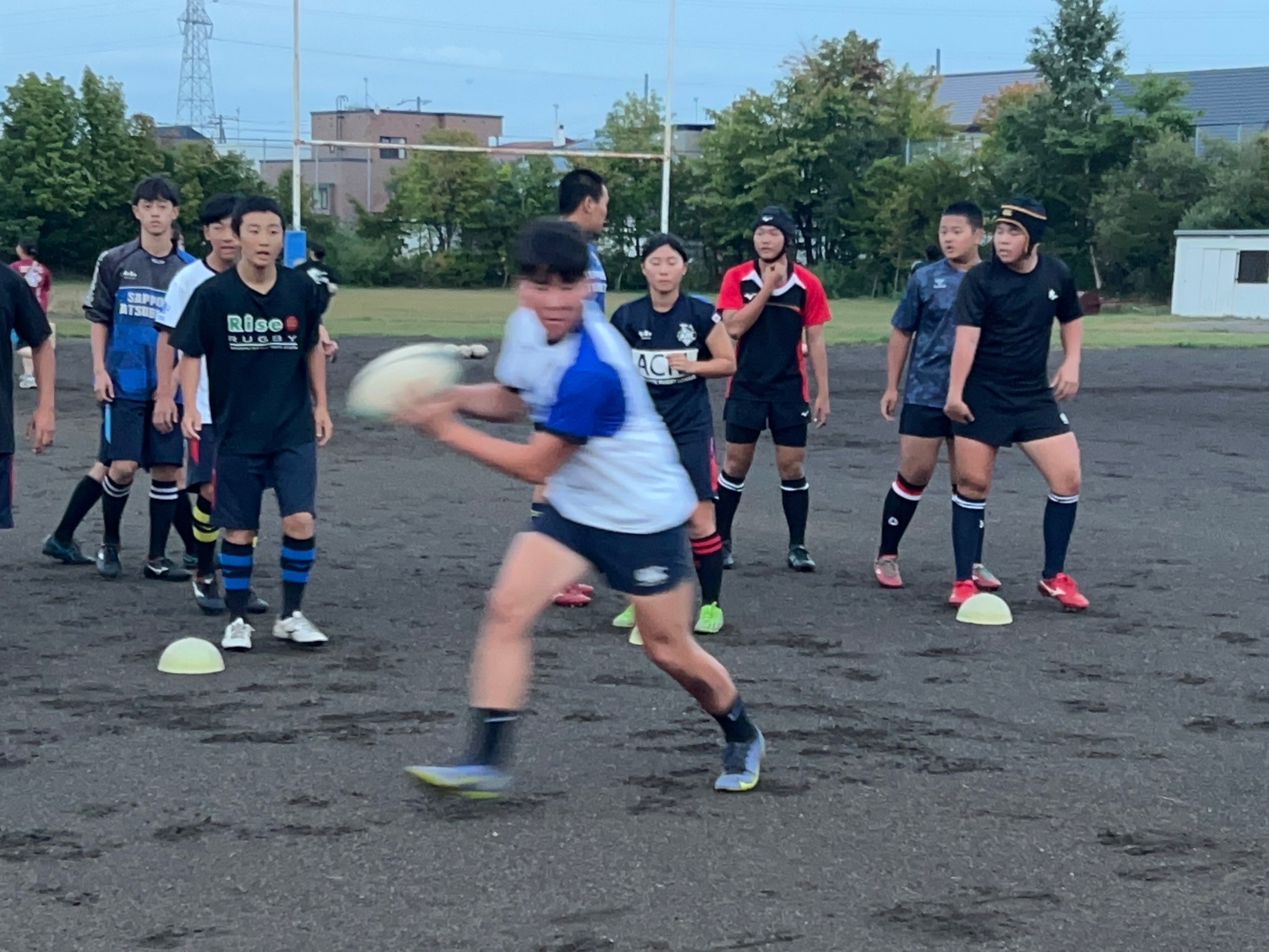 その後3チームに分かれて7人制ホールドゲームを行いました。明日札幌ドームで行われる高体連全道の前座試合に備えて、女子選手の為の壮行ゲームとなりました。ポジションが変更されていてもコミュニケーションを取り、不十分な場所をカバー出来ていたと所もありますが、フィットネスの足りない選手のところでディフェンスに隙が多く見られ独走トライを許すなど、個人のプレーに甘くなっていたので真剣に取り組みましょう。