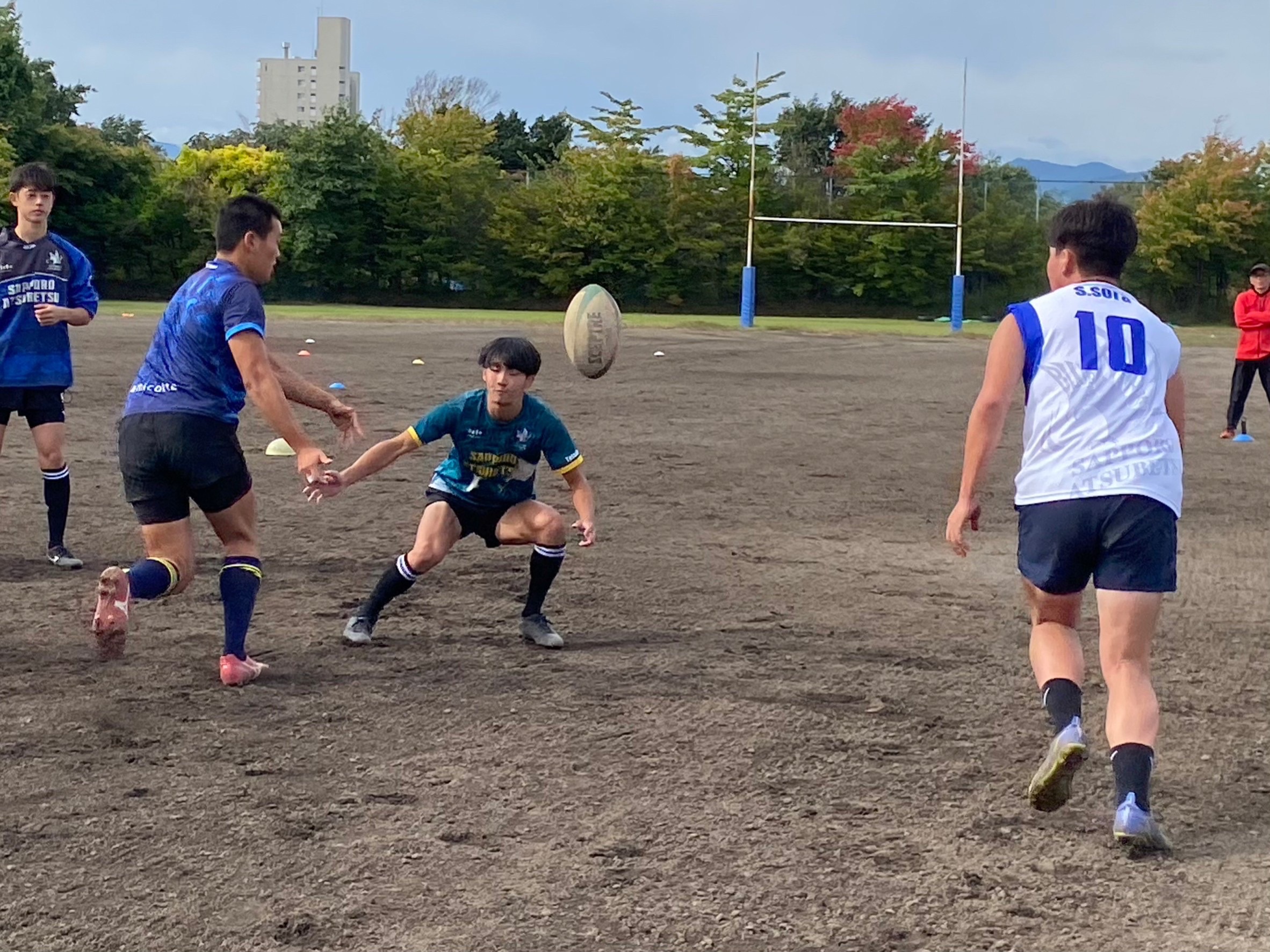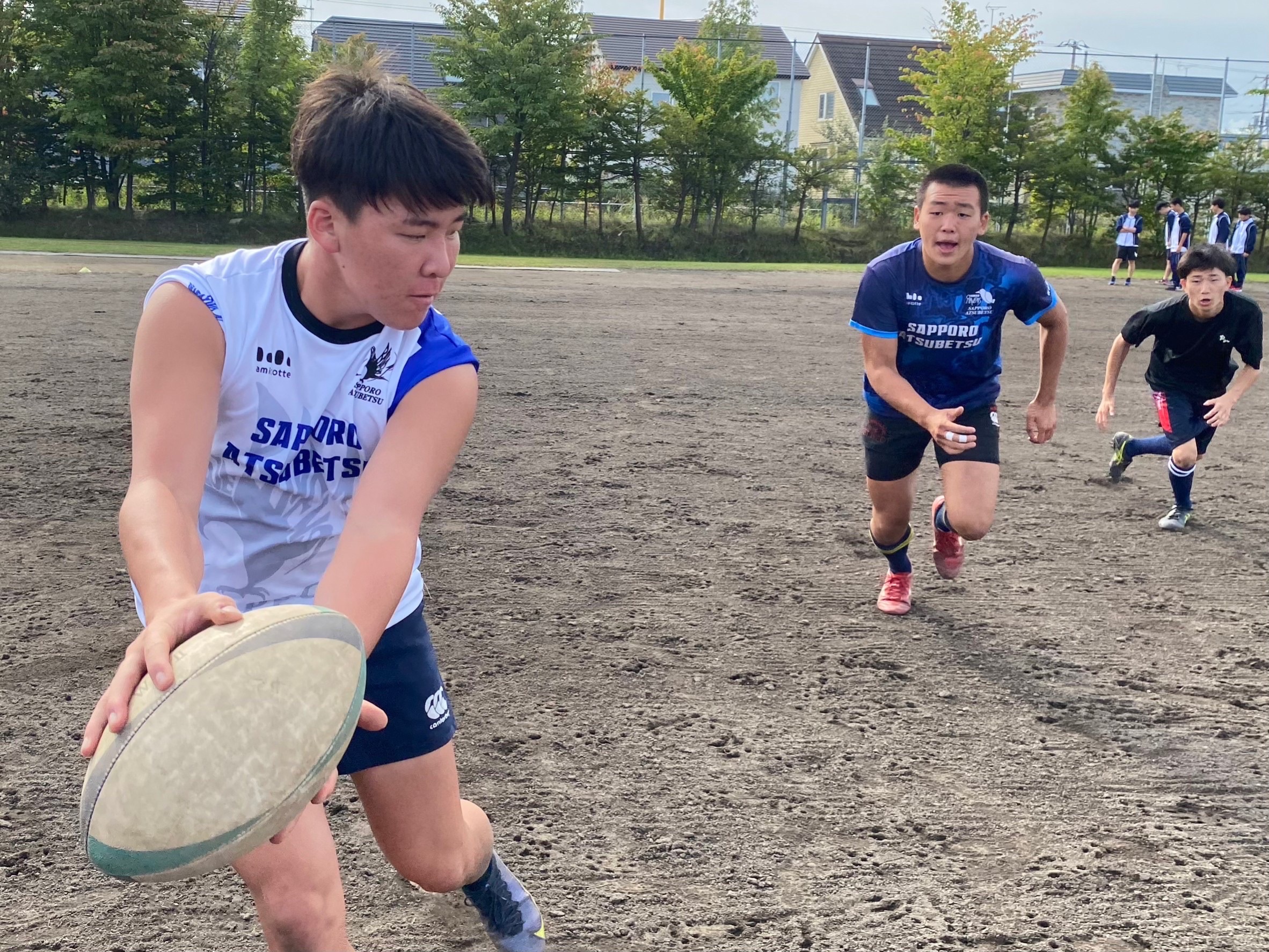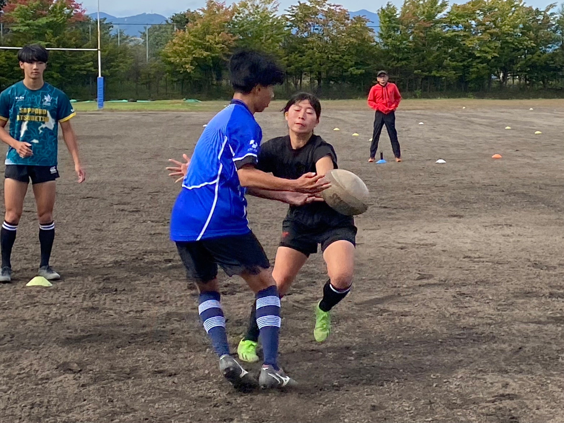 その後3チームに分かれて7人制ホールドゲームを行いました。明日札幌ドームで行われる高体連全道の前座試合に備えて、女子選手の為の壮行ゲームとなりました。ポジションが変更されていてもコミュニケーションを取り、不十分な場所をカバー出来ていたと所もありますが、フィットネスの足りない選手のところでディフェンスに隙が多く見られ独走トライを許すなど、個人のプレーに甘くなっていたので真剣に取り組みましょう。
