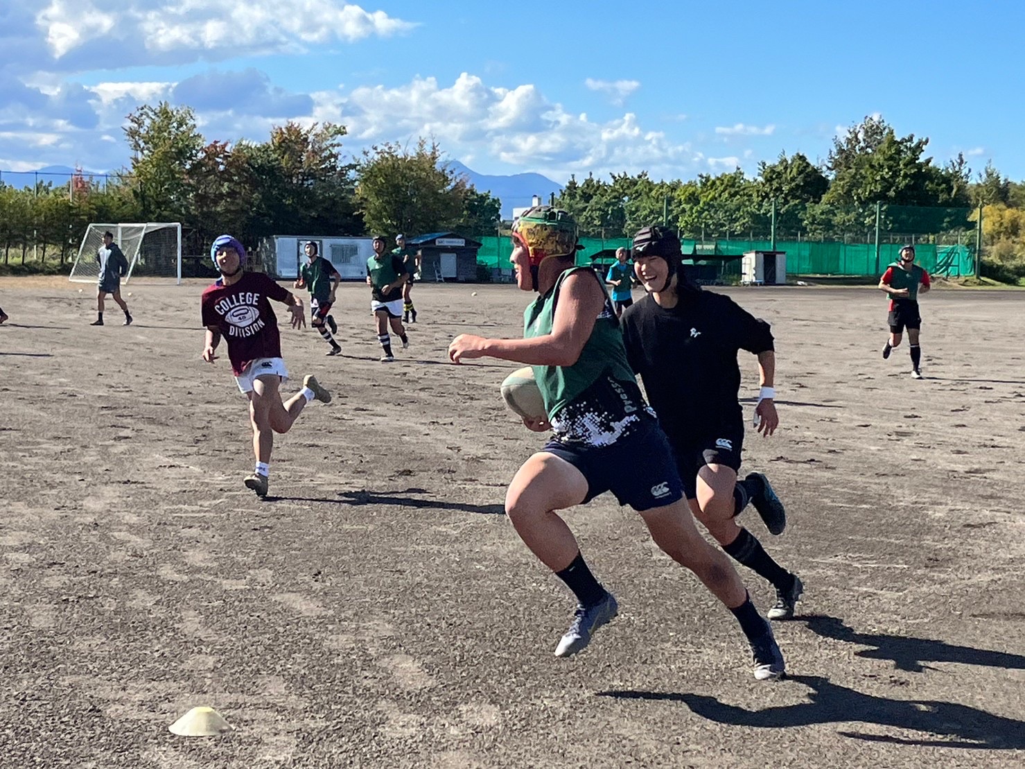 最後にセブンズを行いました。男子選手は人数が少なく責任の所在が大きい中でどのようにプレー出来るかが試されました。また、女子選手は自分たちの試合に向けて力を発揮できるよう取り組みました。セブンズならではの課題が見つかりました。15人制でも活かせるプレーは継続していきましょう。