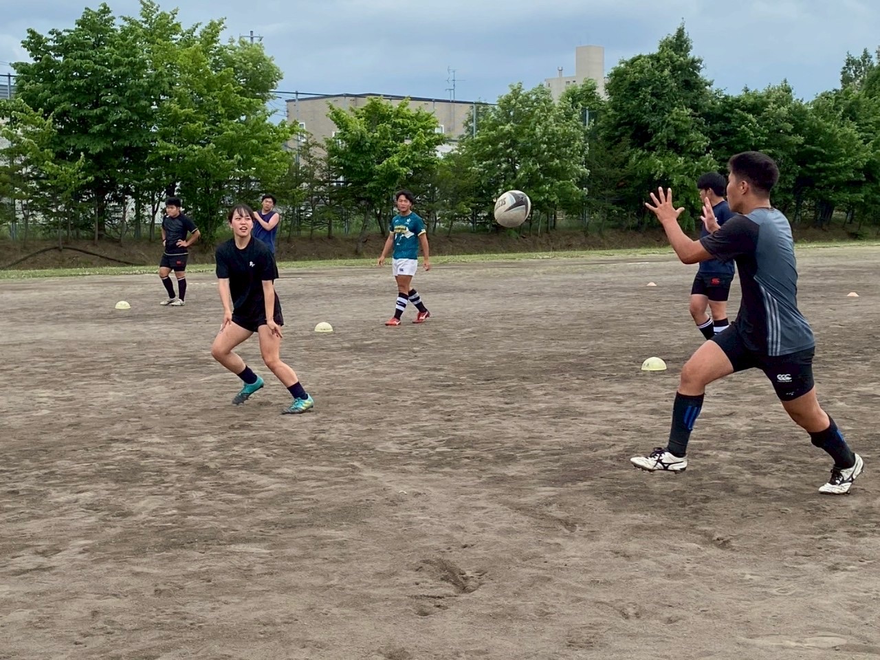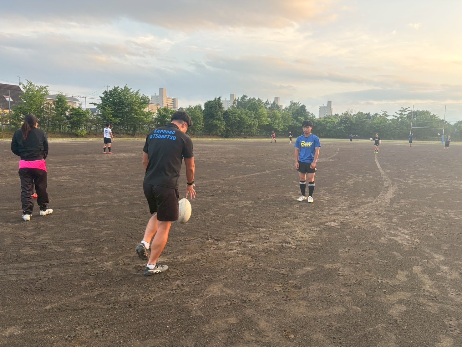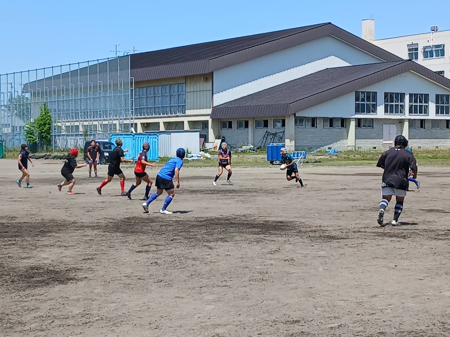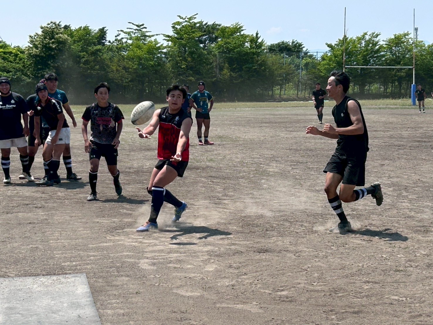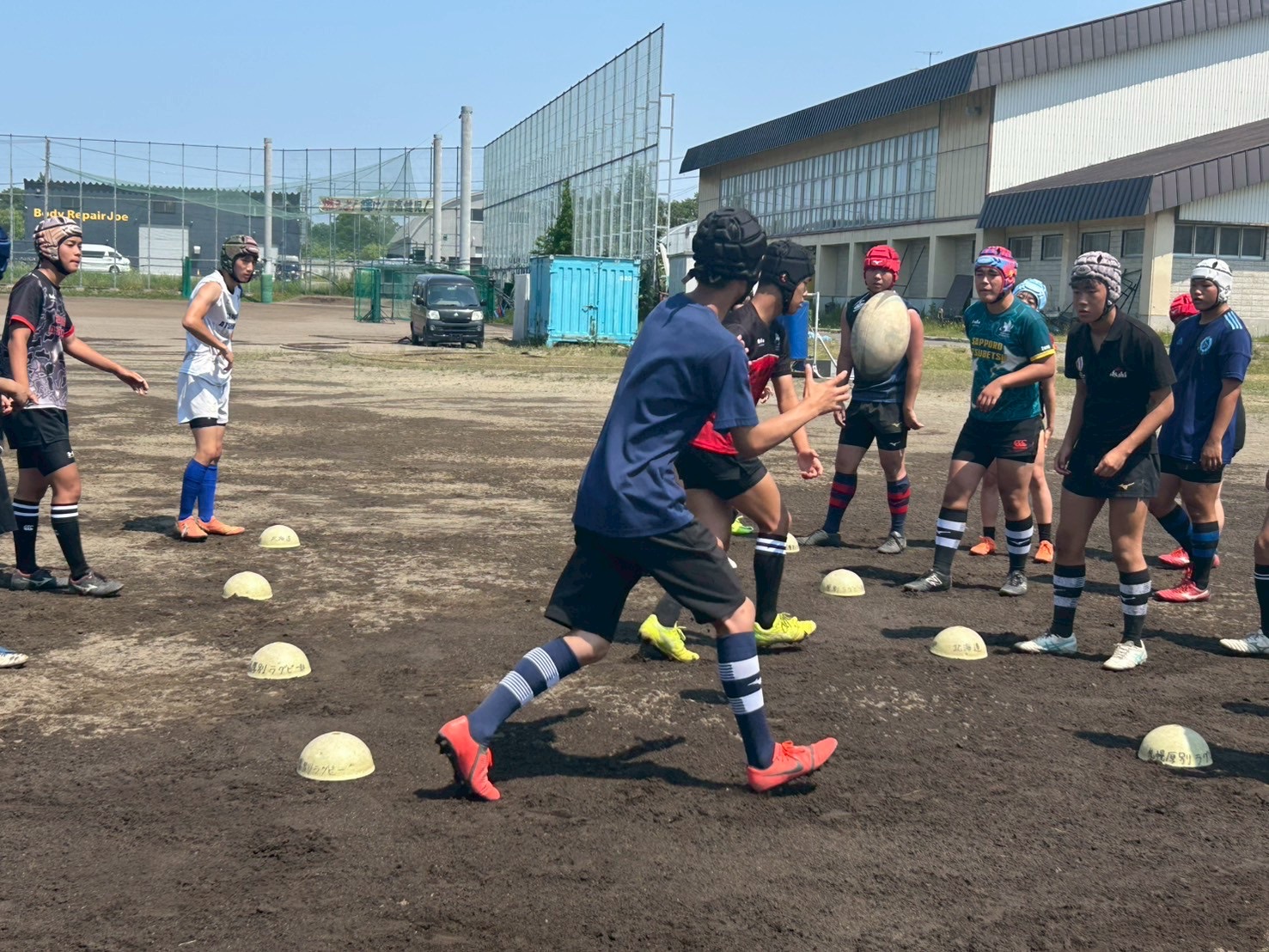 次にキックからのアタックディフェンスの練習を行いました。コミニュケーションが少なくノックオンが多く見られました。アタックはワンパスした後の細かいコミニュケーションを行うようにしましょう。また、ディフェンスは自分のゾーンに入った人に向かって横の繋がりを確認できるよう頑張りましょう。