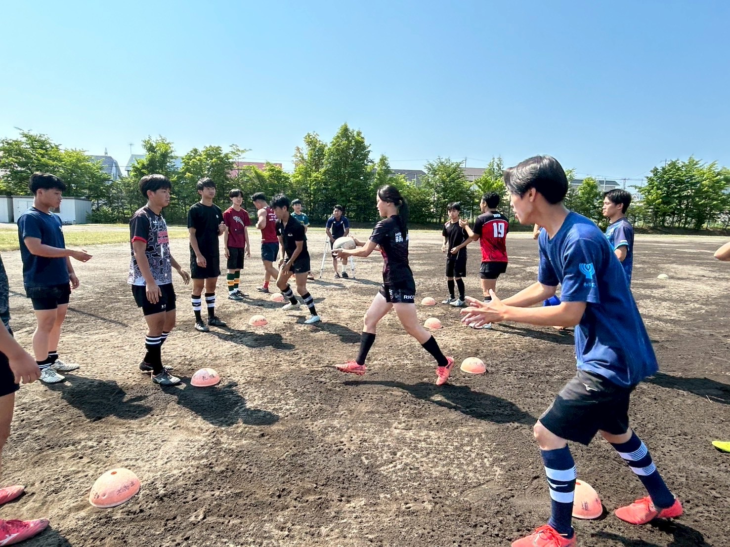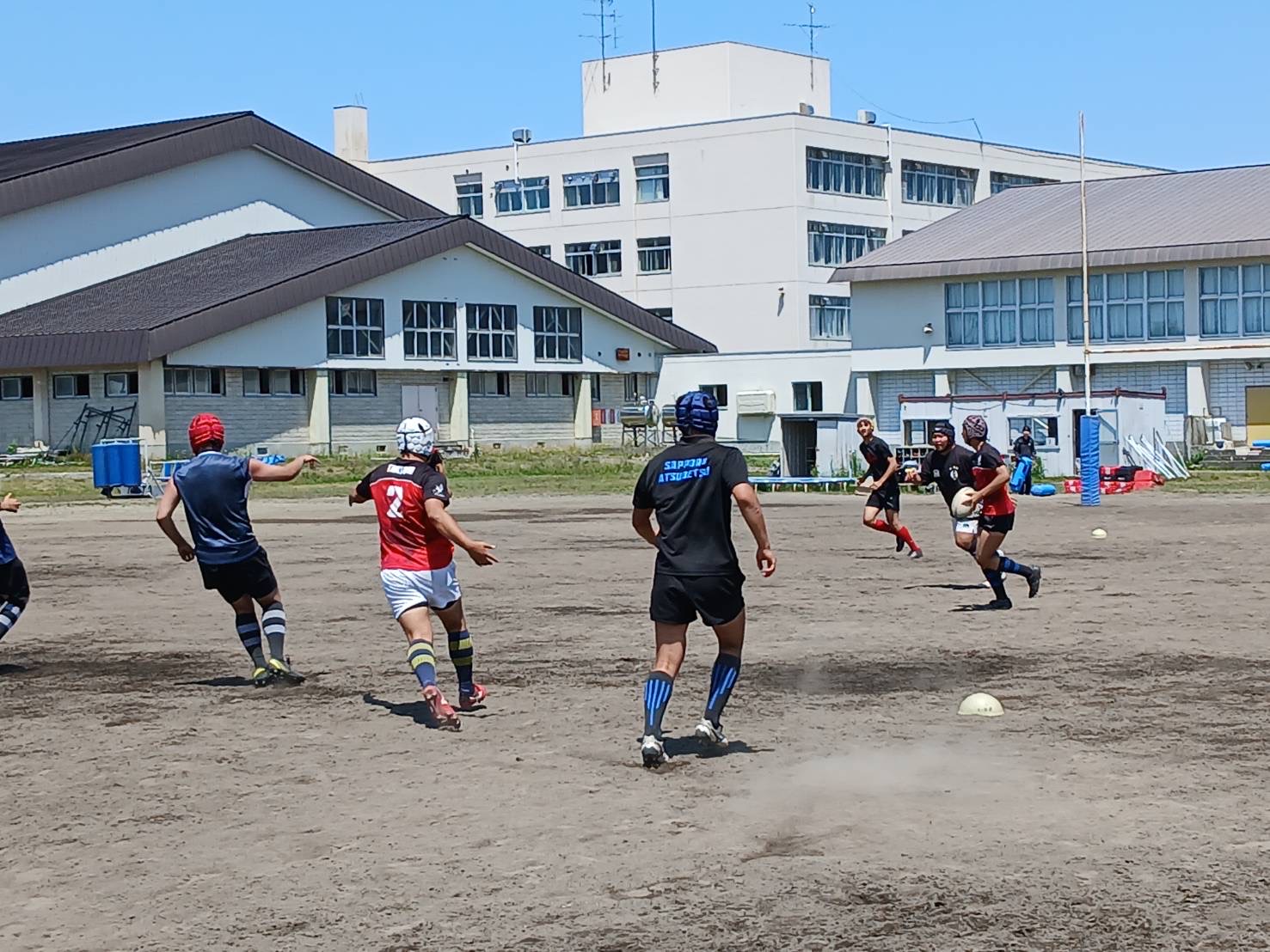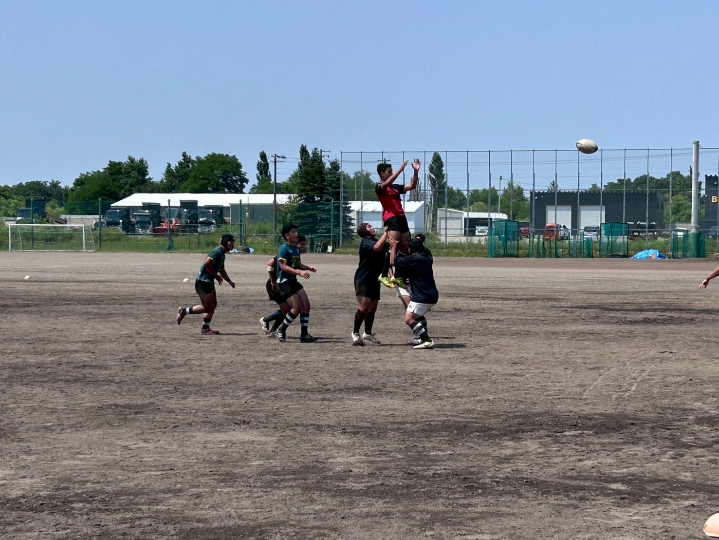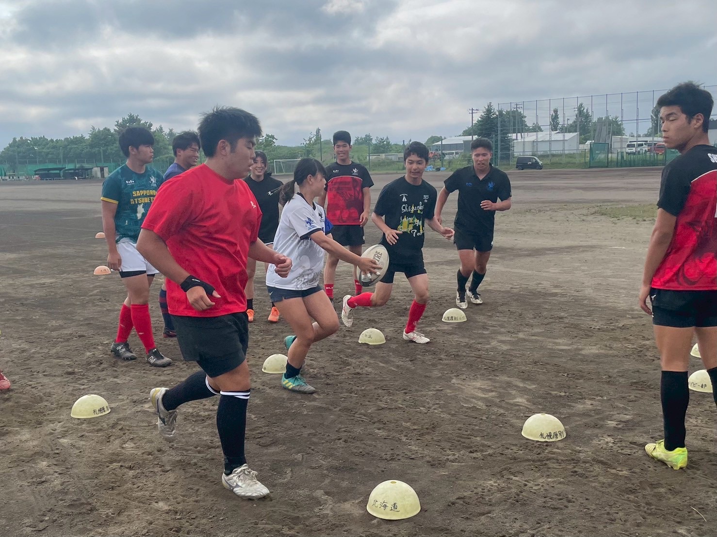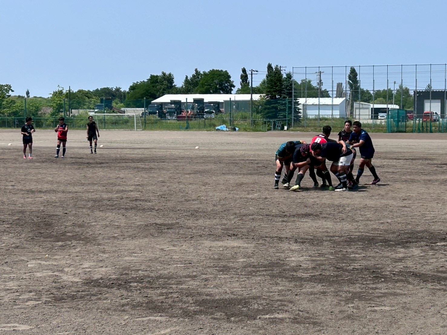 次にキックからのアタックディフェンスの練習を行いました。コミニュケーションが少なくノックオンが多く見られました。アタックはワンパスした後の細かいコミニュケーションを行うようにしましょう。また、ディフェンスは自分のゾーンに入った人に向かって横の繋がりを確認できるよう頑張りましょう。