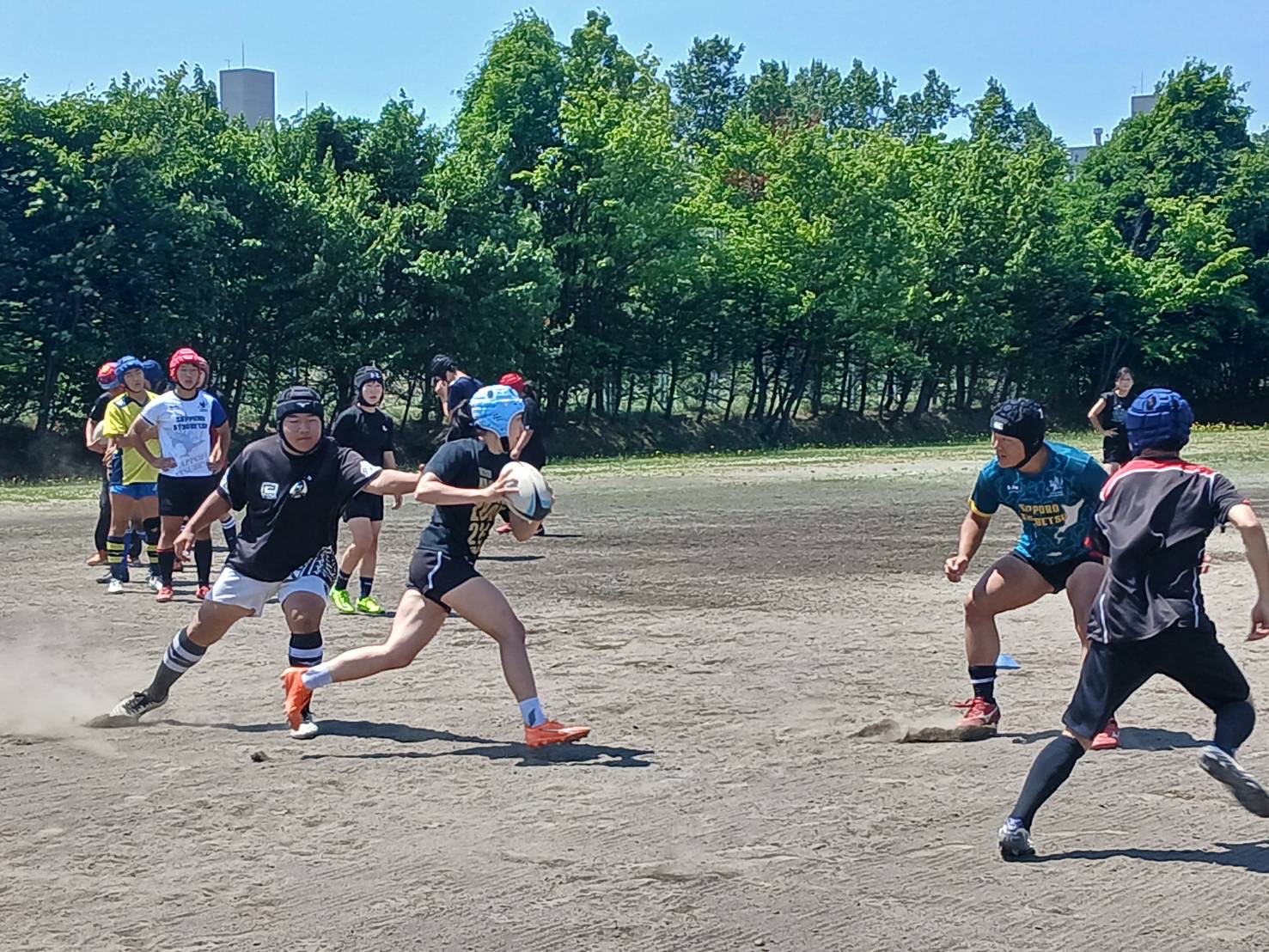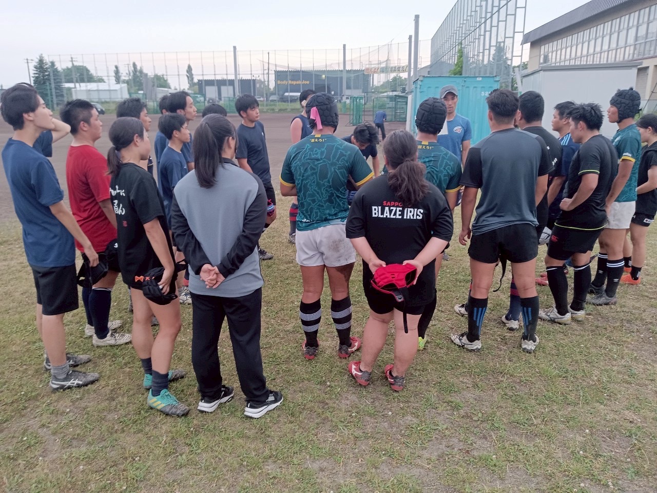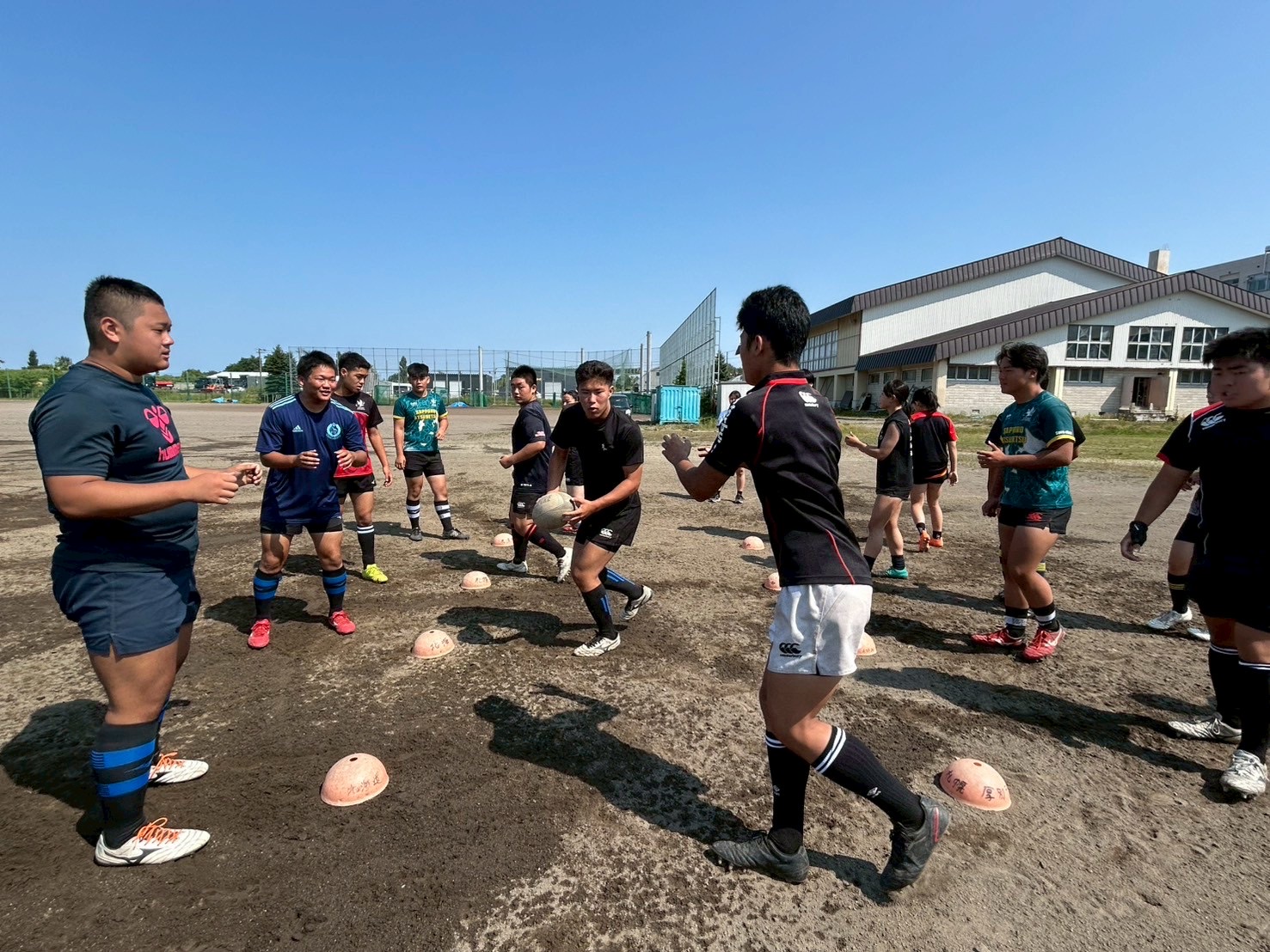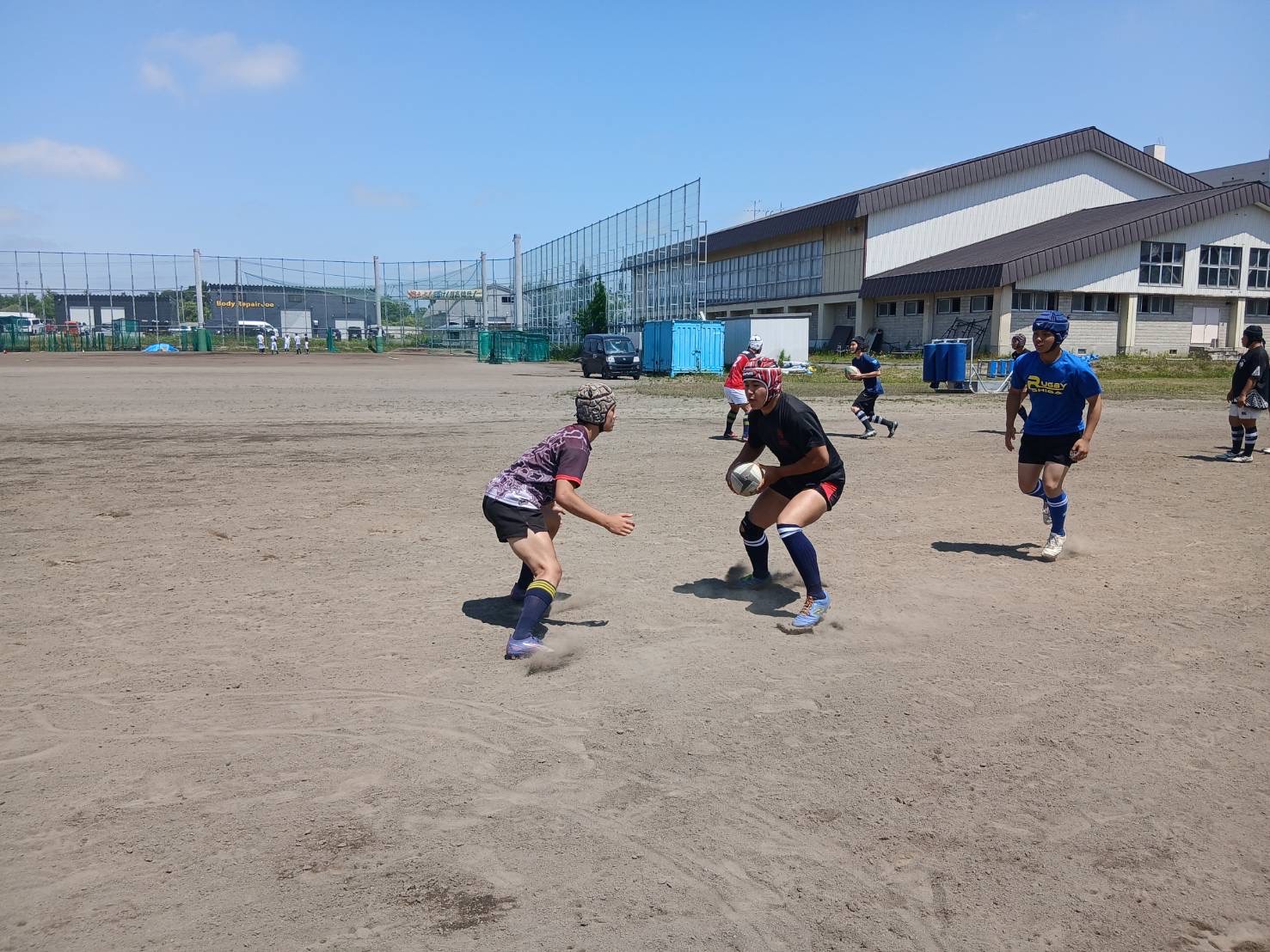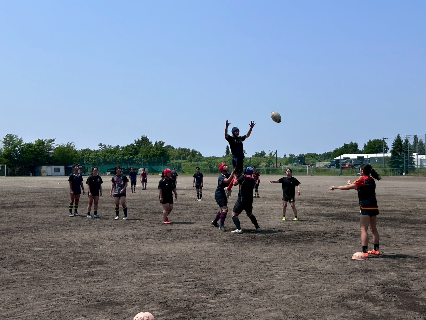 次にキックからのアタックディフェンスの練習を行いました。コミニュケーションが少なくノックオンが多く見られました。アタックはワンパスした後の細かいコミニュケーションを行うようにしましょう。また、ディフェンスは自分のゾーンに入った人に向かって横の繋がりを確認できるよう頑張りましょう。