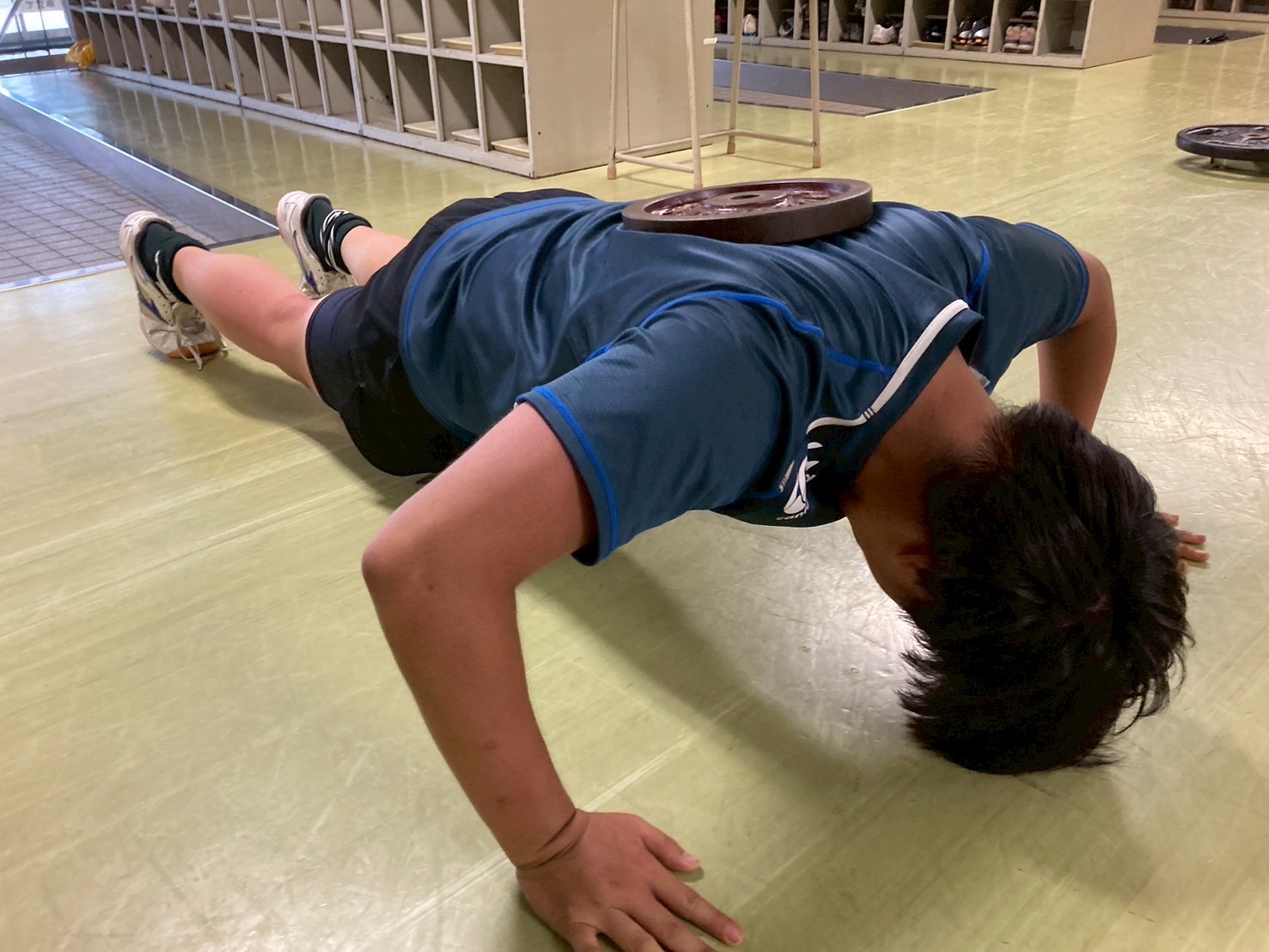 SC終了後、腸腰筋を鍛えるトレーニングを行いました。SC後でも全力でトレーニングしましょう。