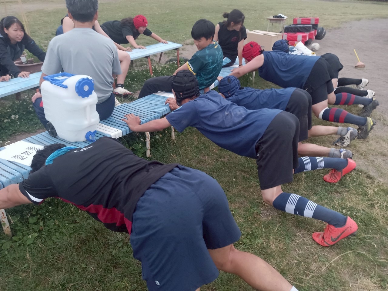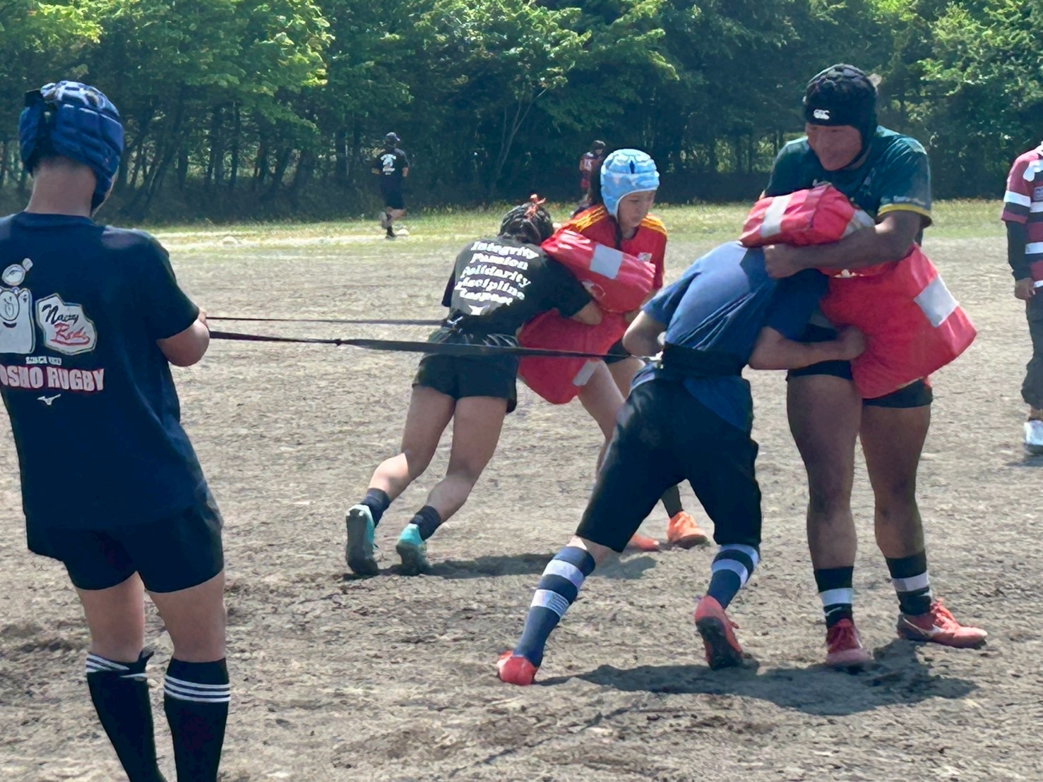 その後、ハーネスを使ったドライブ練習を行いました。それぞれが応援しながら行い良い雰囲気の練習でした。今後も声を出しながら力強いドライブを継続していきましょう。