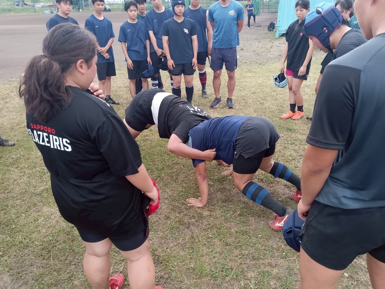 2人1組になり相手を持ち上げる練習では、首が逃げないように、マークしてディップするということができていました。