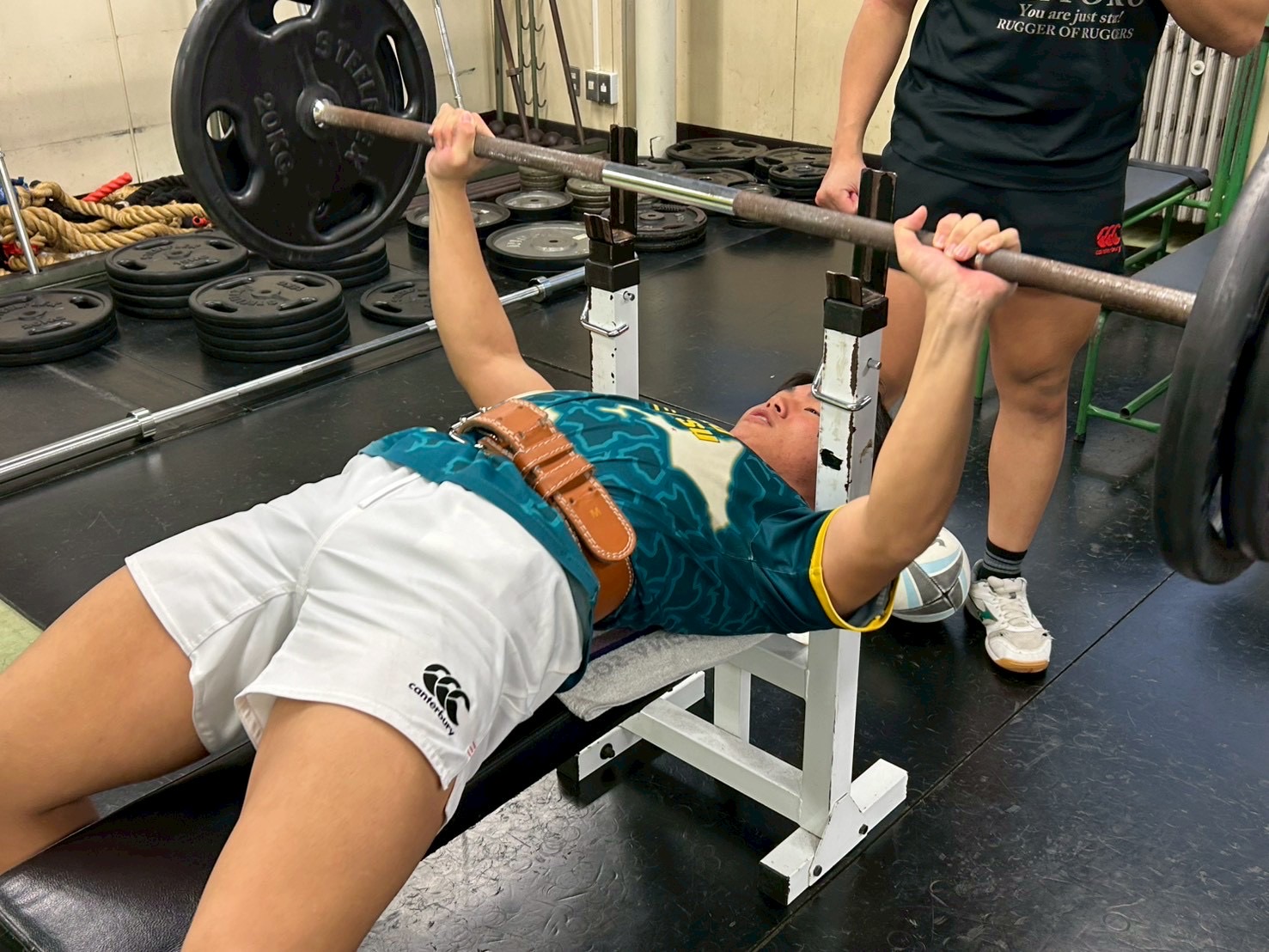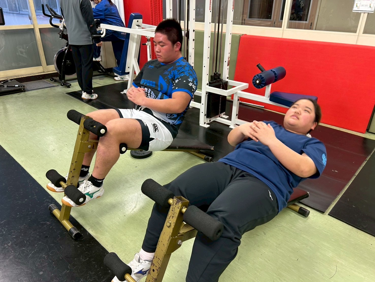 始めに引き合いを行いました。100回×3セットで、全員で声を出しながら行いました。全員で声を出すことで、チームの団結力が深まっていたと思います。